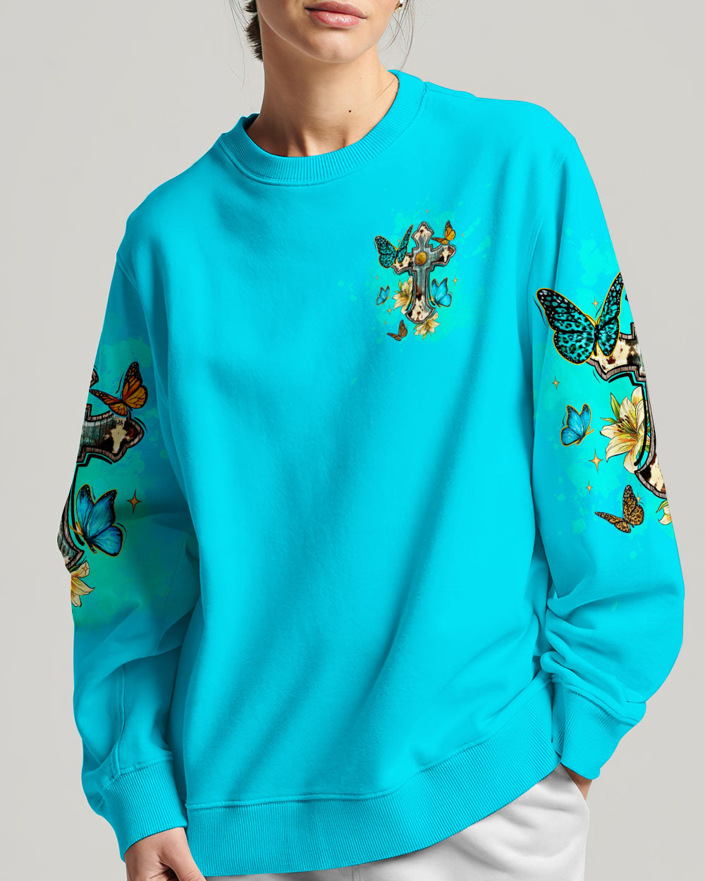 Behold our enchanting cross design, graced with a symphony of vibrant butterflies, radiating faith-inspiring hues. The phrase, "Faith over fear," stands as a potent reminder that faith in Jesus can conquer any fear that dares to hinder us. Our design encapsulates the notion that reliance on a higher power can bestow strength, courage, and resilience when confronting life's trials, urging all to embrace their faith boldly and conquer their fears with unwavering belief.