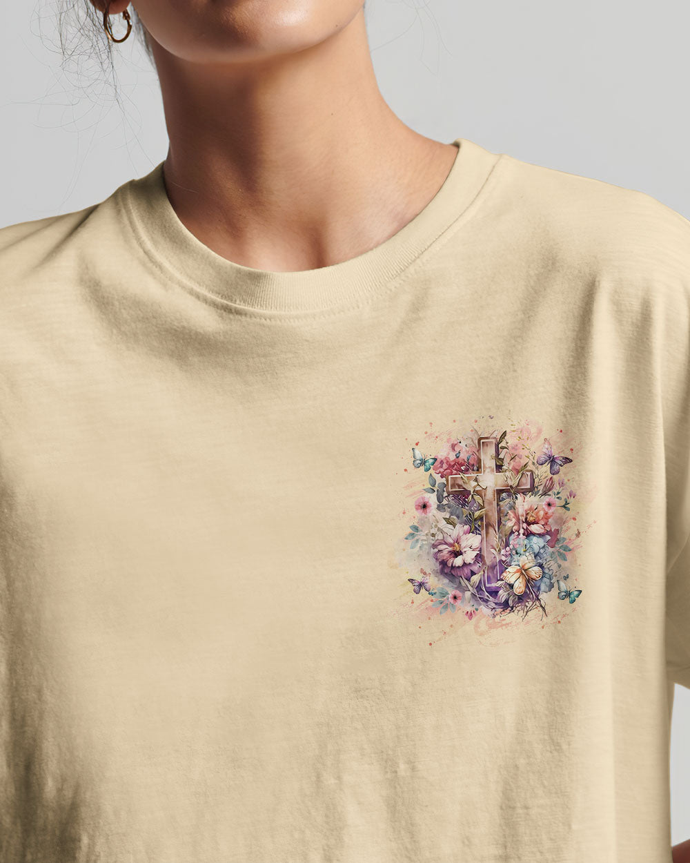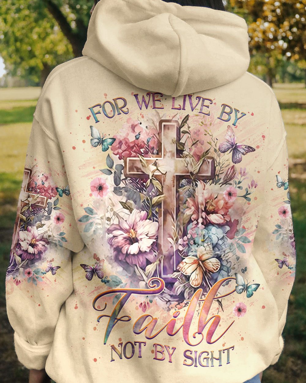 Elevate your faith with our captivating cross design. Imagine an elegant cross adorned with delicate flowers and fluttering butterflies, all thoughtfully arranged to inspire hope and faith. The quote, "For We Live By Faith Not By Sight," conveys the profound essence of belief. This design transcends mere clothing; it's a symbol of your unshakable faith and the strength it imparts. Wear it proudly to showcase your trust in the unseen, allowing your faith to radiate for all to witness. Don't miss this opportunity. Get your faith cross design now and let it serve as a constant reminder of the enduring power of faith in your life.
