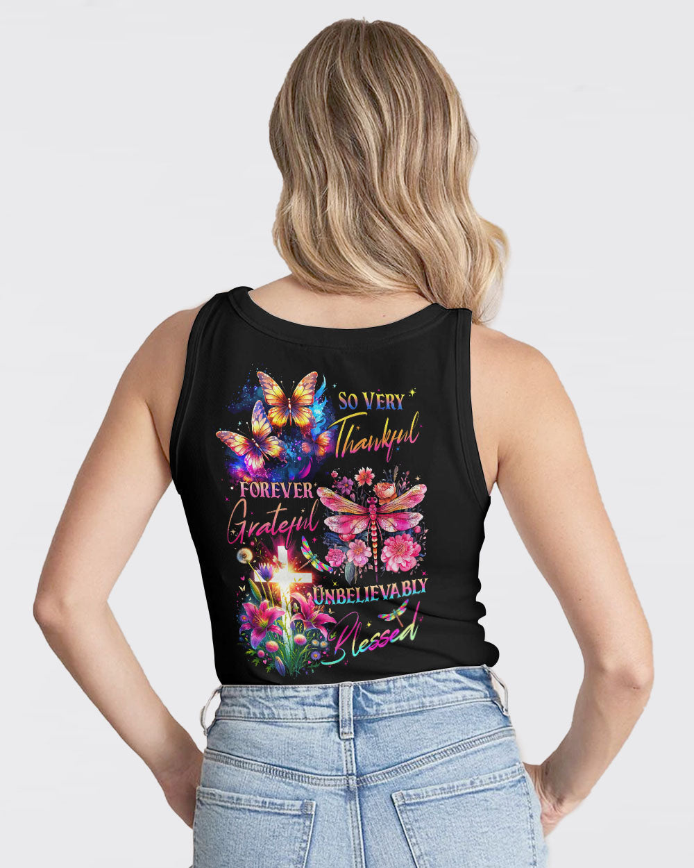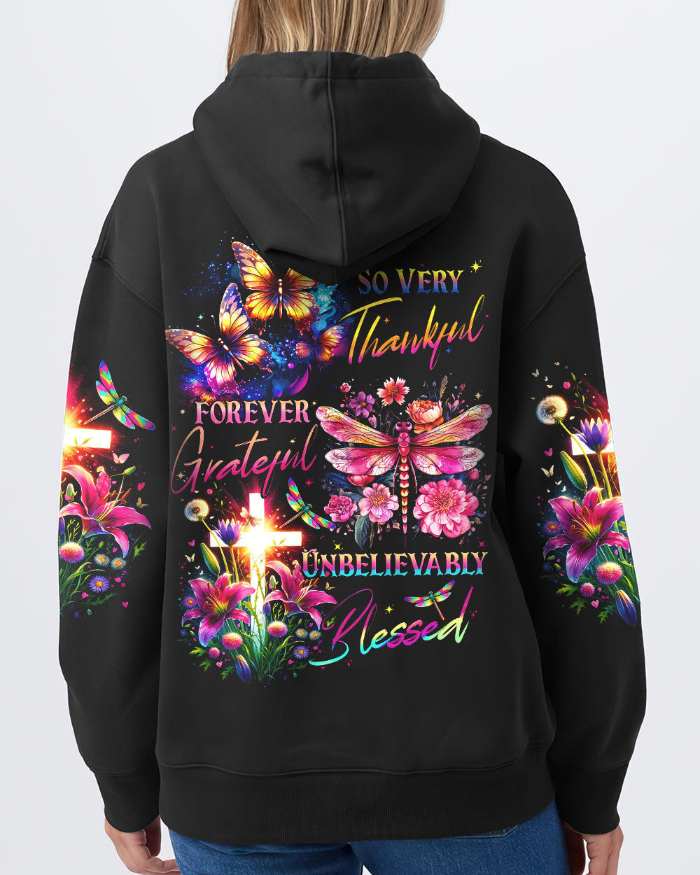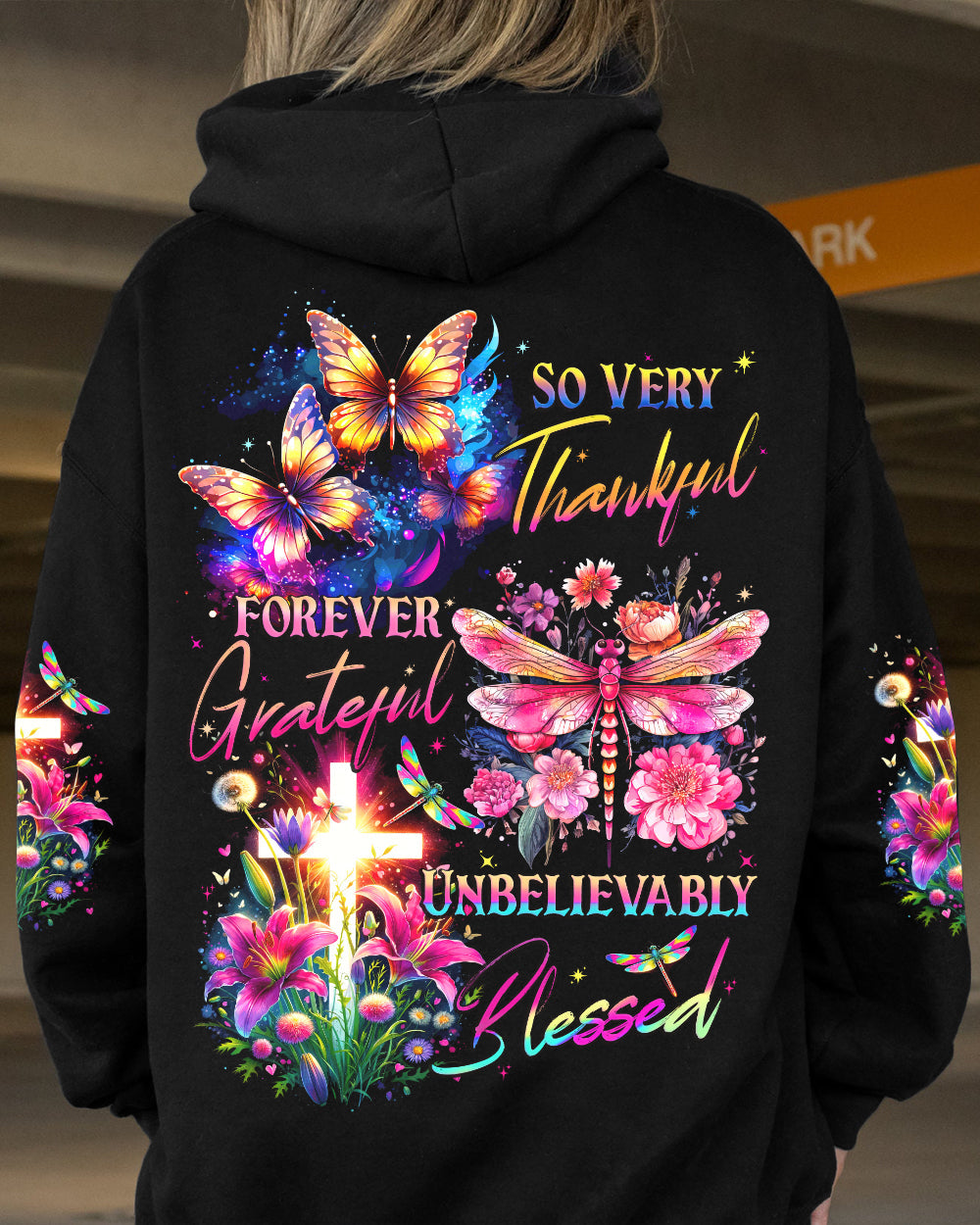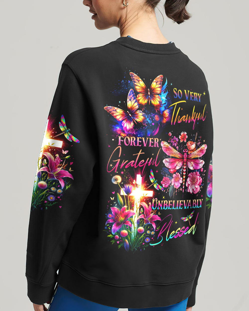 Showcase your faith in style with this remarkable Forever Grateful Women's All Over Print Shirt. Featuring butterflies, dragonflies, crosses, and blooming lilies, this visually striking design will remind you of the beauty of your spiritual blessings. Radiate your appreciation with the meaningful mantra and inspiring design, representing your deeply rooted faith.