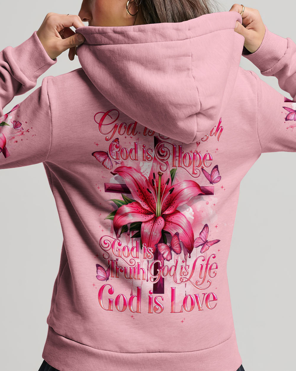 Immerse yourself in the heart of the Christian faith with our distinctively created design. The seamless blend of crosses, lilies, and butterflies forms a profound trio symbolizing faith, resurrection, and transformation. The poignant quote, 'God is strength, God is hope, God is truth, God is life, God is love,' encapsulates the many facets of your beliefs. This design transcends art; it stands as an extraordinary representation of the foundational principles that steer your path. Allow this remarkable design to shine light on your faith and ignite your soul with inspiration.