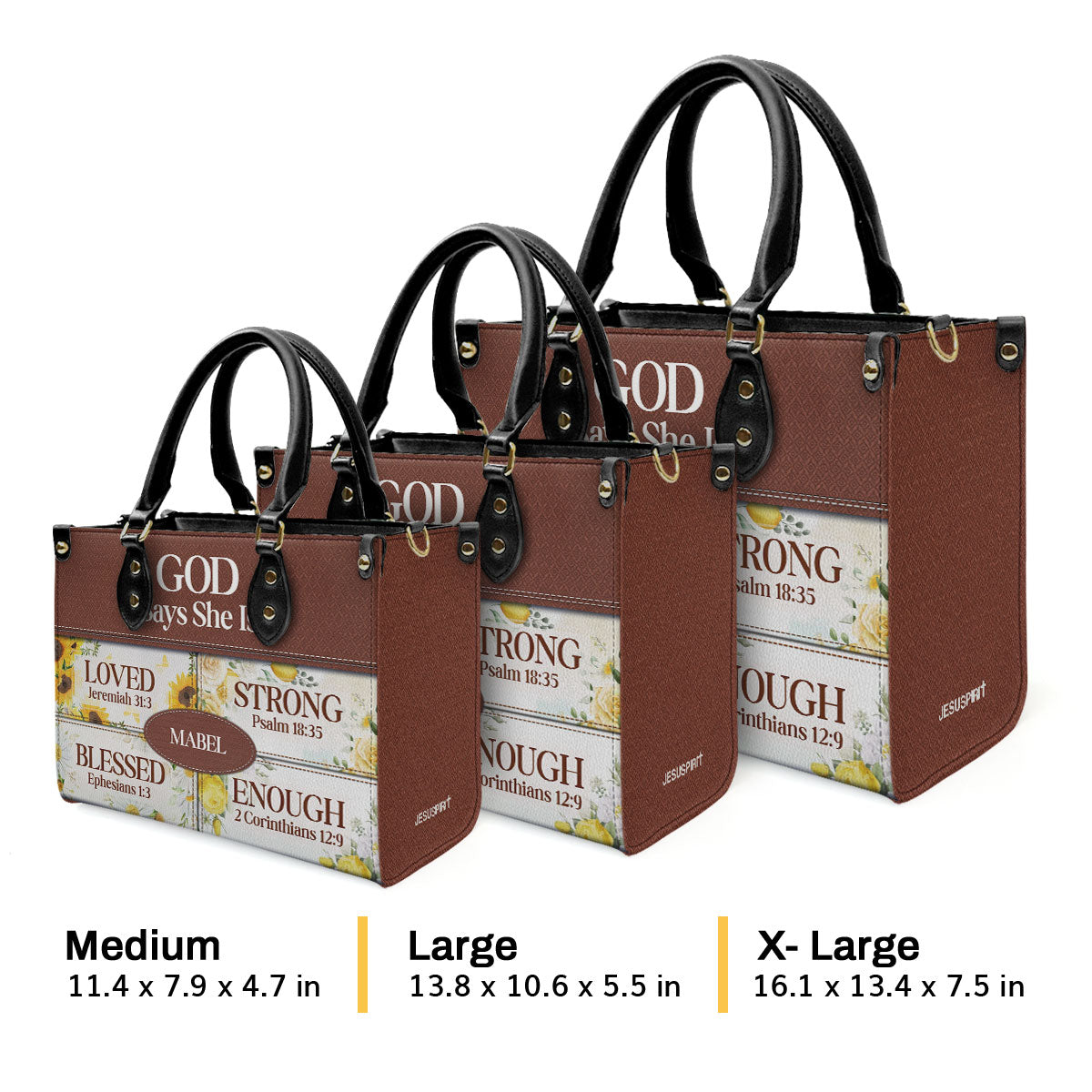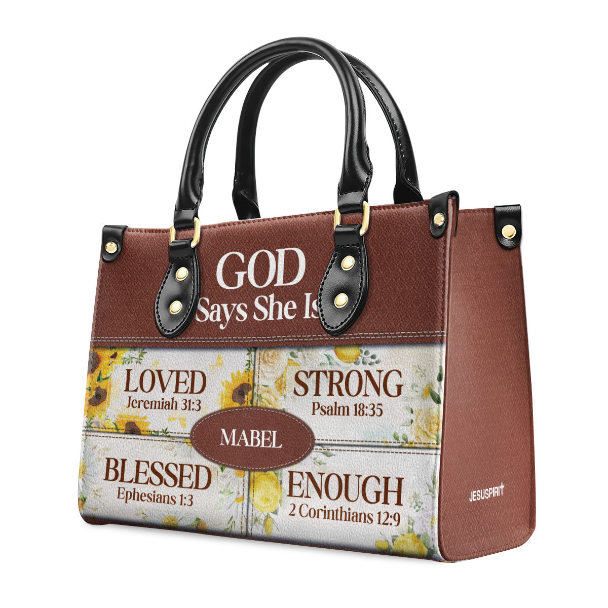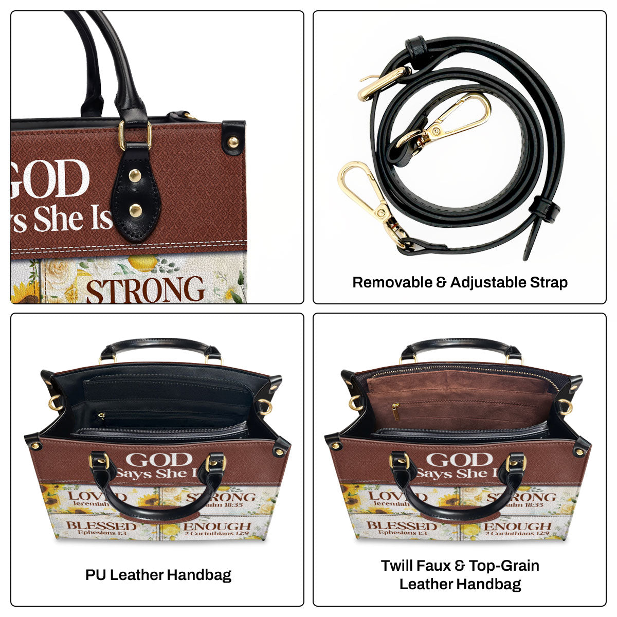 God Says She Is | Religious Gift For Worship Friends | Personalized Leather Handbag With Zipper LHBNUH682