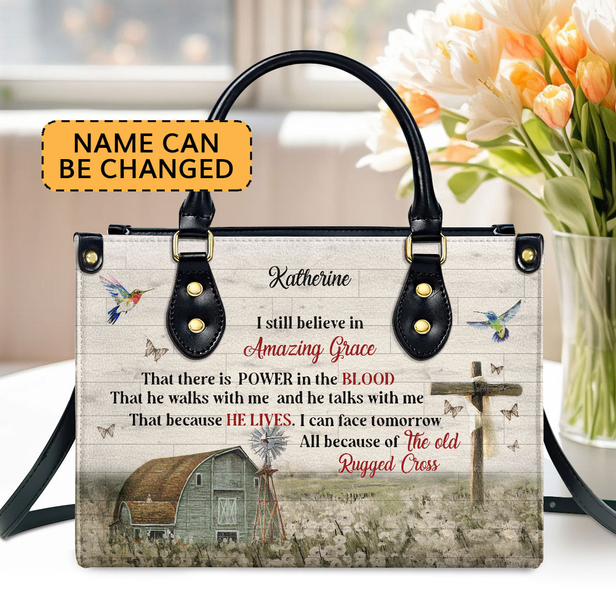 Gorgeous Personalized Cross Leather Handbag - I Still Believe In Amazing Grace NUHN145F