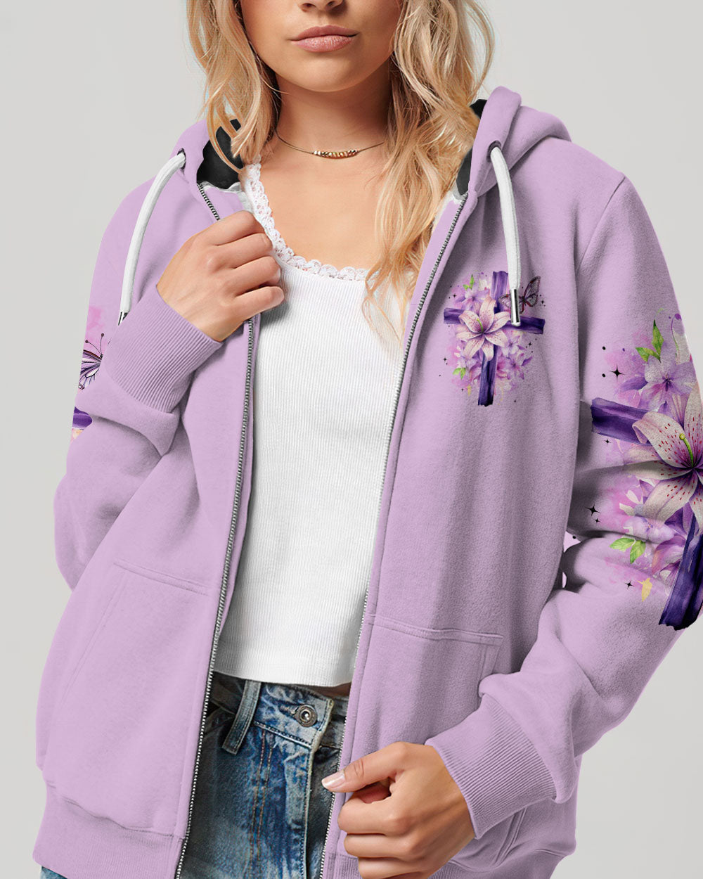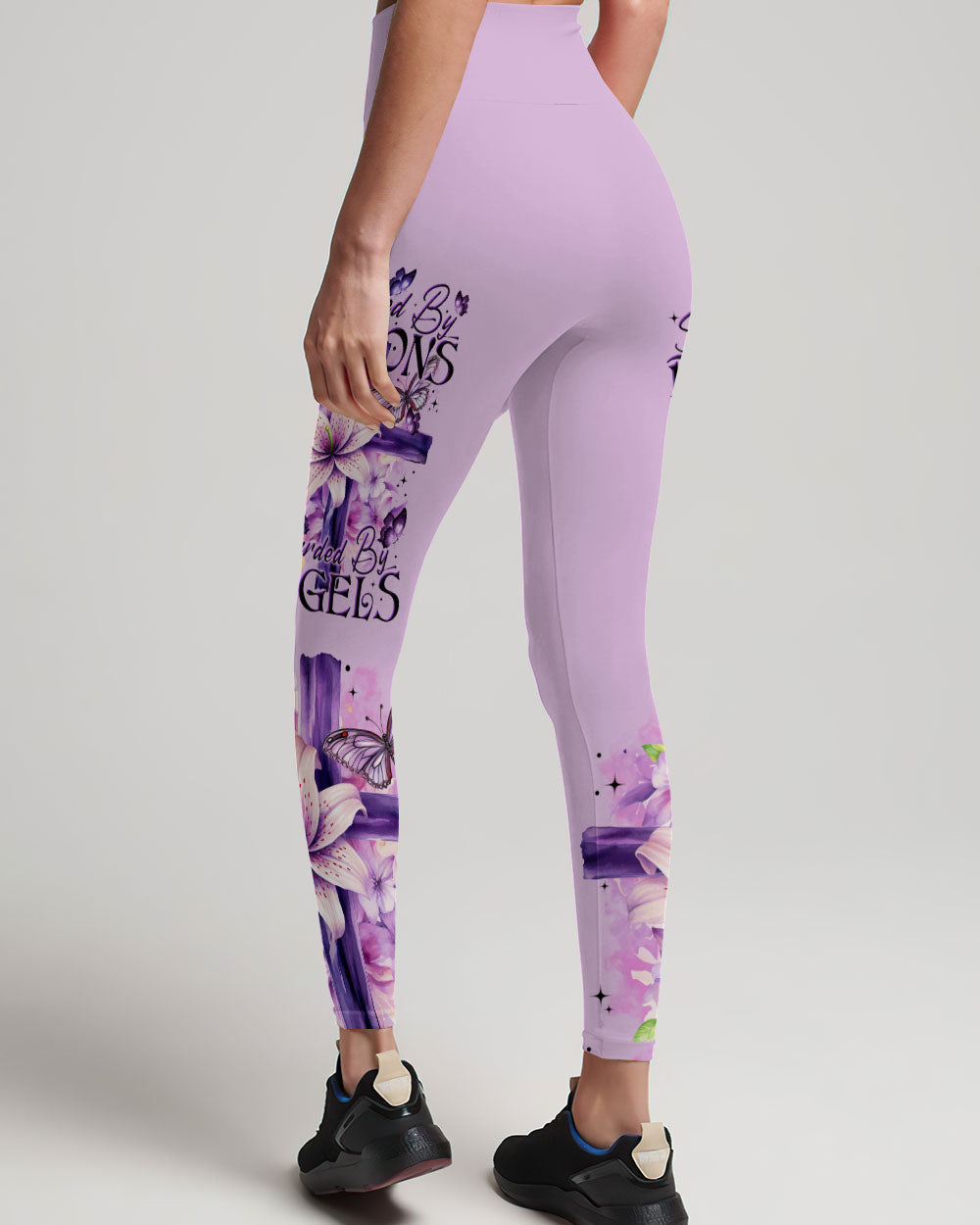 Experience divine protection with our Guarded By Angels Women's All Over Print Shirt. A powerful Christian symbol blend of crosses, blossoming lilies, and graceful butterflies, combined with the poignant quote "stalked by demons guarded by angels", this design celebrates your faith journey and its accompanying guardianship. A stylish way to express your unique perspective, this shirt is a must for any modern Christian wardrobe.