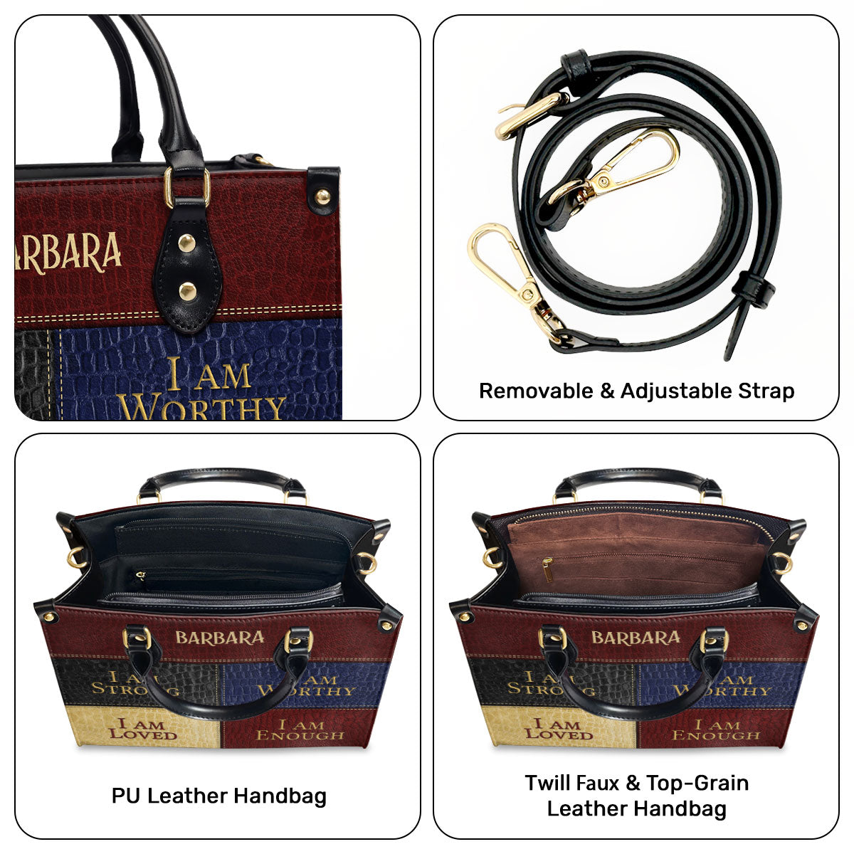I Am Loved | Personalized Zippered Leather Handbag With Handle | Religious Gift For Worship Friends LHBNUHN680