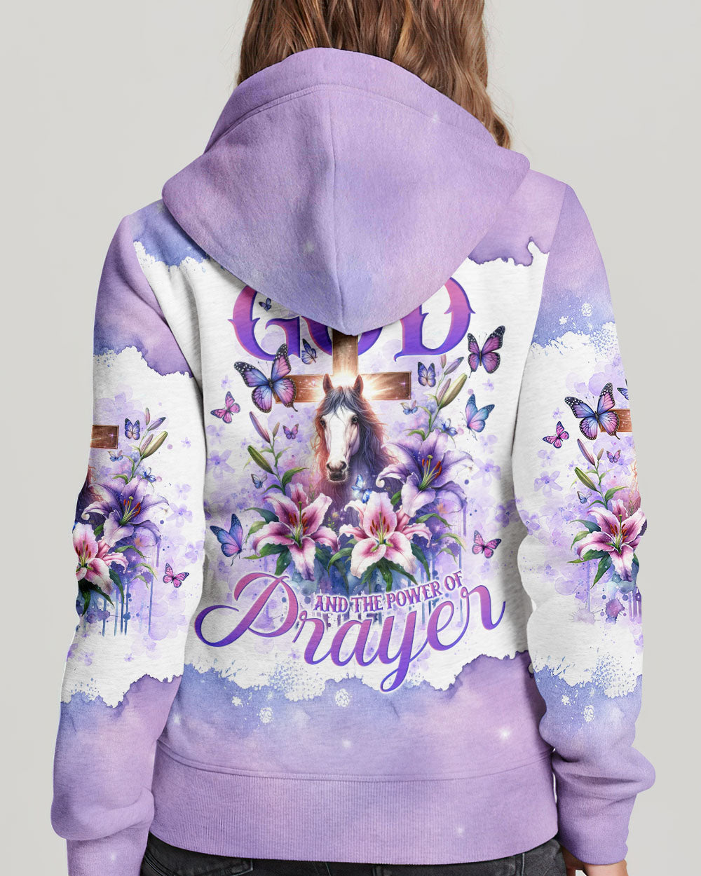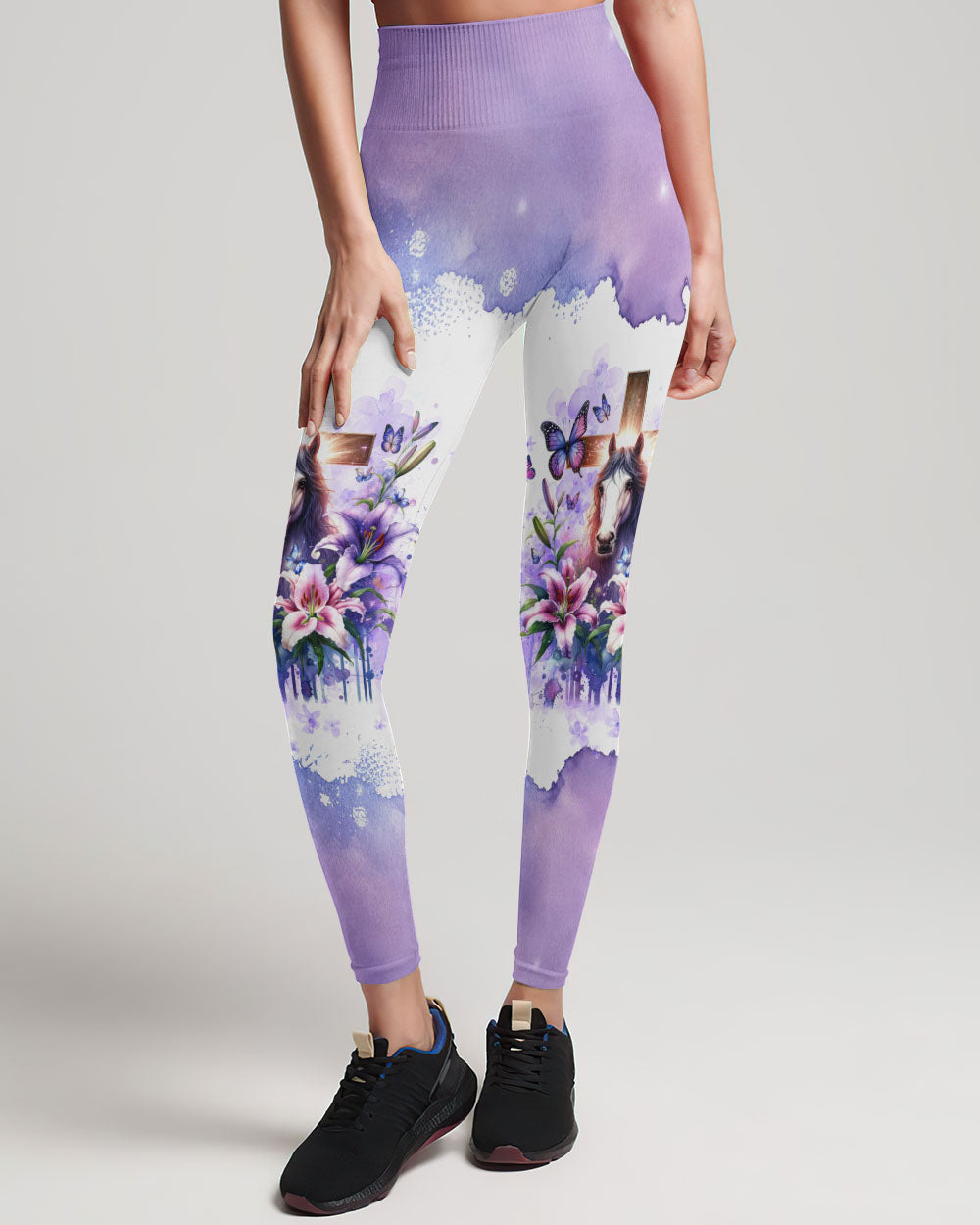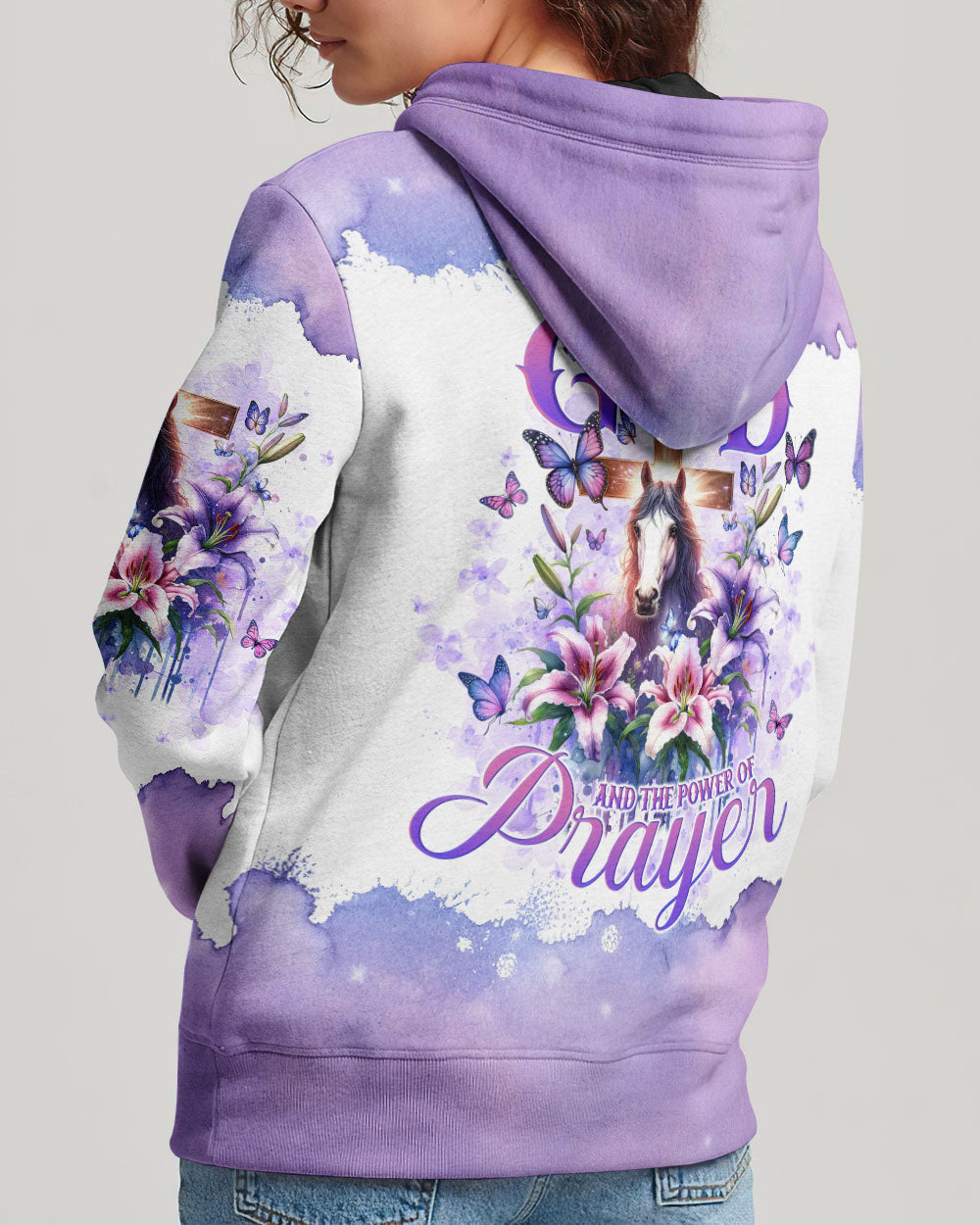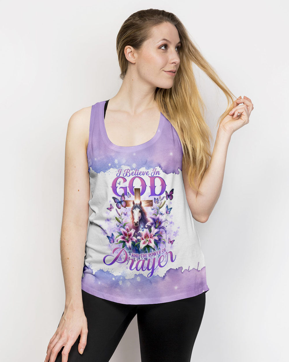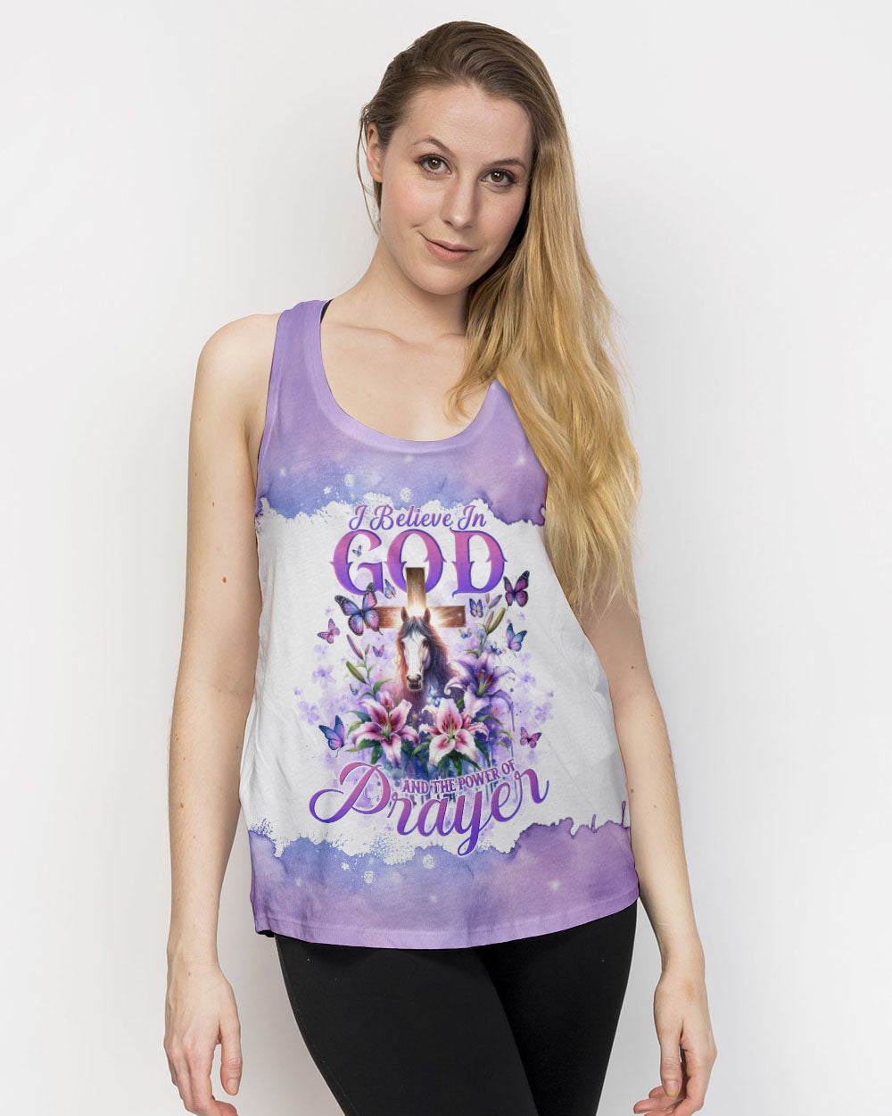Celebrate your faith and love for horses with our exquisite design featuring a cross, lilies, and a horse. The saying, "I believe in God and the power of prayer," signifies a profound trust in the divine and the transformative strength found in heartfelt communication and spiritual devotion