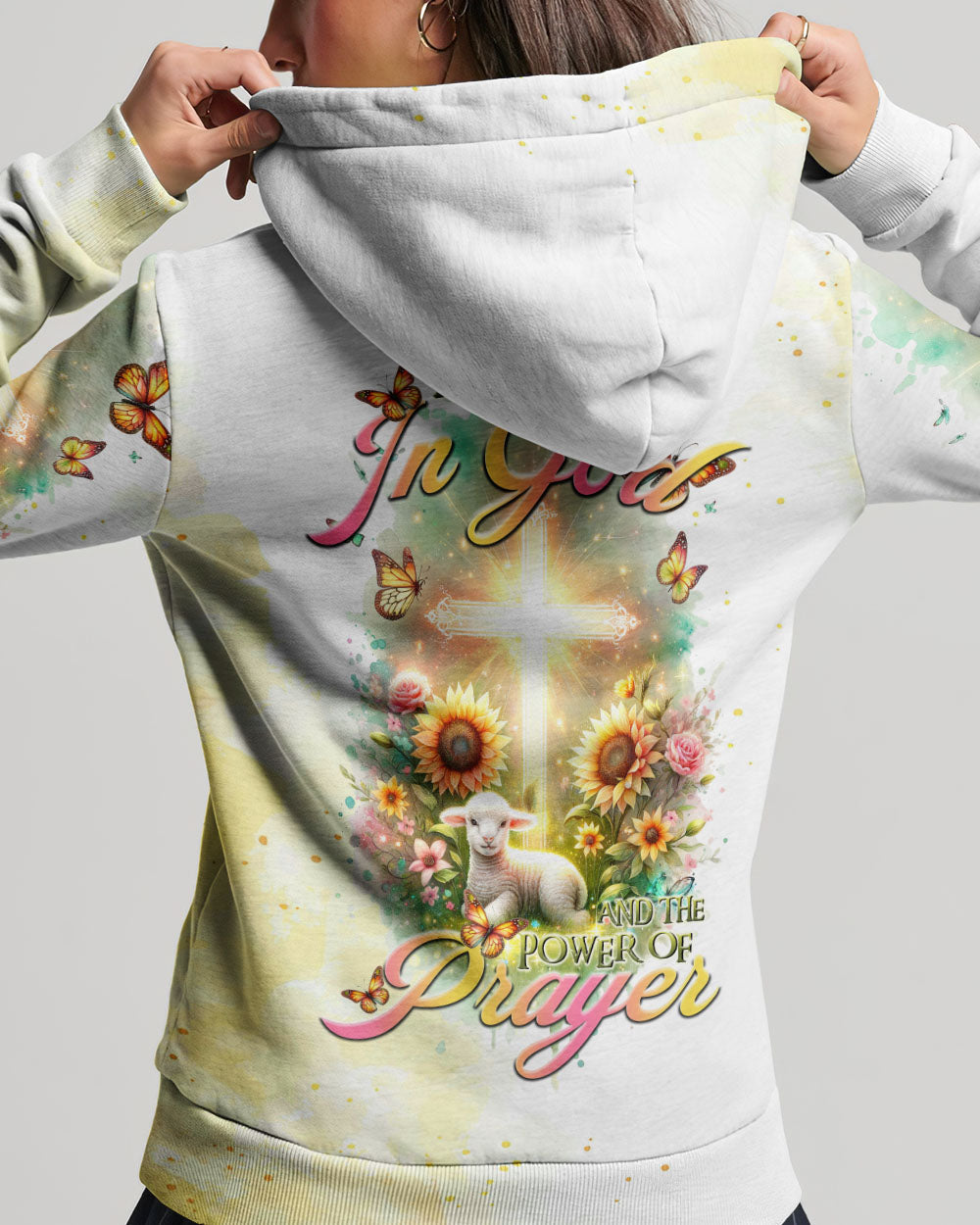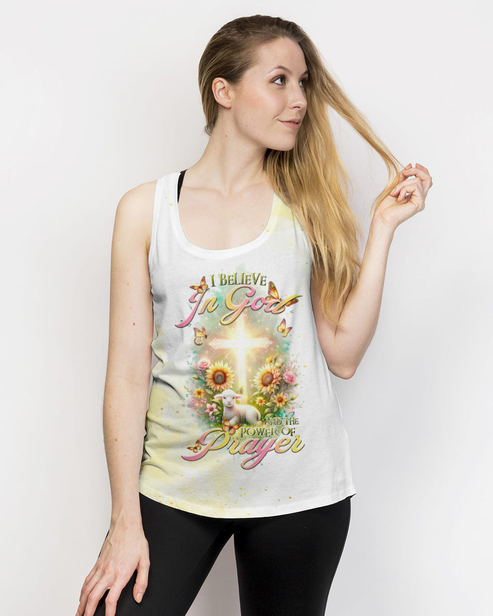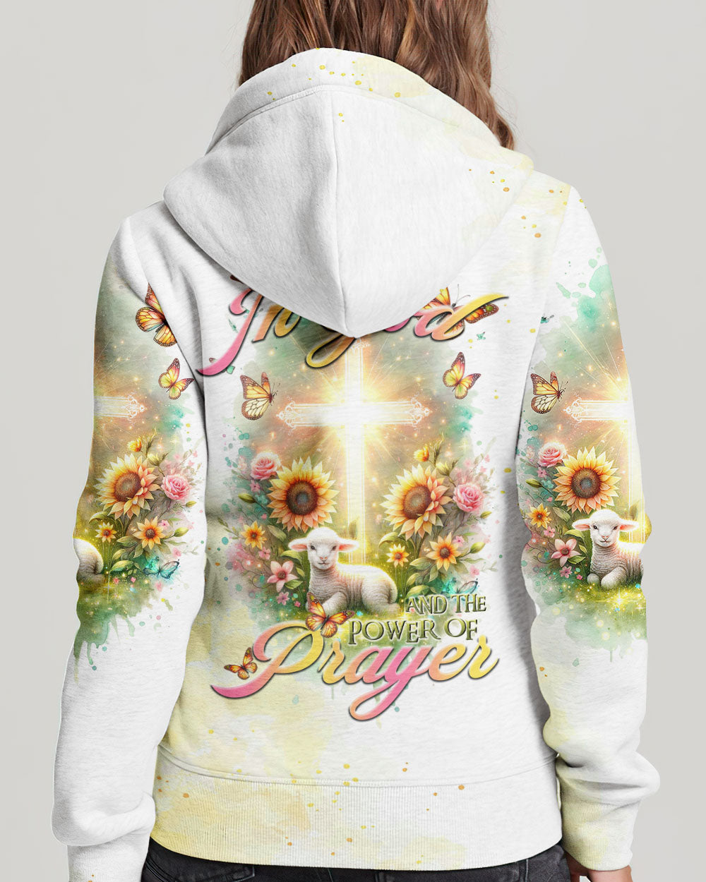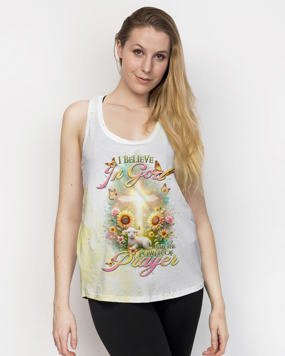 Elevate your spiritual space with our tranquil design featuring a glowing cross, bright flowers, and a gentle lamb, capturing the essence of faith. The saying, "I believe in God and the power of prayer," signifies a deep connection to God and the transformative strength found in prayer, encouraging unwavering trust in divine guidance and the comforting power of heartfelt communication with the divine.