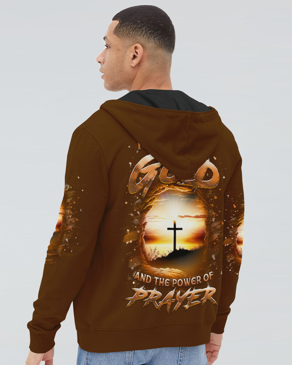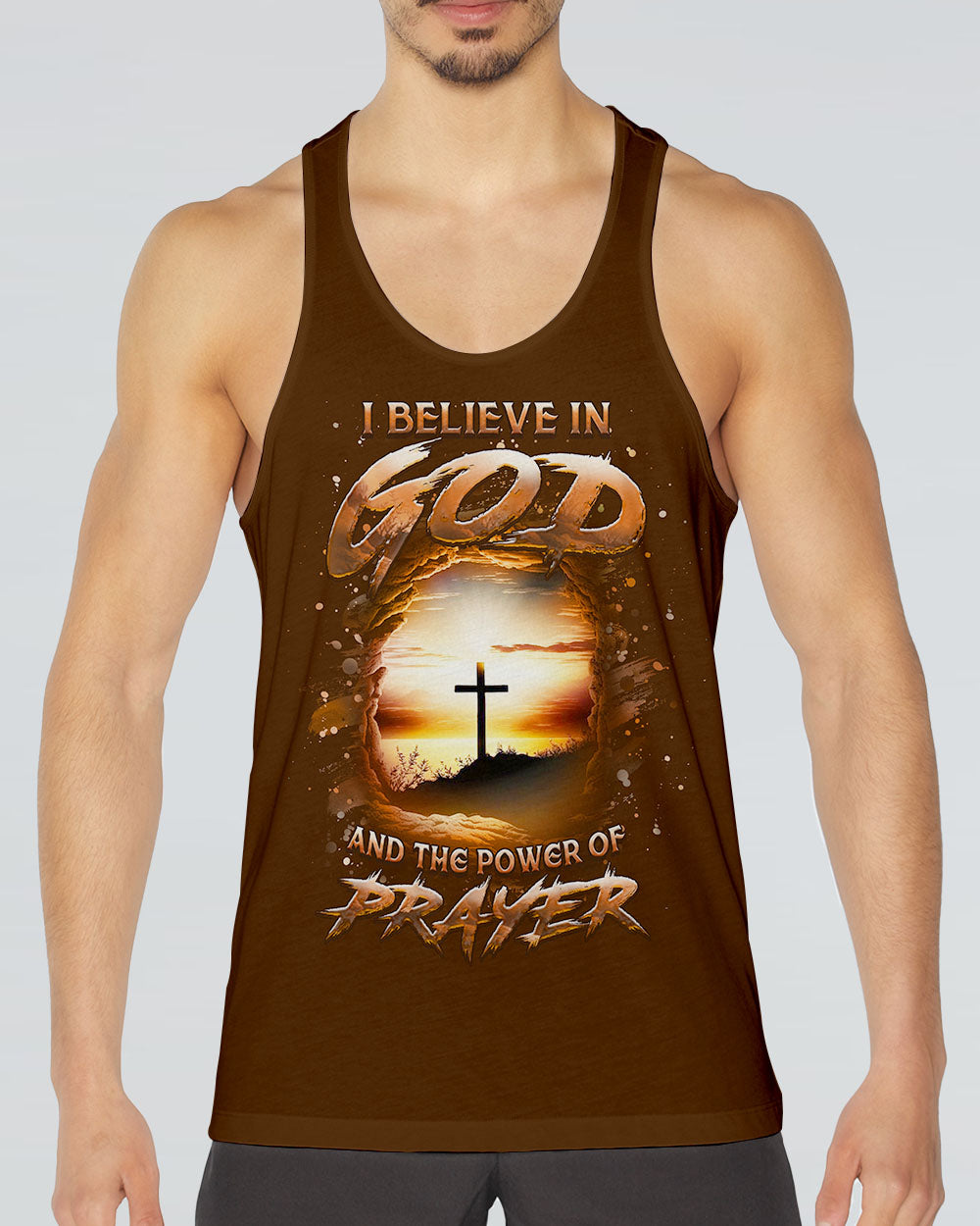 Our Faith Christ Design, with a cross bathed in heavenly light, symbolizes deep faith and the power of prayer. It's a symbol of hope and strength, echoing the belief "I believe in God and the power of prayer." Wear it as a proud emblem of faith and conviction.