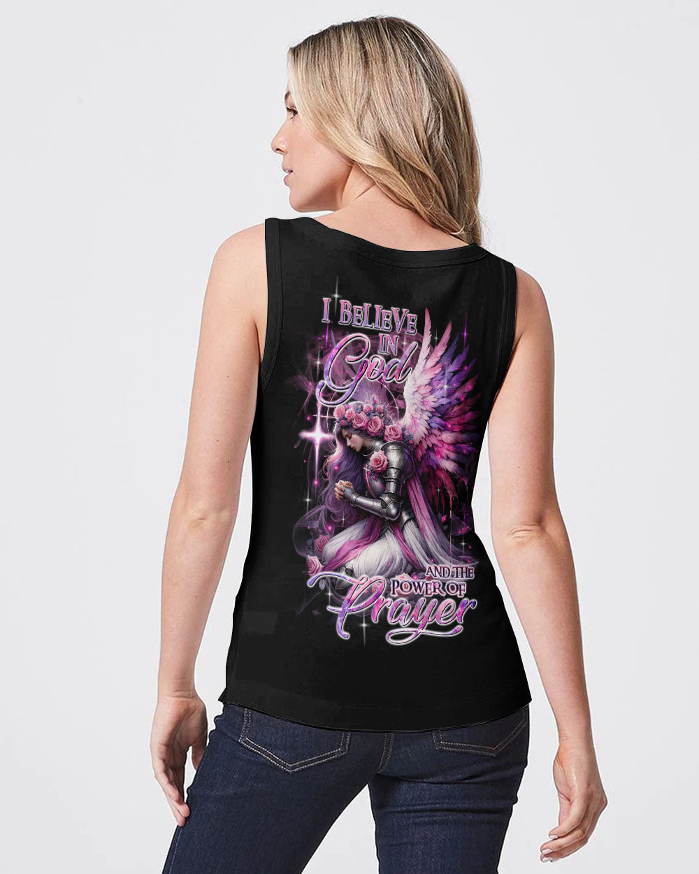 Introducing our latest design masterpiece: a captivating depiction of a strong female warrior with wings, entwined with alluring roses. This symbolic fusion celebrates strength, allure, and our deep belief: 'I believe in God and the power of prayer,' affirming that faith in Jesus is a constant source of strength and guidance in every aspect of life.