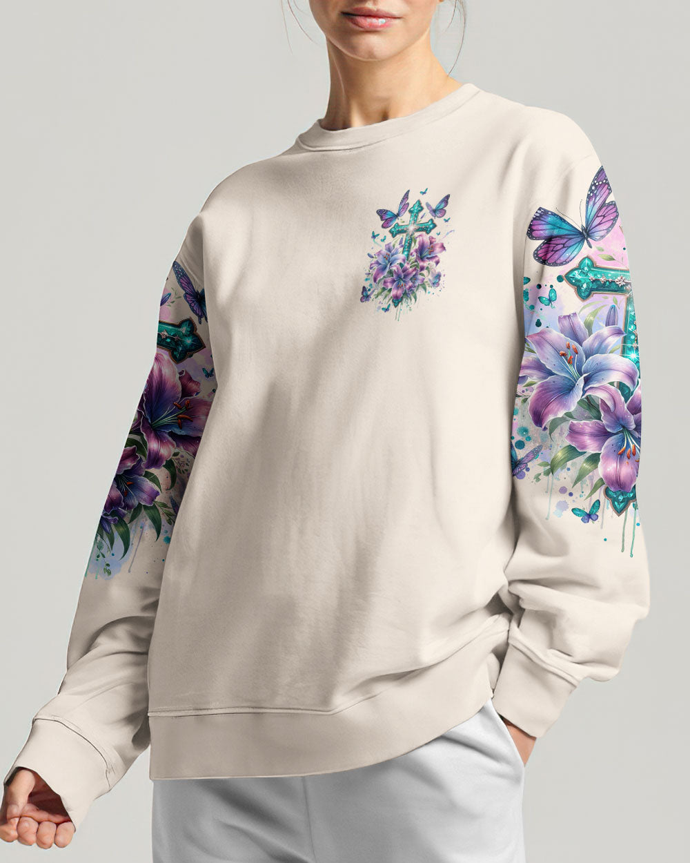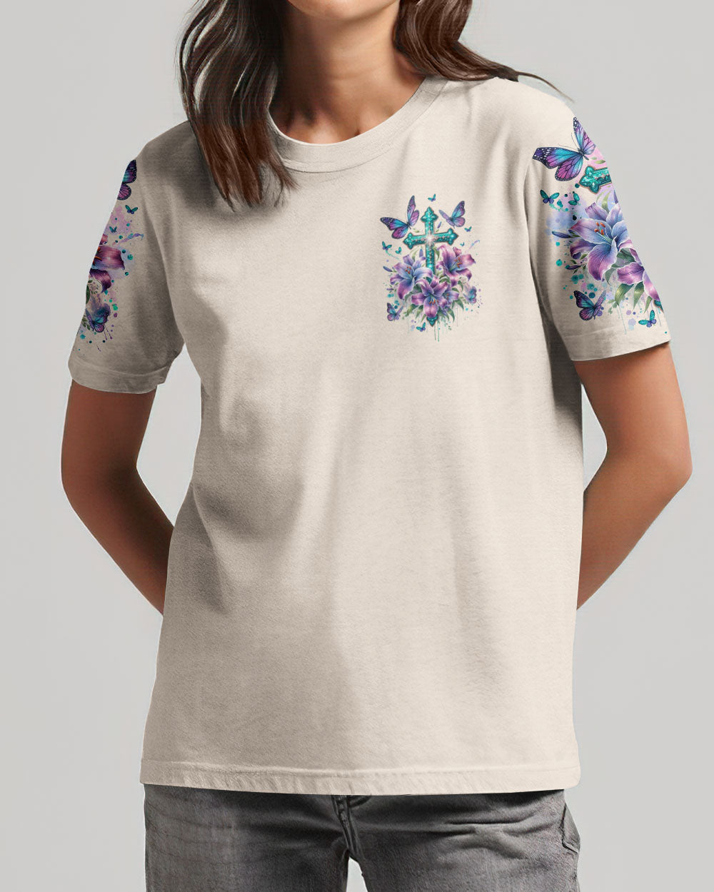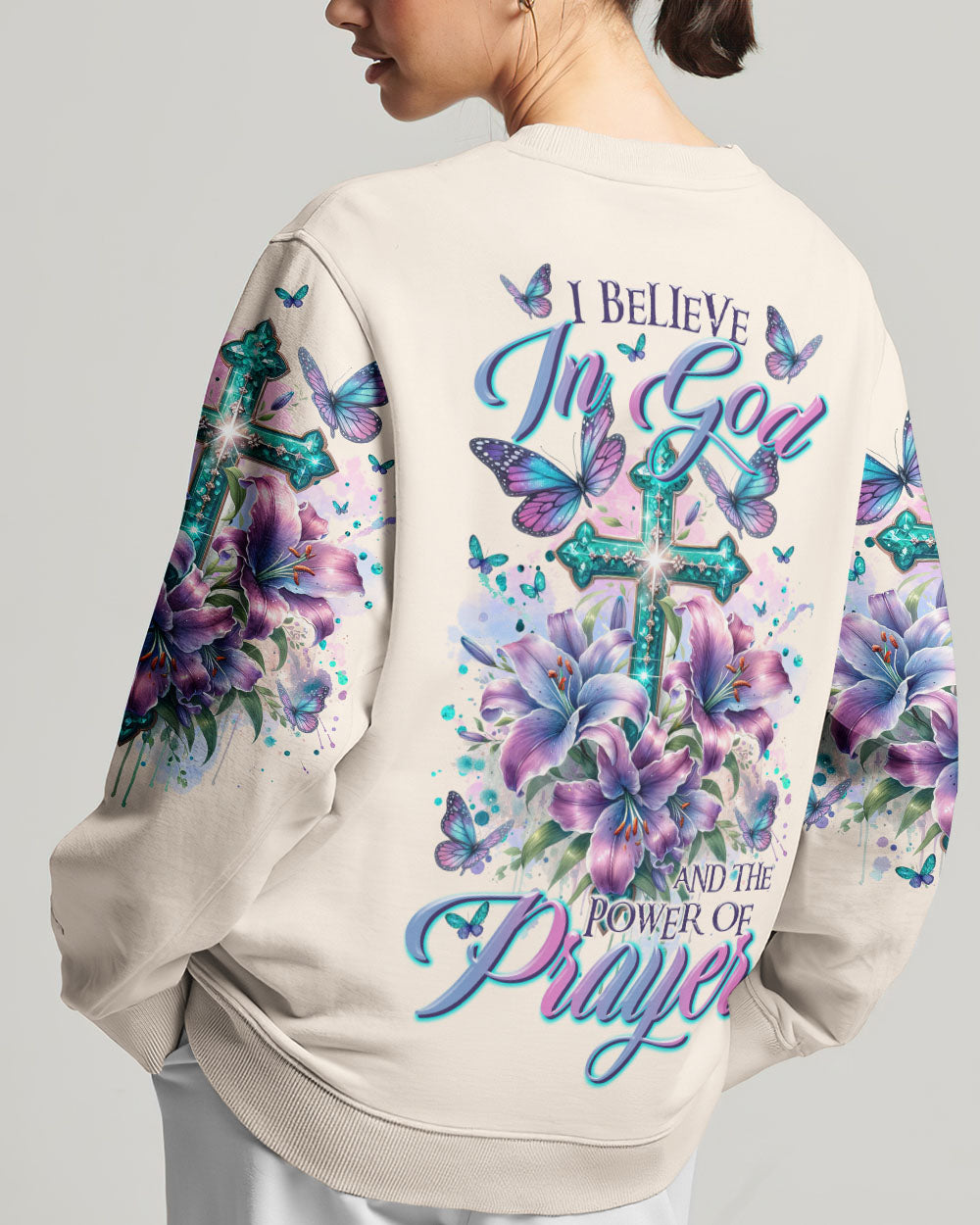 This beautiful I Believe In God Women's All Over Print Shirt is crafted with a stunning cross design, featuring elegant lilies and a powerful message of faith. With the saying, "I believe in God and the power of prayer," this shirt serves as an inspiring reminder of hope and comfort to find in communion with God. Let your faith be known with this one-of-a-kind design!