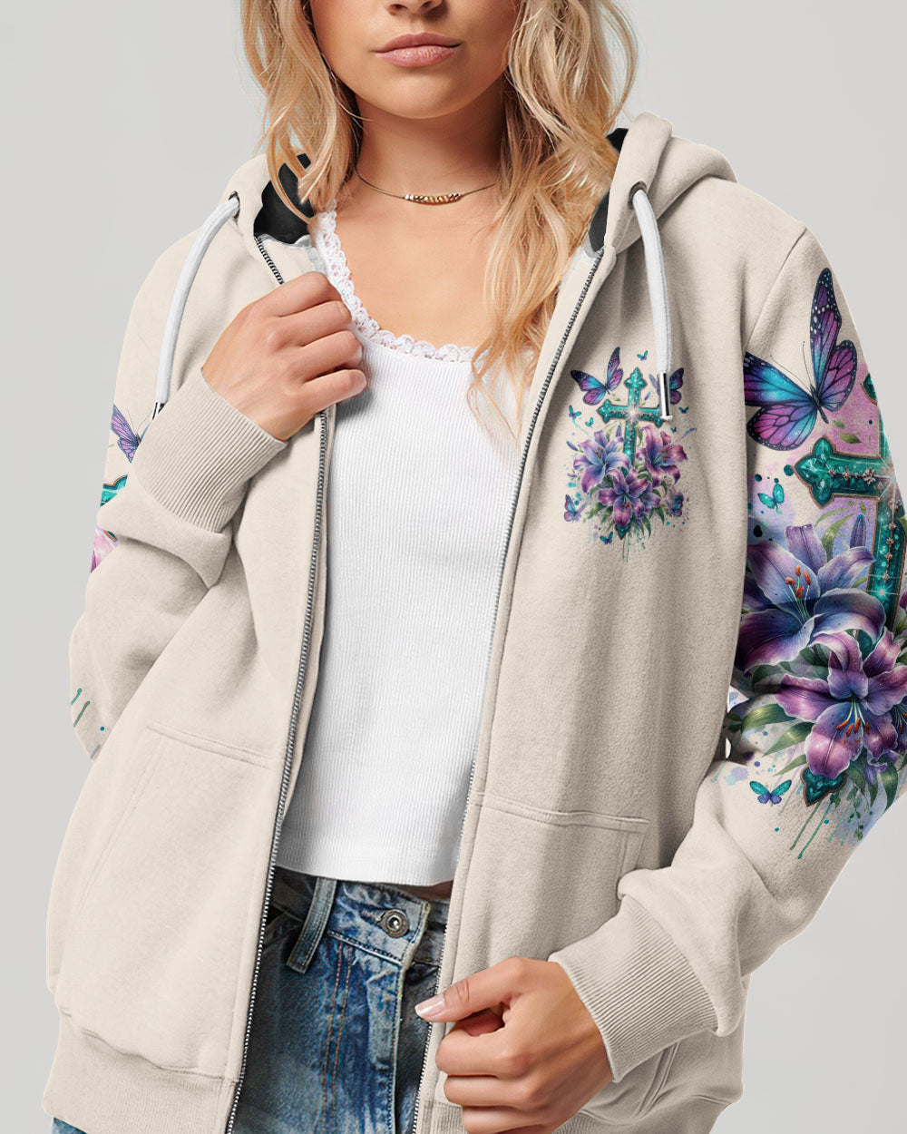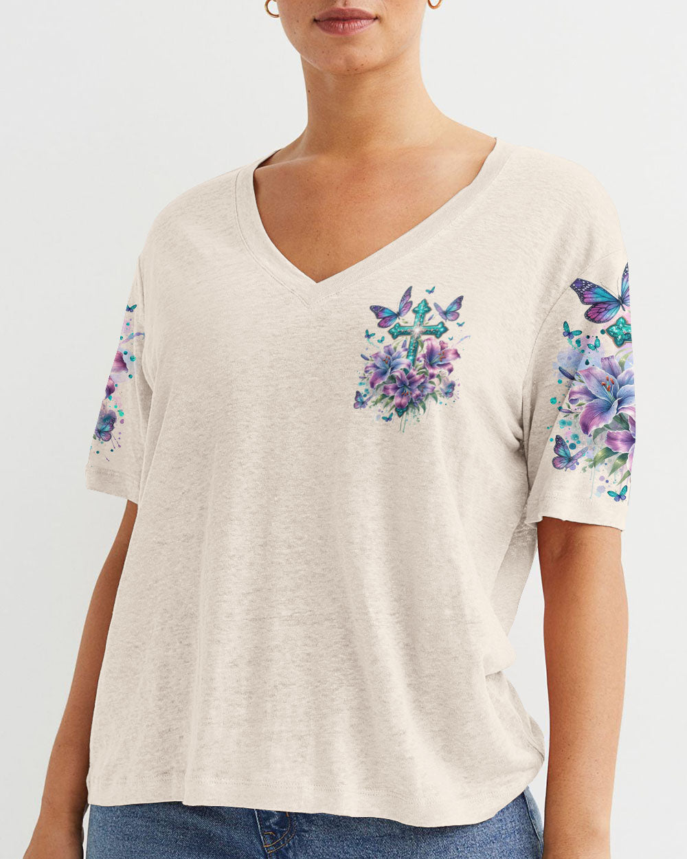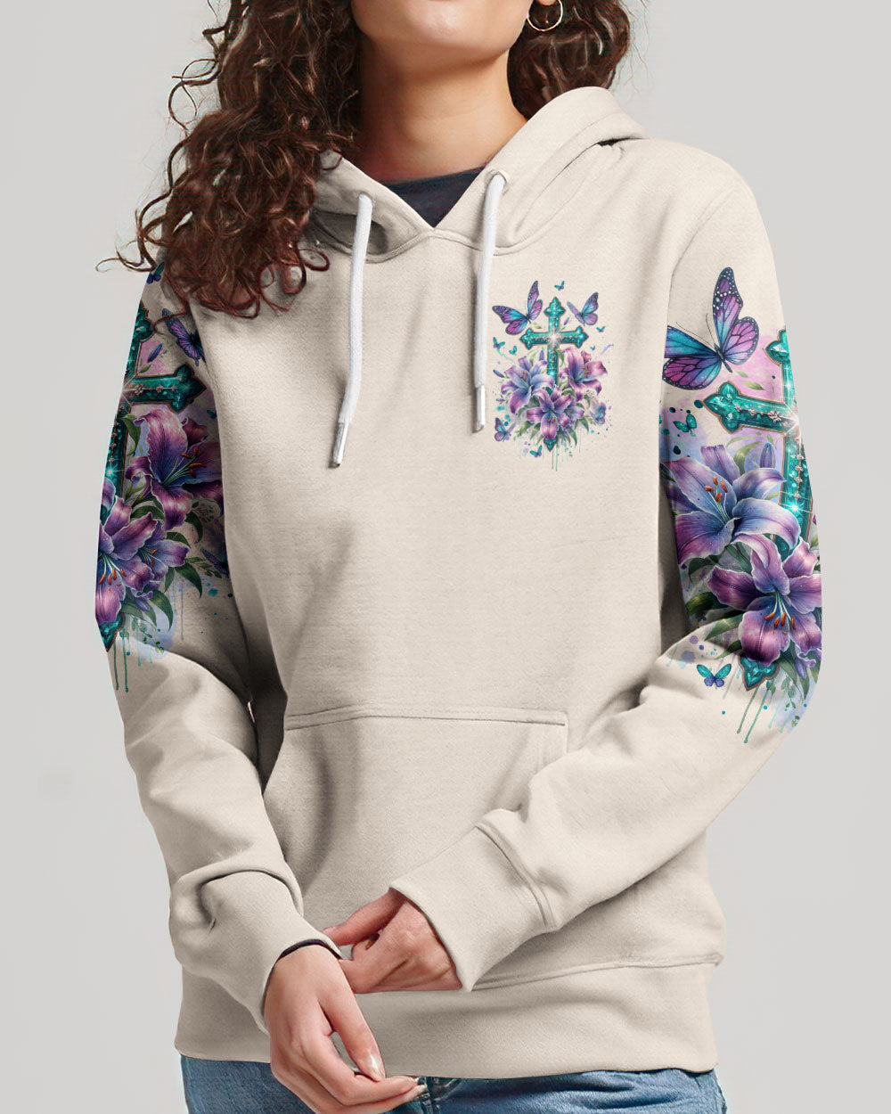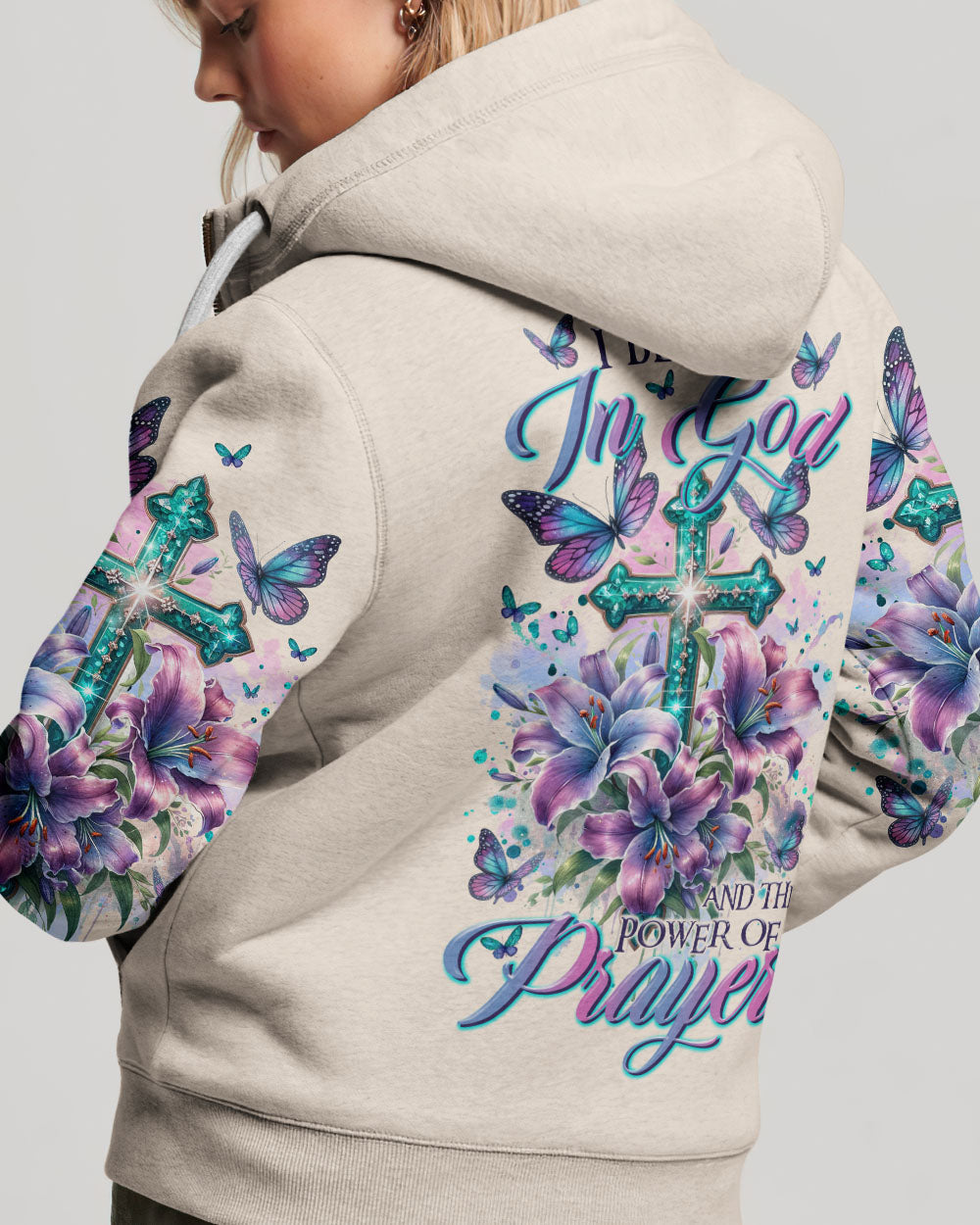 This beautiful I Believe In God Women's All Over Print Shirt is crafted with a stunning cross design, featuring elegant lilies and a powerful message of faith. With the saying, "I believe in God and the power of prayer," this shirt serves as an inspiring reminder of hope and comfort to find in communion with God. Let your faith be known with this one-of-a-kind design!