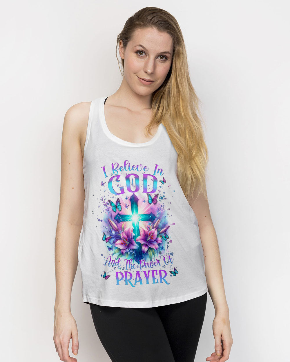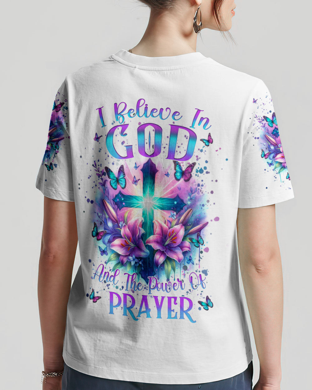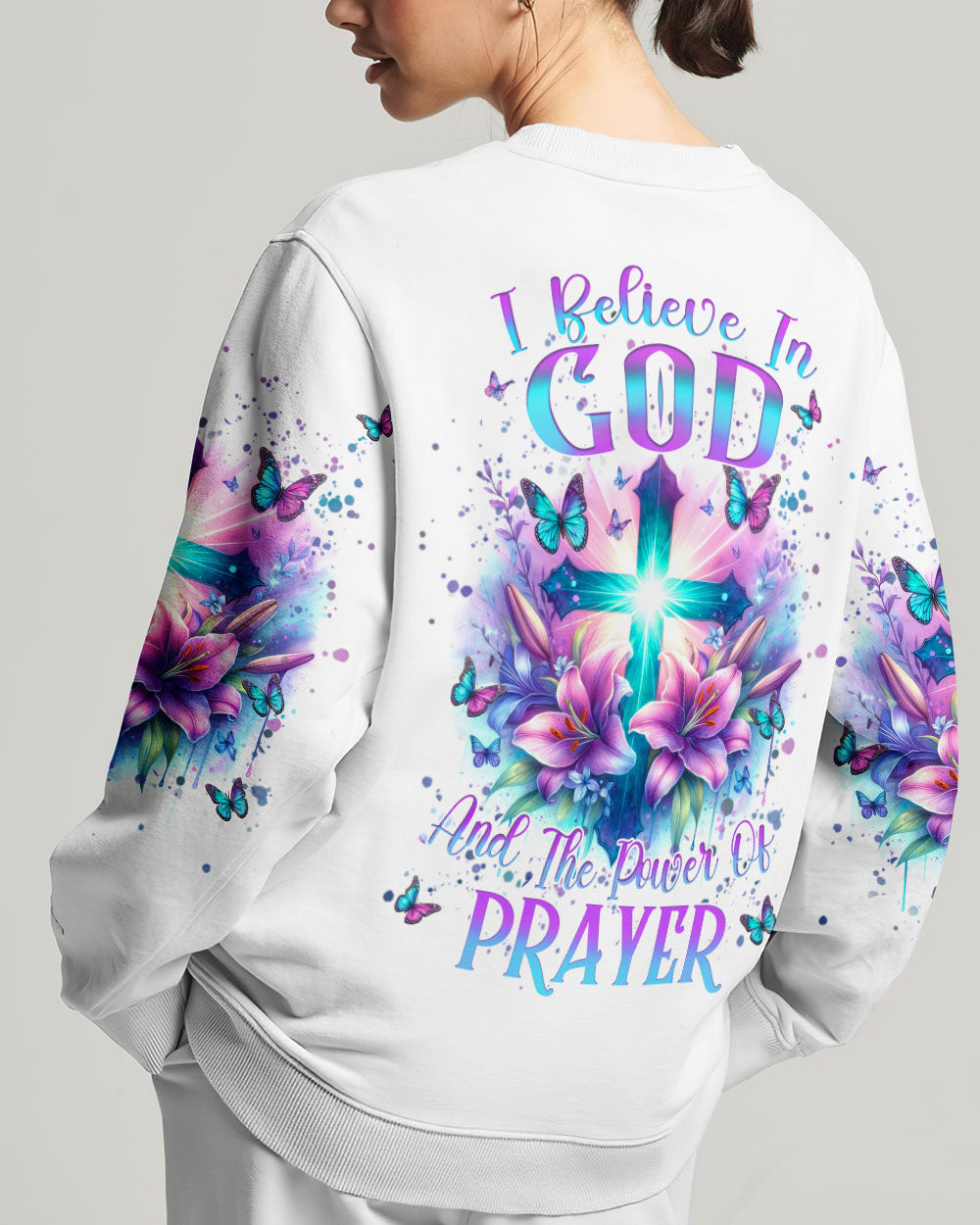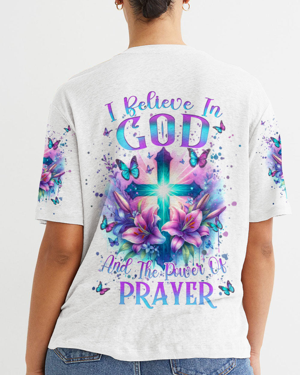 Illuminate your faith with our divine Faith Christ Design—a radiant testament to the power of belief and prayer. Picture a glowing cross adorned with delicate lily flowers and surrounded by graceful butterflies, creating a visual hymn of spiritual grace. The resolute quote, "I believe in God and the power of prayer," adds conviction to this sacred design. Beyond mere artwork, it becomes a personal declaration of faith and a source of inspiration. Whether for personal reflection or as a thoughtful gift, let the luminous beauty of our design be a constant reminder of the strength found in belief.