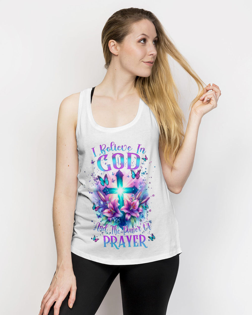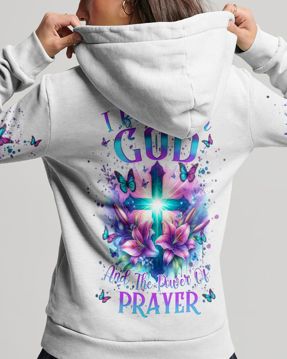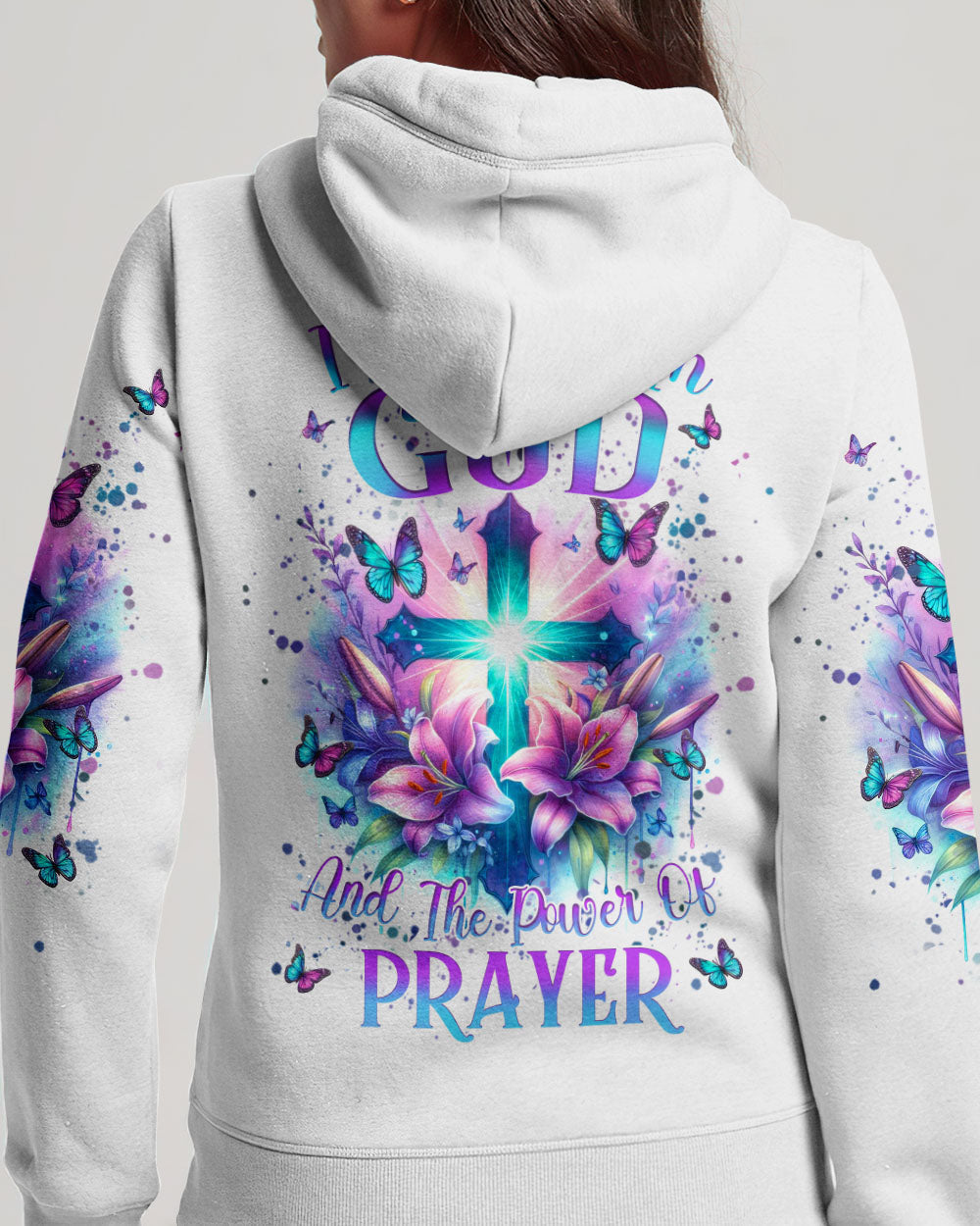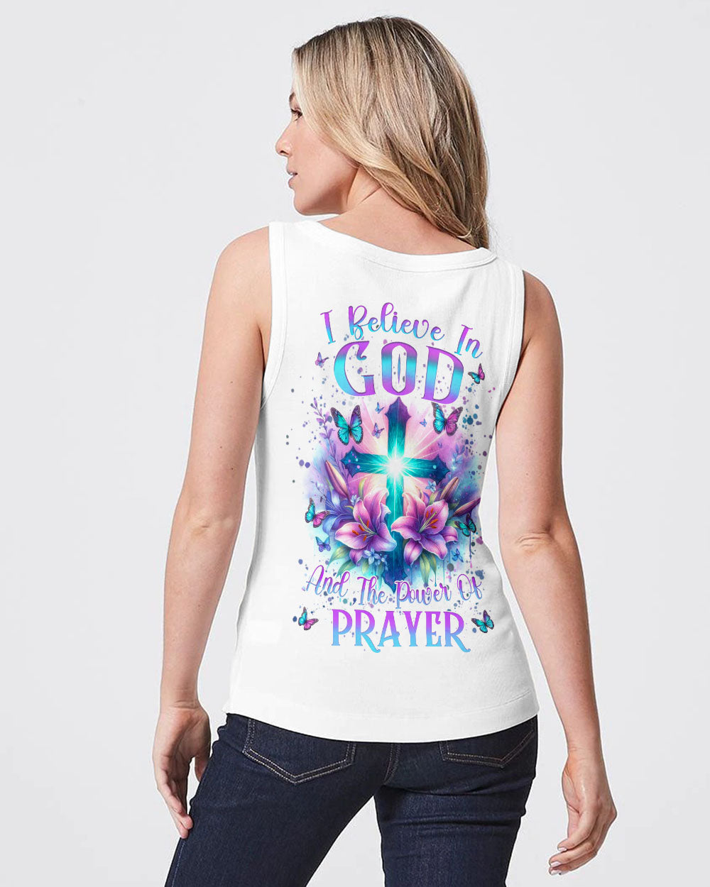 Illuminate your faith with our divine Faith Christ Design—a radiant testament to the power of belief and prayer. Picture a glowing cross adorned with delicate lily flowers and surrounded by graceful butterflies, creating a visual hymn of spiritual grace. The resolute quote, "I believe in God and the power of prayer," adds conviction to this sacred design. Beyond mere artwork, it becomes a personal declaration of faith and a source of inspiration. Whether for personal reflection or as a thoughtful gift, let the luminous beauty of our design be a constant reminder of the strength found in belief.