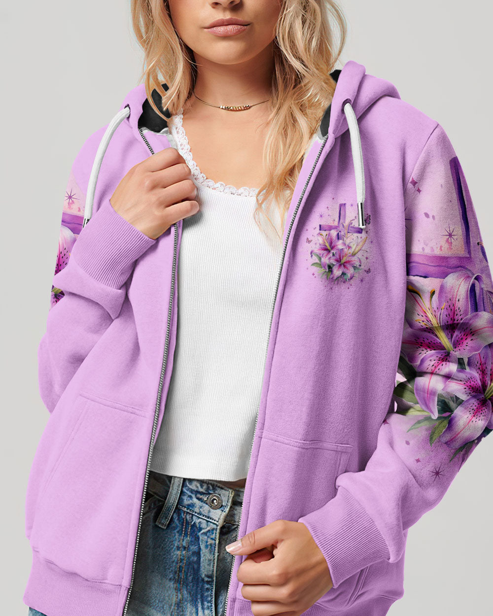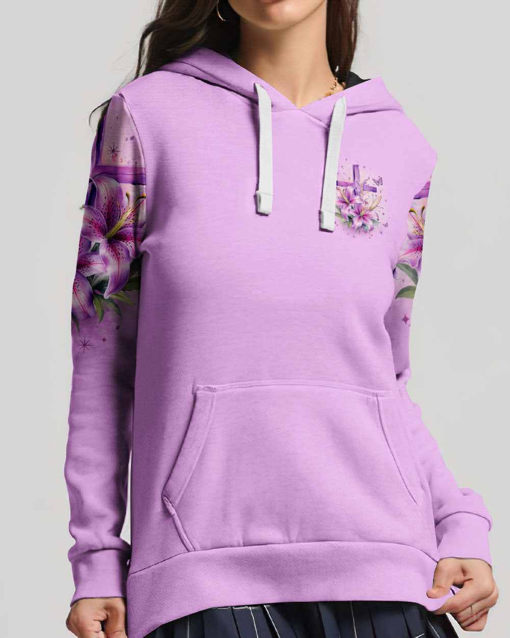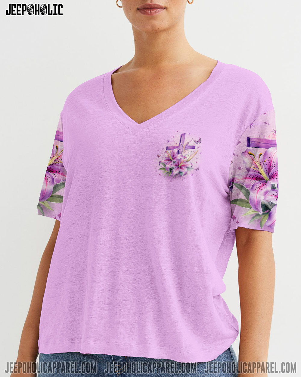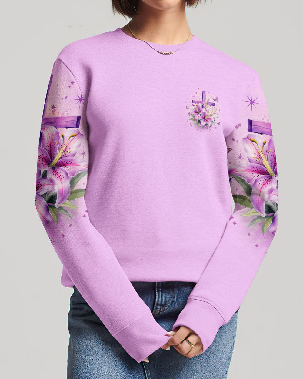 Feel the power of faith with our I Believe In God Women's All Over Print Shirt. The radiant Faith Christ design on this shirt is adorned with lily flowers, butterflies, and a cross, creating a symbol of divine beauty. Express your spiritual journey and let your faith light the way.