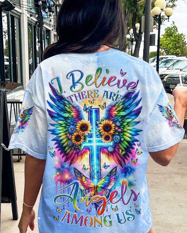 I Believe There Are Angels Among Us Cross Wings Women's All Over Print Shirt - Tlnz1912235