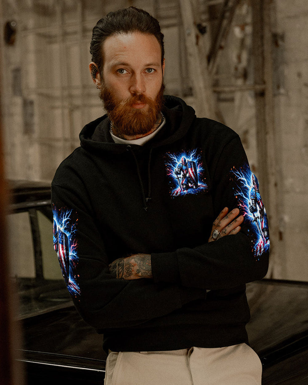 Unleash your inner warrior with our bold all-over print shirt, featuring lightning bolt accents symbolizing bravery and strength. Show your devotion to the Lord Jesus with the phrase "I Bow To None Other Than The Lord Jesus Christ," finding strength and courage in His divine presence.