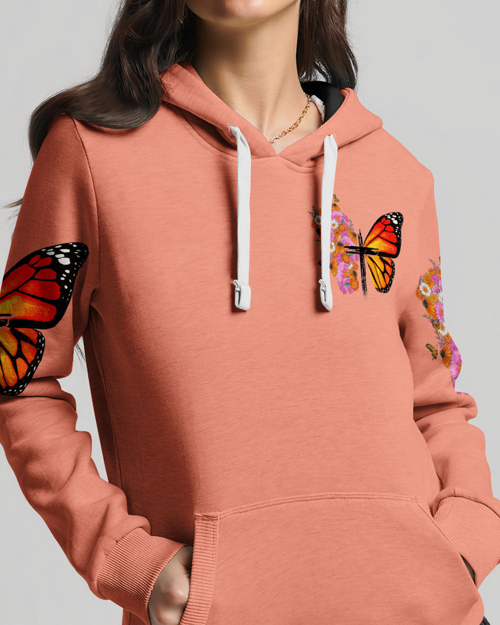 This I Can Do All Things Butterfly Women's All Over Print Shirt is the perfect piece to express your faith and celebrate your spirituality. Showcasing crosses, graceful butterflies, and blooming flowers symbolizing spiritual renewal and resurrection, the empowering quote "I Can Do All Things Through Christ Who Strengthens Me" will ignite your inner strength and remind you of the limitless possibilities when trusting in God's grace. Trust in Him, and unlock your true potential.