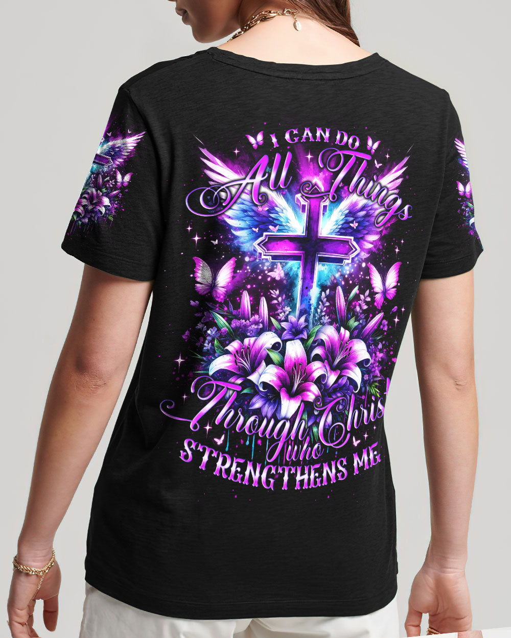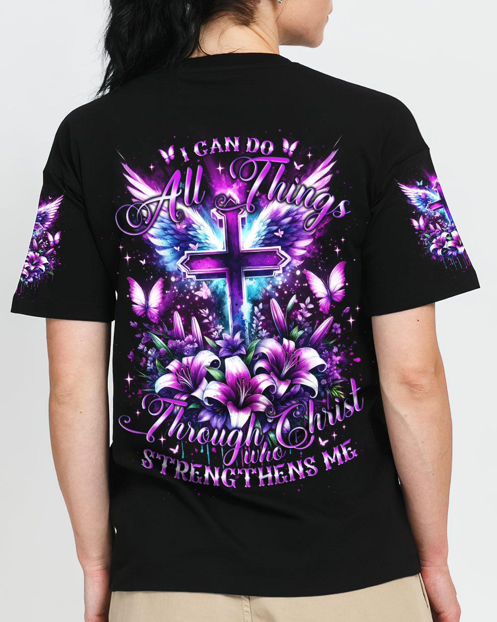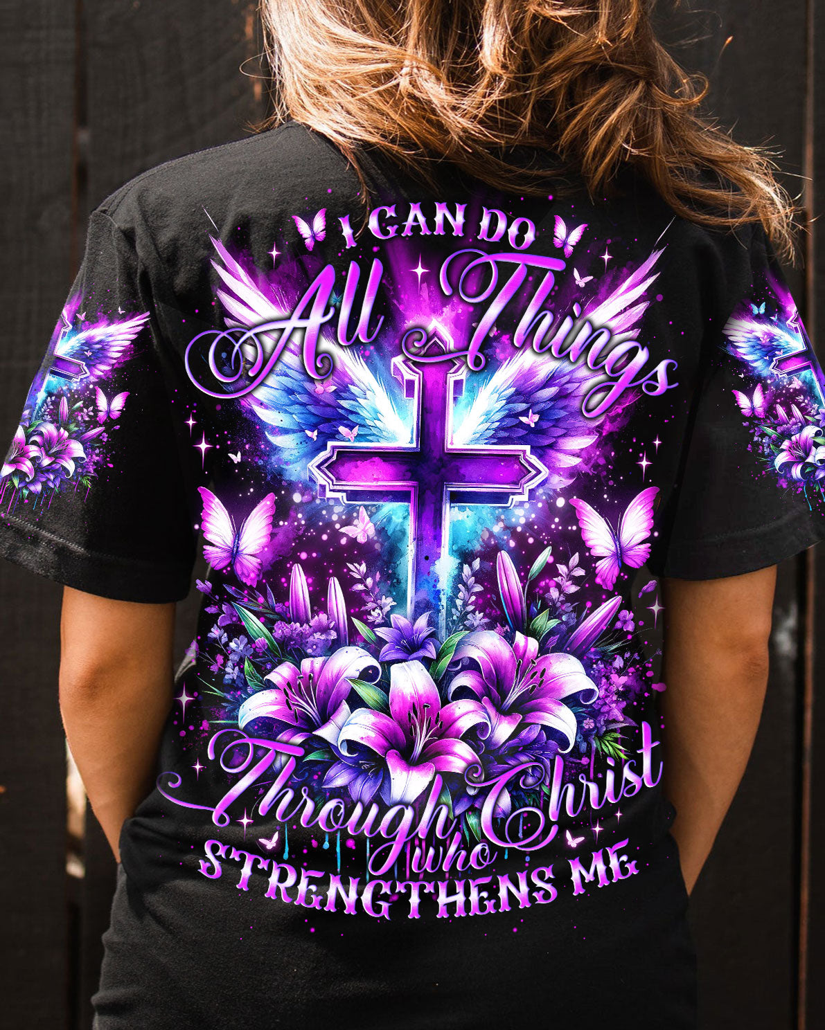 I Can Do All Things Cross Lilies Wings Women's All Over Print Shirt - Tlno1501243