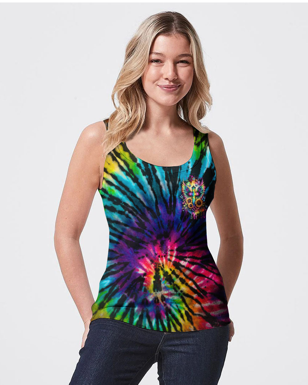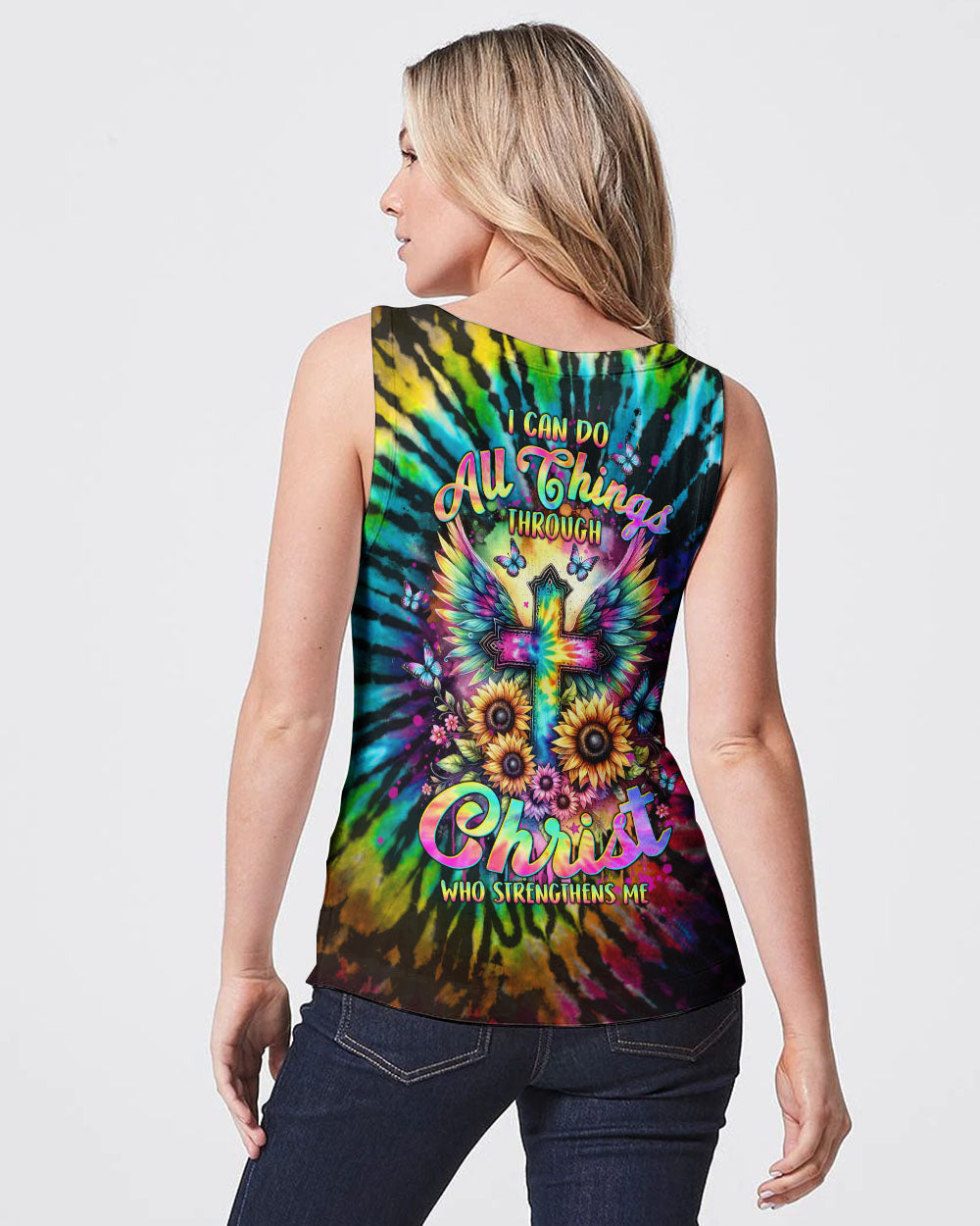 Experience the power and beauty of faith with our I Can Do All Things Cross Tie Dye Women's All Over Print Shirt. The colorful tie-dye roses and strong cross symbolize the strength and confidence that comes from faith in Jesus. With the reminder that "I can do all things through Christ who strengthens me," you'll feel empowered to overcome any obstacle.
