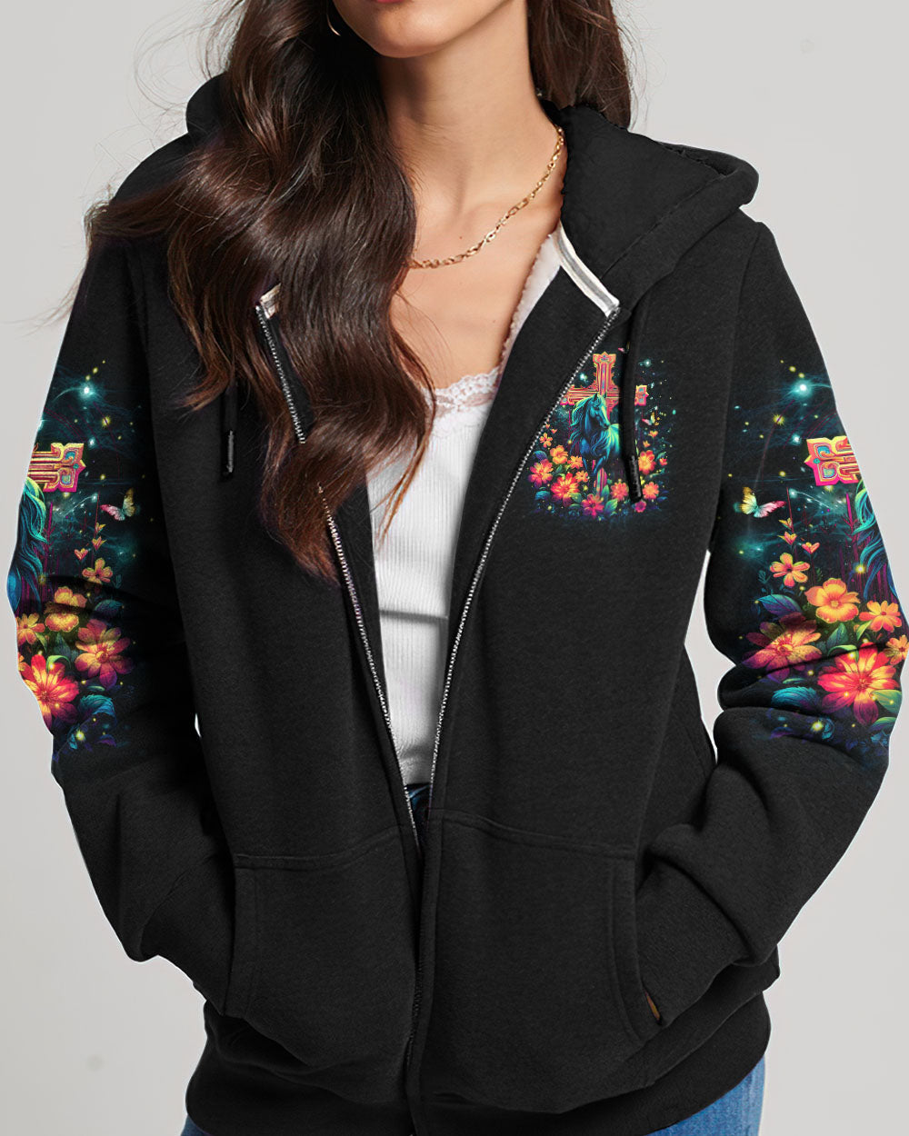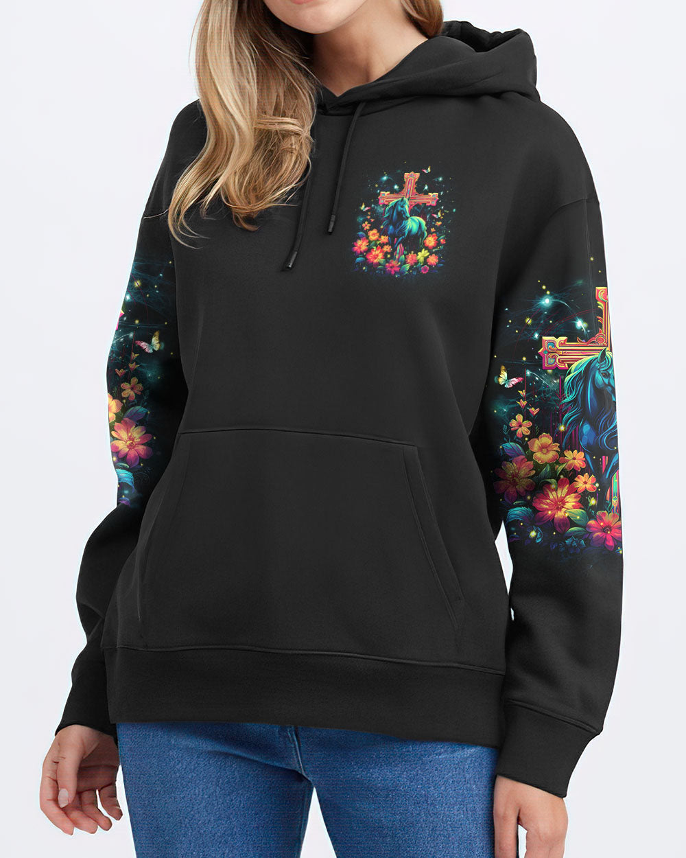 Look stylish and motivate yourself while wearing our I Can Do All Things Horse Women's All Over Print Shirt. Featuring a beautiful fusion of a radiant cross, a horse, flowers and butterflies, this design is a powerful symbol of resilience and faith. Let your fashion reflect the grace of faith and the power within!
