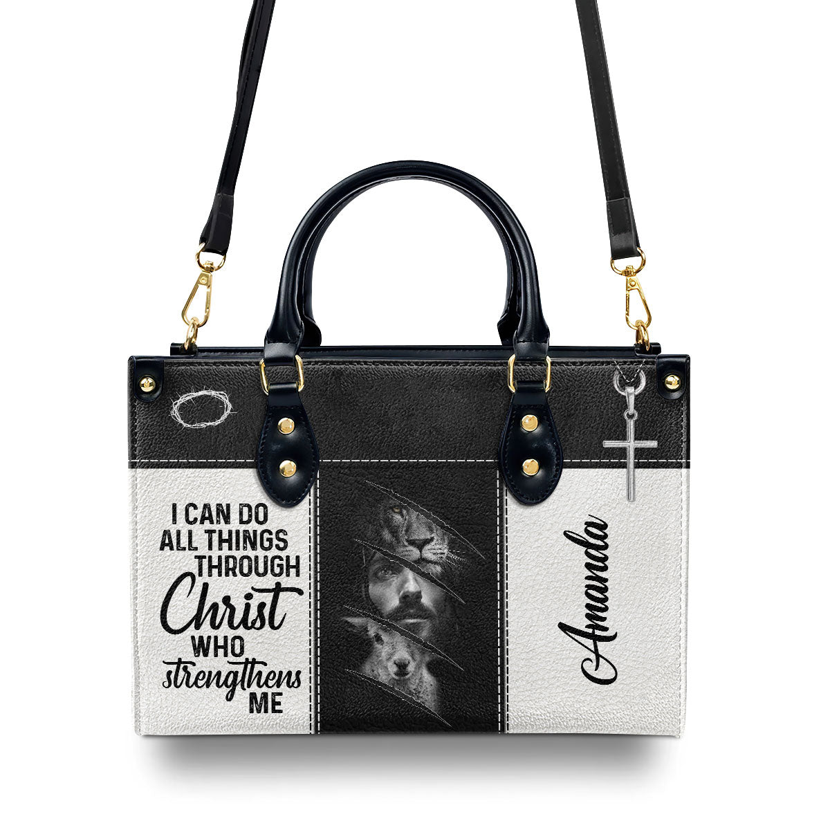 I Can Do All Things Through Christ - Beautiful Personalized Lion Leather Handbag HIHN314