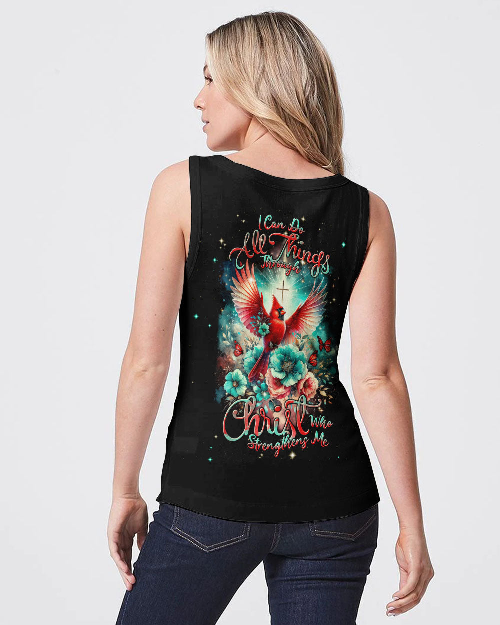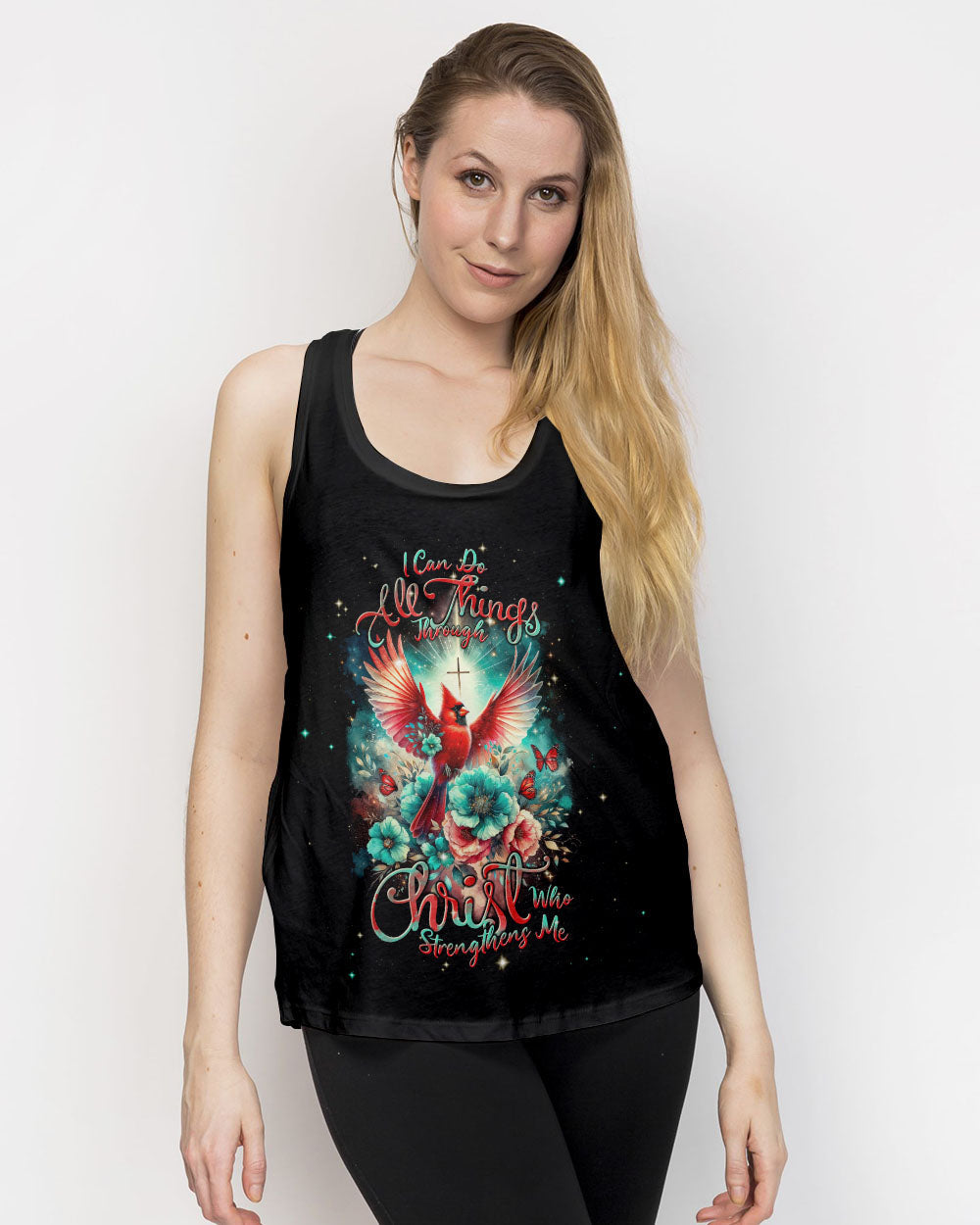 Elevate your wardrobe with our all-over print shirt featuring a stunning red cardinal design and the empowering affirmation, "I can do all things through Christ." This stylish shirt embodies a powerful statement of faith and strength, reminding you that with divine support, you can conquer any obstacle.