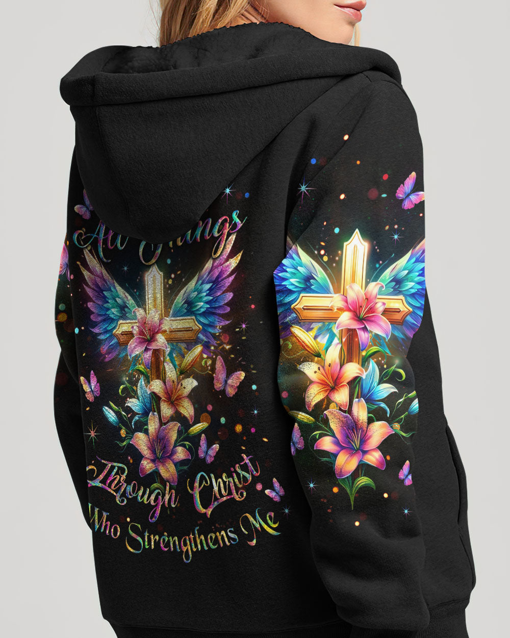 I Can Do All Things Through Christ Cross Wings Women's All Over Print Shirt - Yhlt2411233