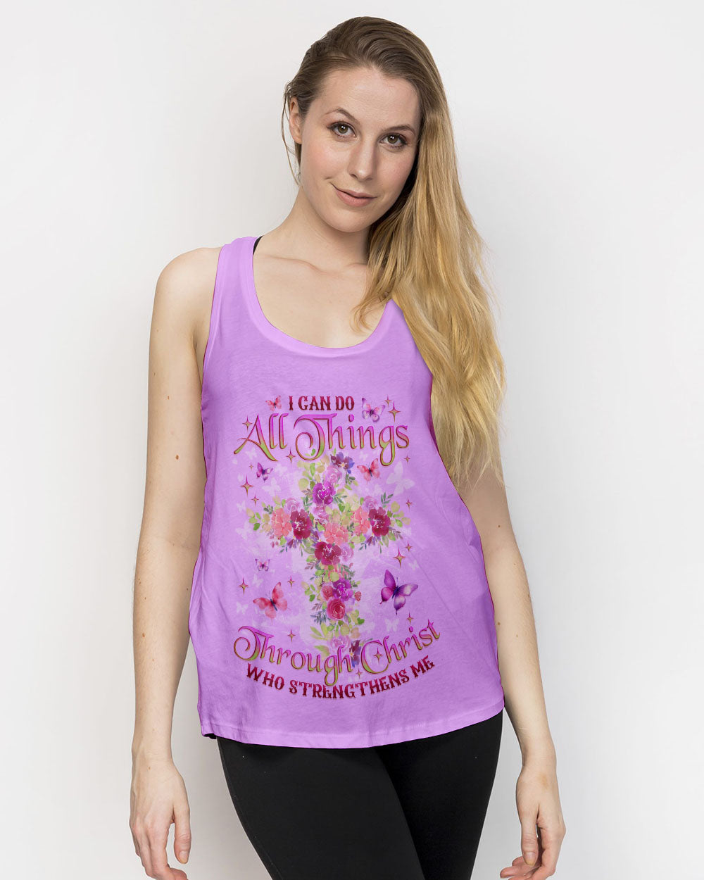 I Can Do All Things Through Christ Flower Cross Women's All Over Print Shirt - Tlno1312234