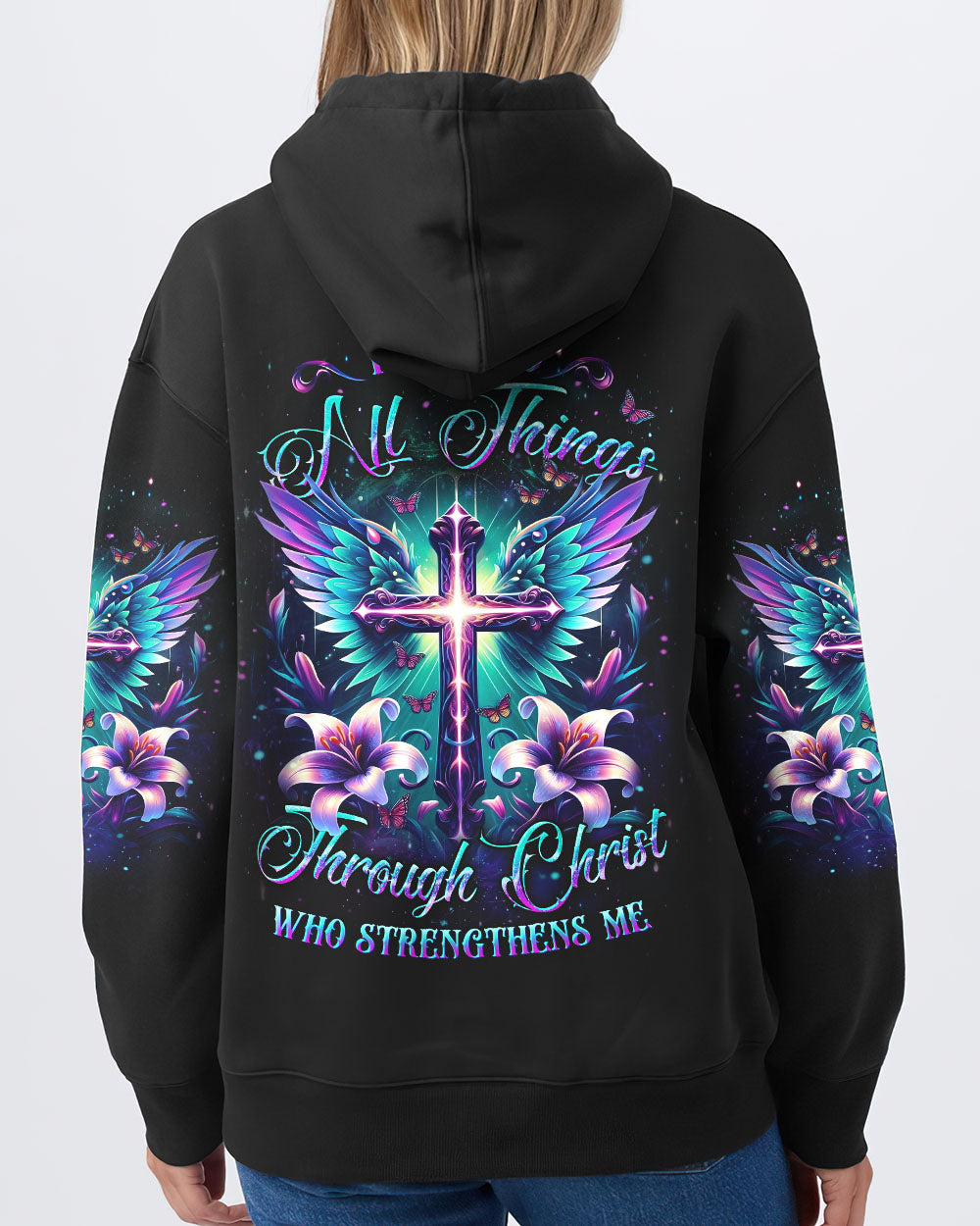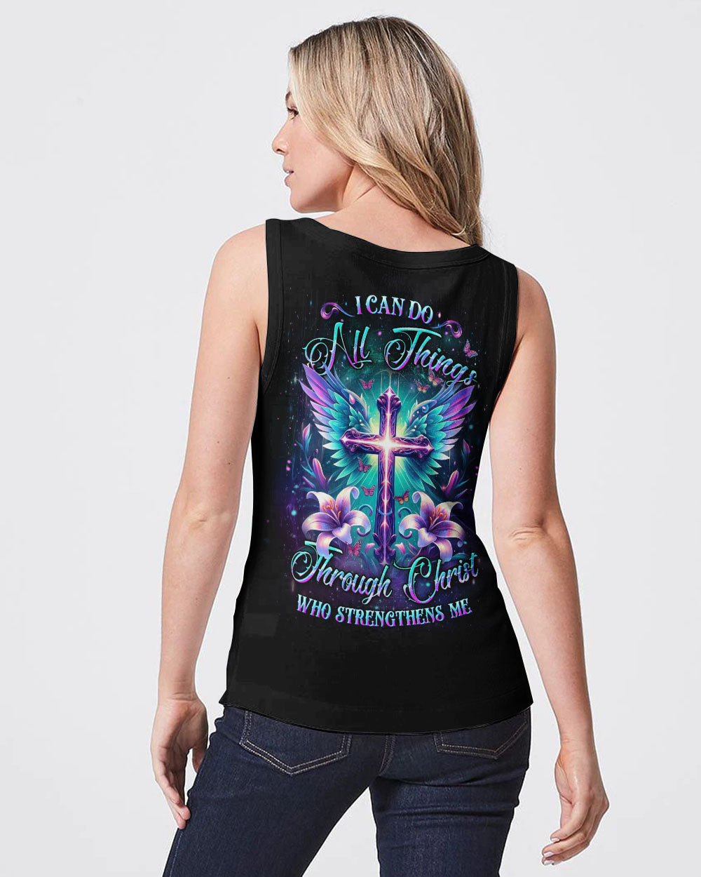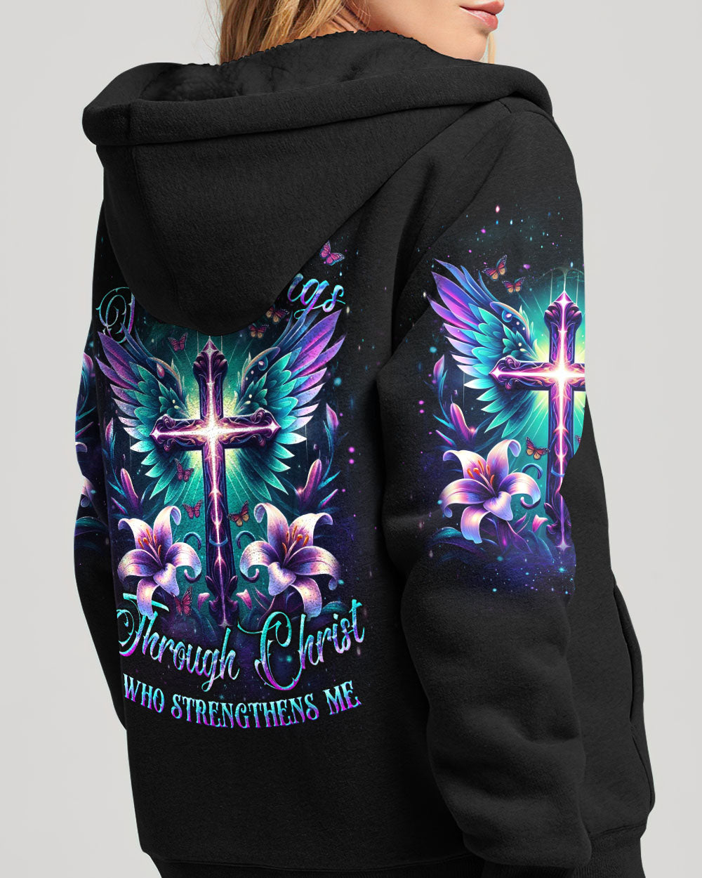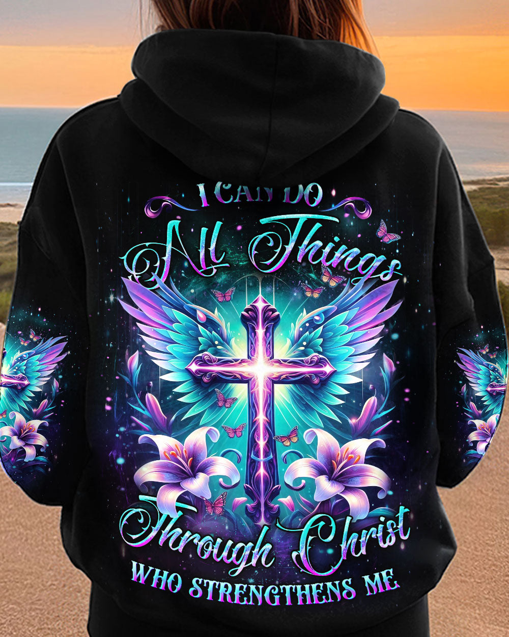 Make a statement of faith with this beautiful and uplifting design. Featuring a heavenly blend of spirituality and strength, the "I Can Do All Things Through Christ Who Strengthens Me" quote serves as a constant reminder of the power of faith. Celebrate the limitless possibilities and grace that comes from within when you put on this Faith Christ Design. Illuminate your faith and elevate your style.