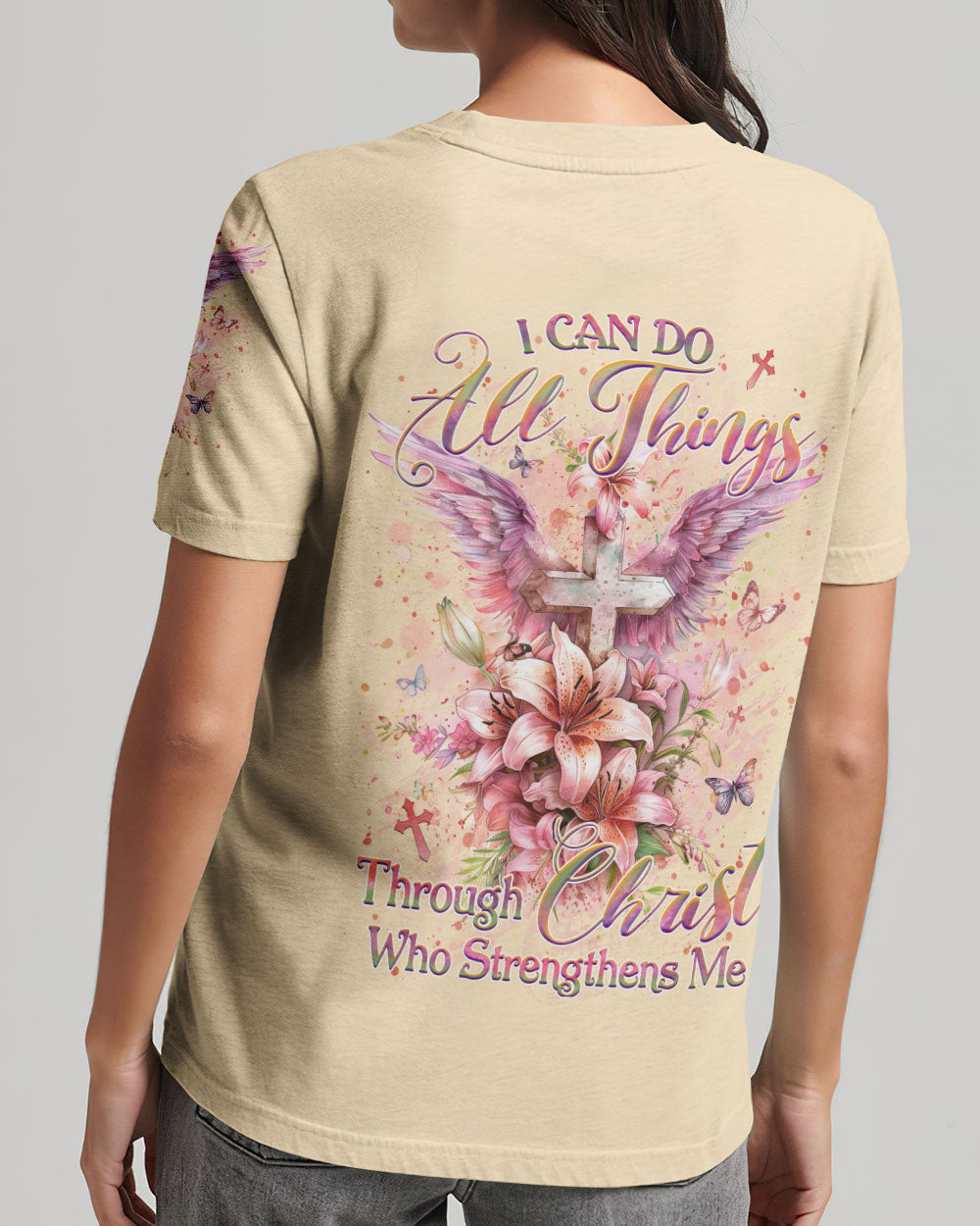 Embrace the power of faith with our exquisite Faith Christ Design. The majestic watercolor cross adorned with lilies and butterflies symbolizes beauty and resilience in Christ's love. Find strength with the inspiring quote, "I can do all things through Christ who strengthens me." Let this design uplift your spirit and guide you with renewed faith and determination.