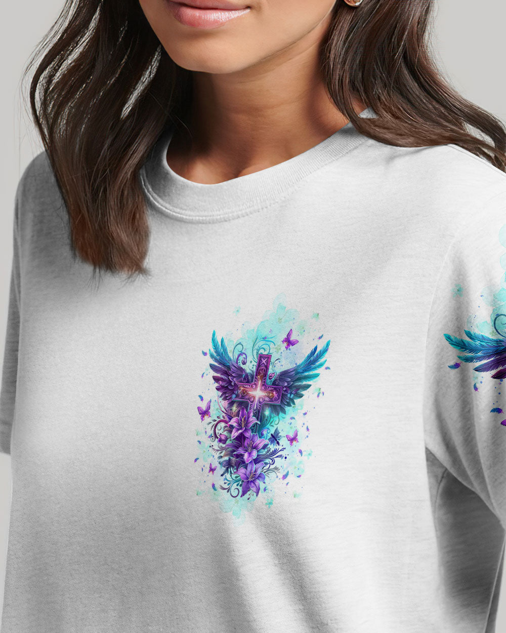 Experience divine empowerment with our Faith Christ design, showcasing a luminous cross adorned with majestic wings, delicate lilies, and ethereal butterflies. This fusion of symbols embodies spiritual strength and transformation. Embrace the uplifting message, "I can do all things through Christ who strengthens me," affirming your limitless potential with faith. Let this design inspire you, radiating the transformative power of belief. Wear it as a reminder of your inner strength and let faith illuminate your path. Elevate your style and spirit – order now and embark on a journey of empowerment and grace.