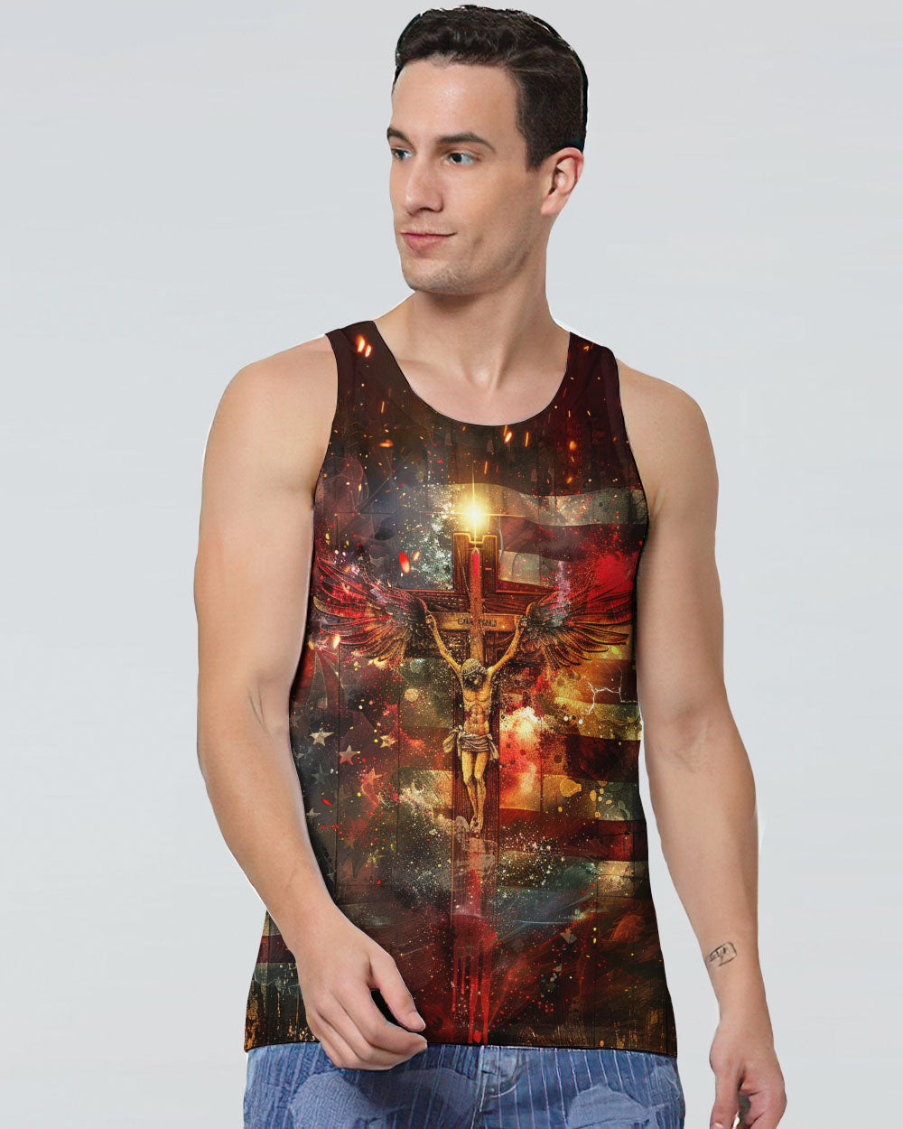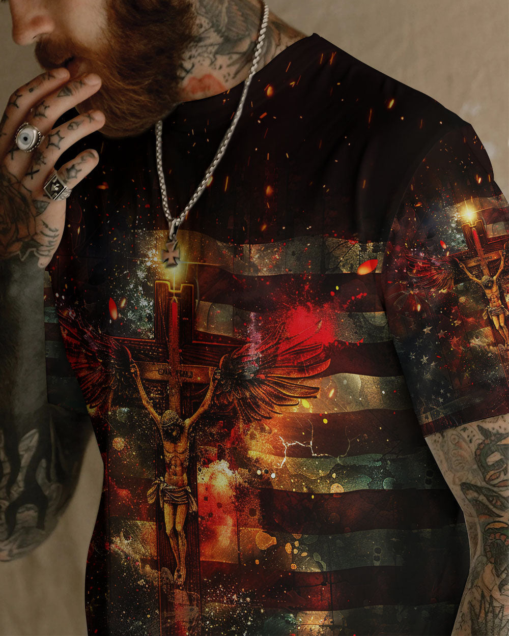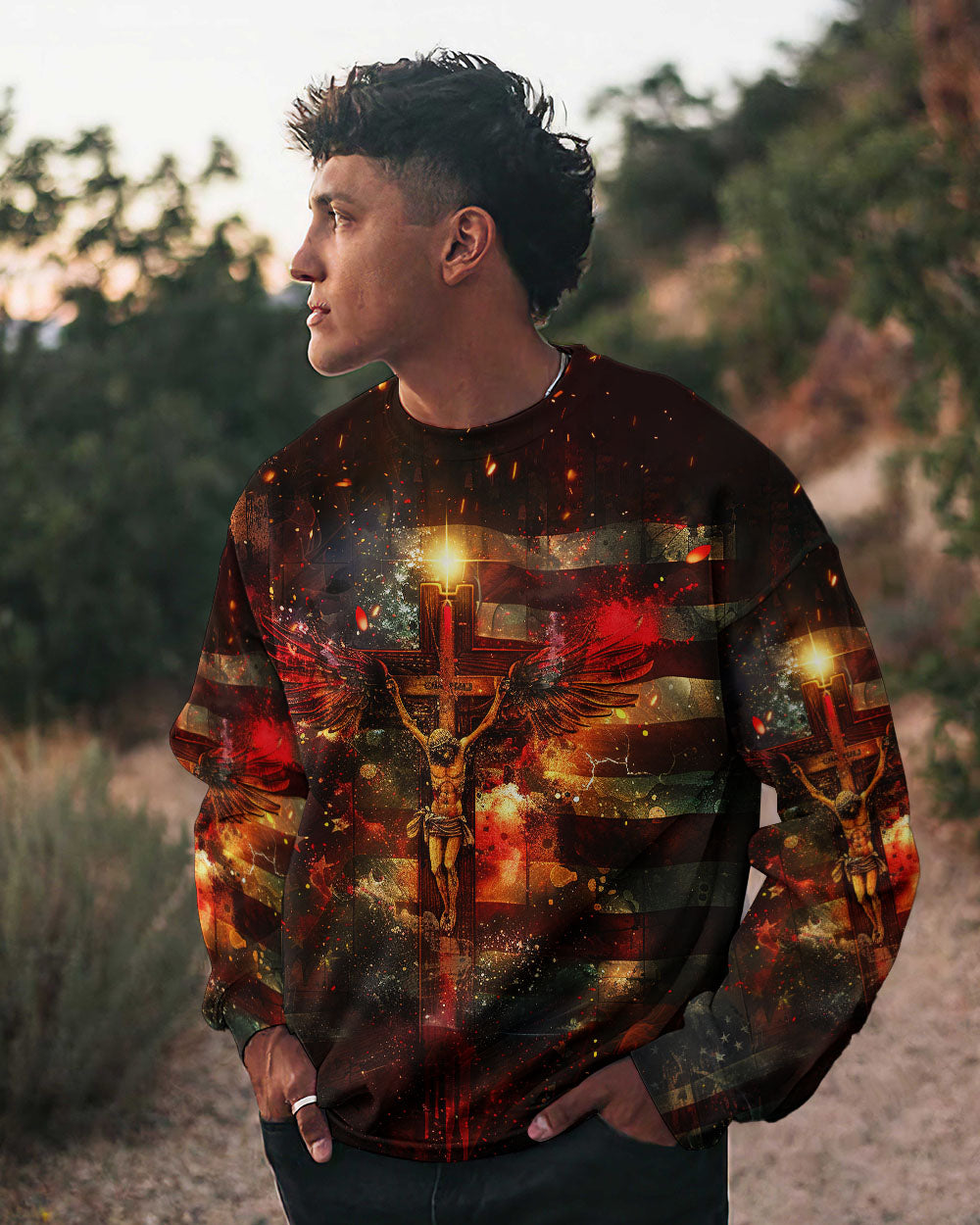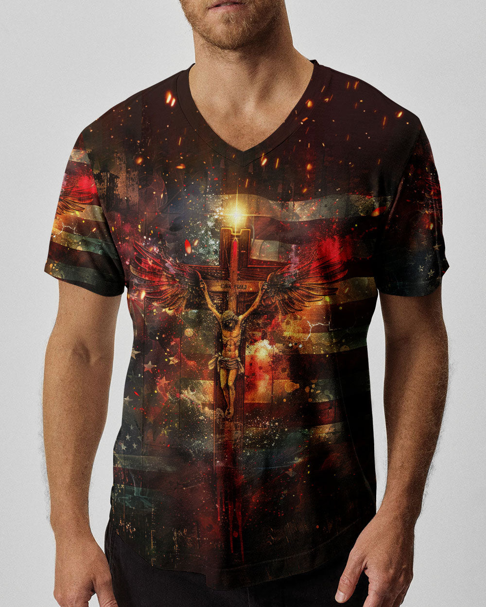 Embody your faith with our "I Only Kneel For One Man" all-over print shirt. Featuring a powerful winged cross and the quote, "I only kneel for one man and he died on the cross," this shirt exemplifies your unwavering devotion to Jesus Christ. Show your commitment to Him with this symbolic and meaningful garment.