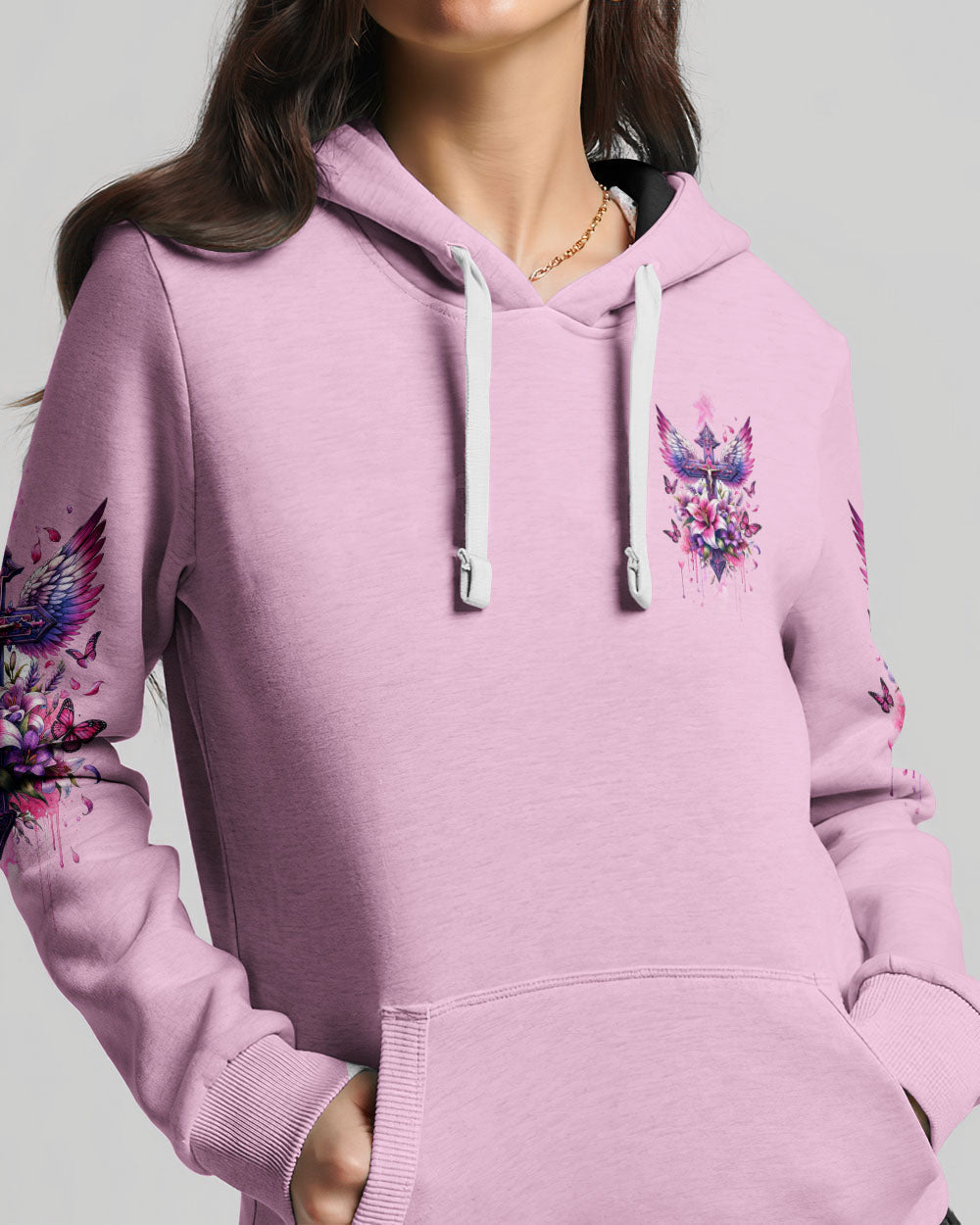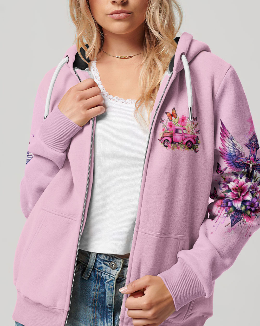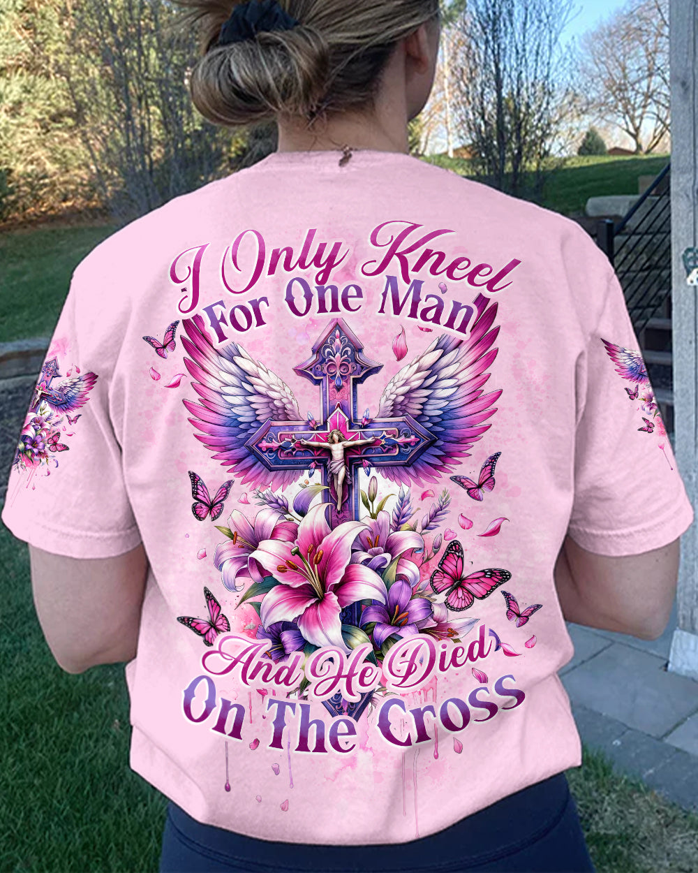 This captivating all-over print shirt combines powerful symbolism and unwavering faith with its fusion of crosses, wings, lilies, butterflies, and the impactful quote "I only kneel for one man and he died on the cross." Showcasing devotion and strength, this design serves as a visual testament to the beauty and journey of the Christian faith.