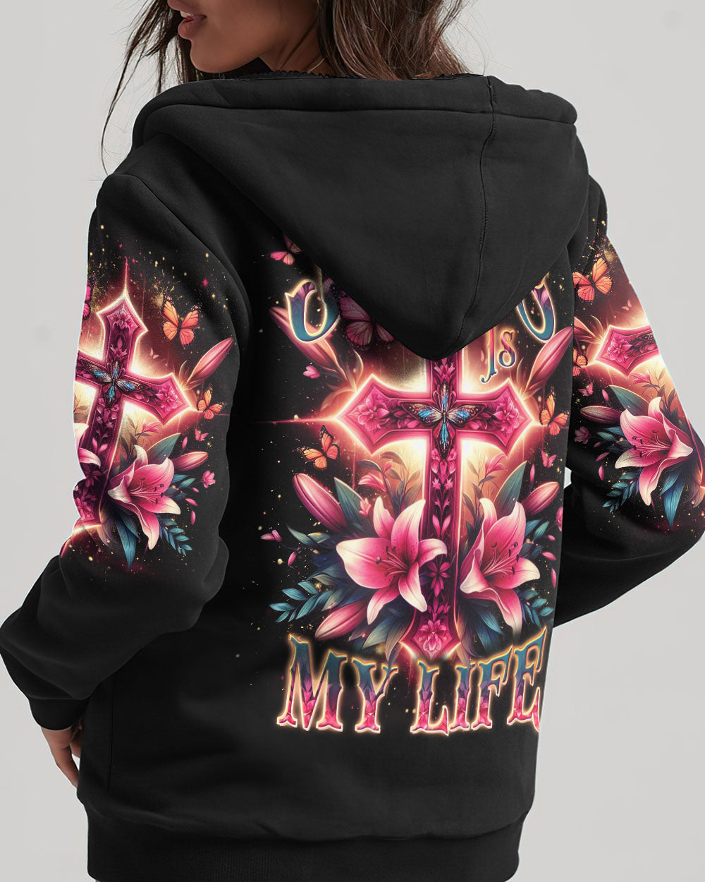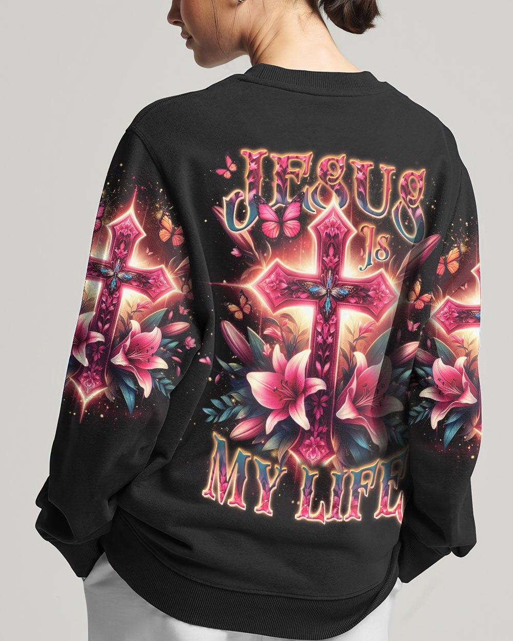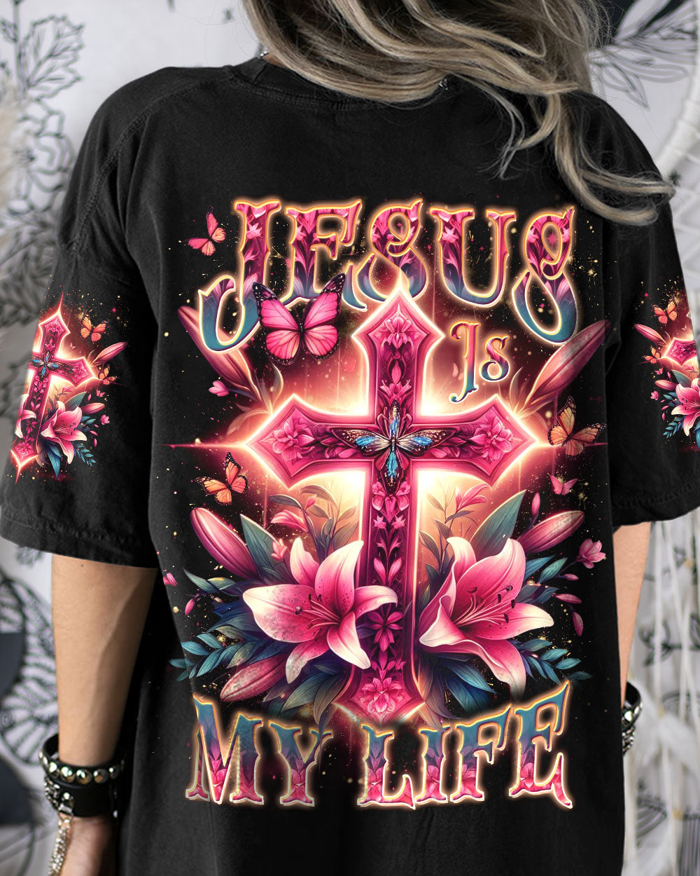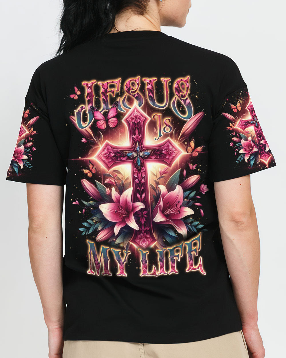 Celebrate the beauty of faith with this beautiful Jesus Is My Life Cross Women's All Over Print Shirt. Featuring a delicate pink cross adorned with lilies and butterflies, this captivating design is a stunning reminder of devotion and spirituality. Showcase your faith with style and grace – order now and let this wearable declaration light up your wardrobe.