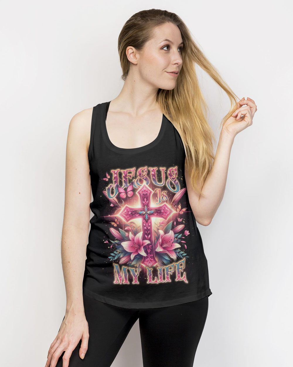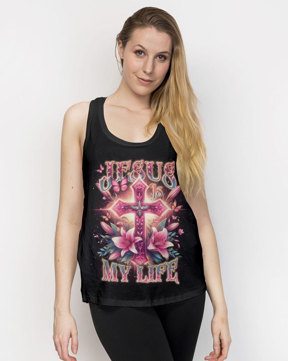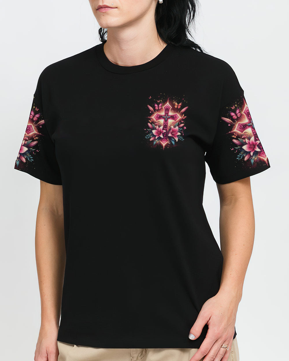 Celebrate the beauty of faith with this beautiful Jesus Is My Life Cross Women's All Over Print Shirt. Featuring a delicate pink cross adorned with lilies and butterflies, this captivating design is a stunning reminder of devotion and spirituality. Showcase your faith with style and grace – order now and let this wearable declaration light up your wardrobe.