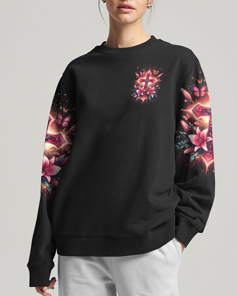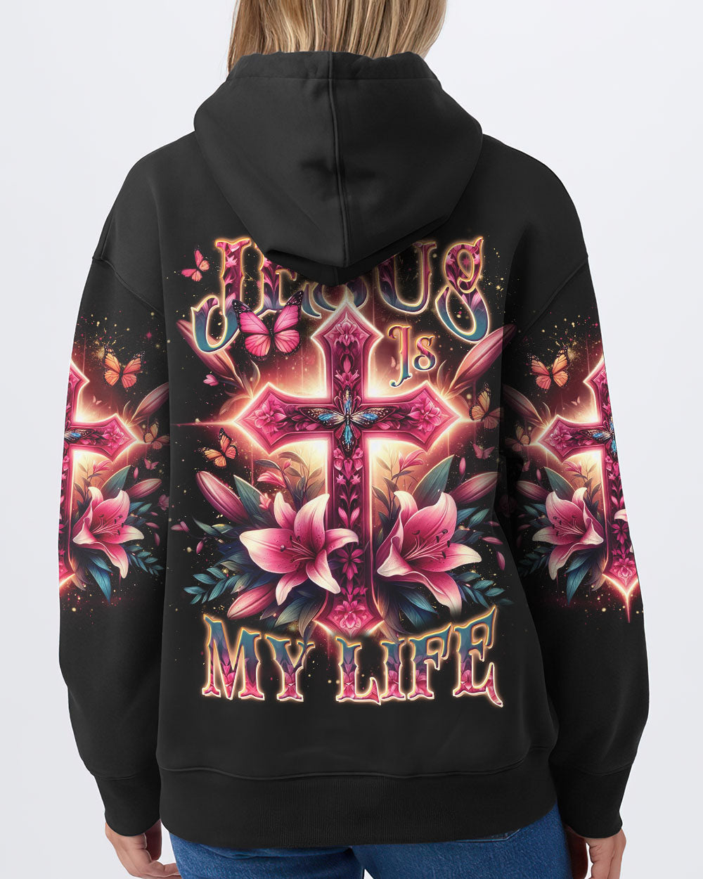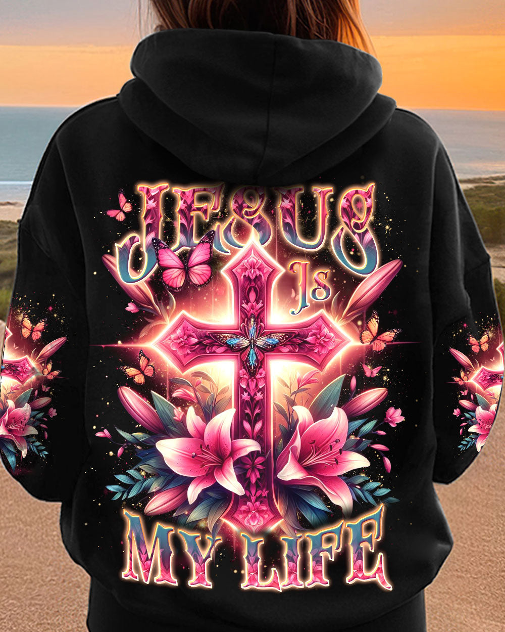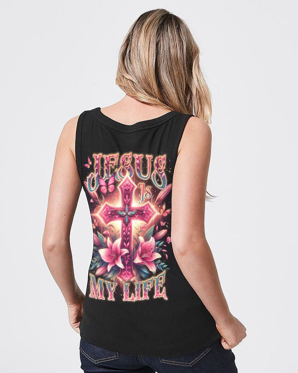 Celebrate the beauty of faith with this beautiful Jesus Is My Life Cross Women's All Over Print Shirt. Featuring a delicate pink cross adorned with lilies and butterflies, this captivating design is a stunning reminder of devotion and spirituality. Showcase your faith with style and grace – order now and let this wearable declaration light up your wardrobe.