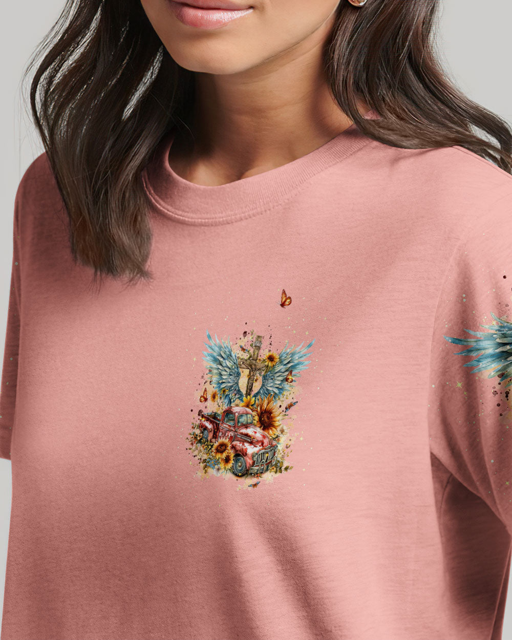 Surrender and trust in Jesus's divine guidance with this all over print shirt. Featuring a powerful cross, strong wings, and vibrant flowers, it symbolizes the ultimate surrender to His will. The quote "Jesus Take The Wheel" embodies the acknowledgment of Jesus as the ultimate guide, bringing a sense of peace and trust in life's journey.