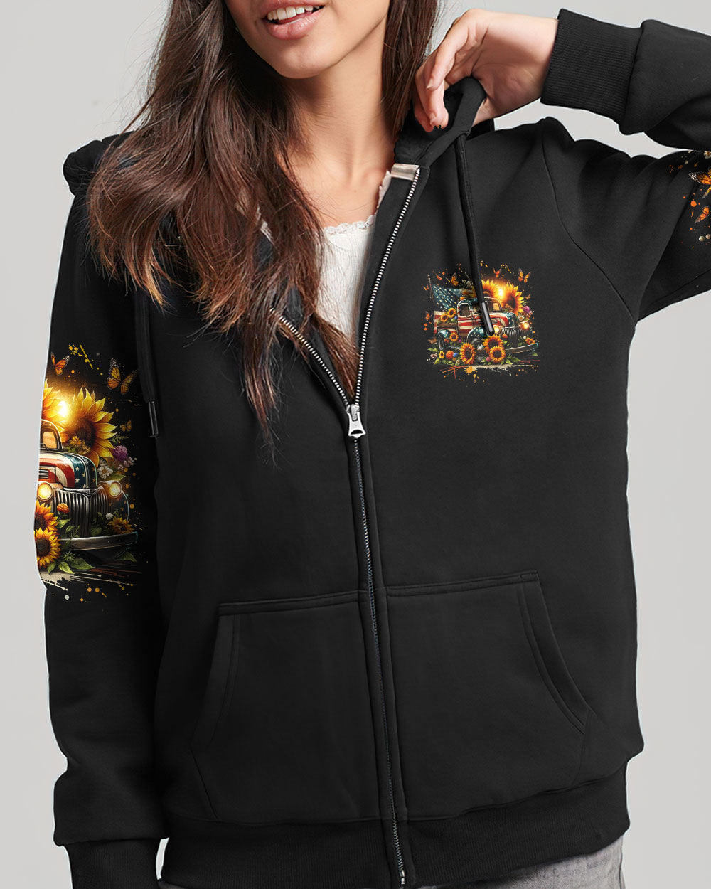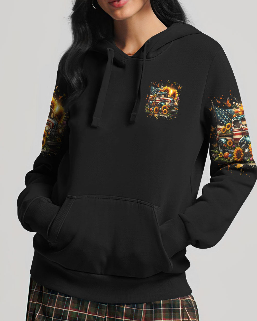 Aspire towards spiritual strength and positivity with our 'Jesus Take The Wheel' all-over print shirt. Featuring a vintage truck surrounded by vibrant sunflowers, this shirt embodies freedom and adventure. Embrace the power of faith and let go of control with our unique design.