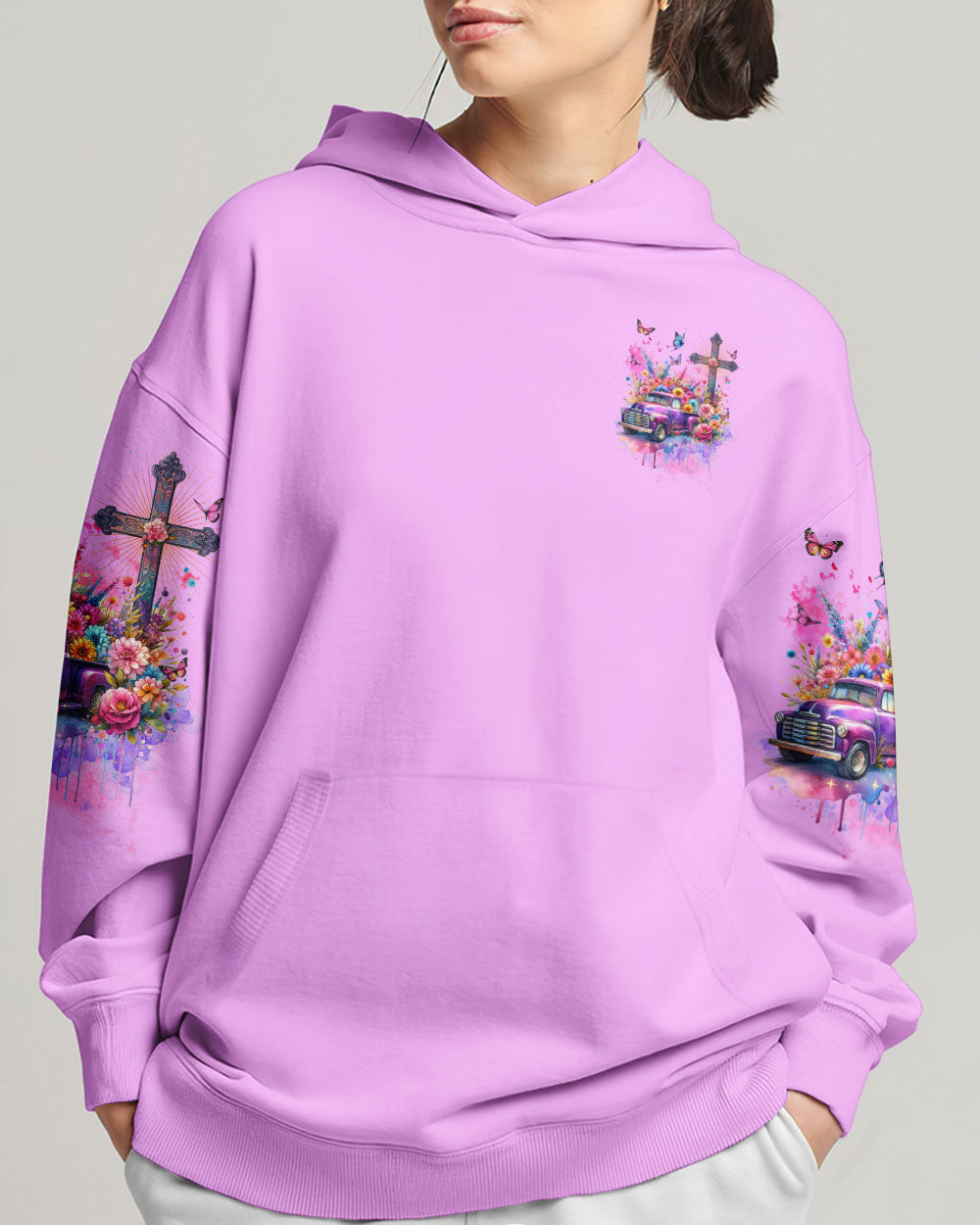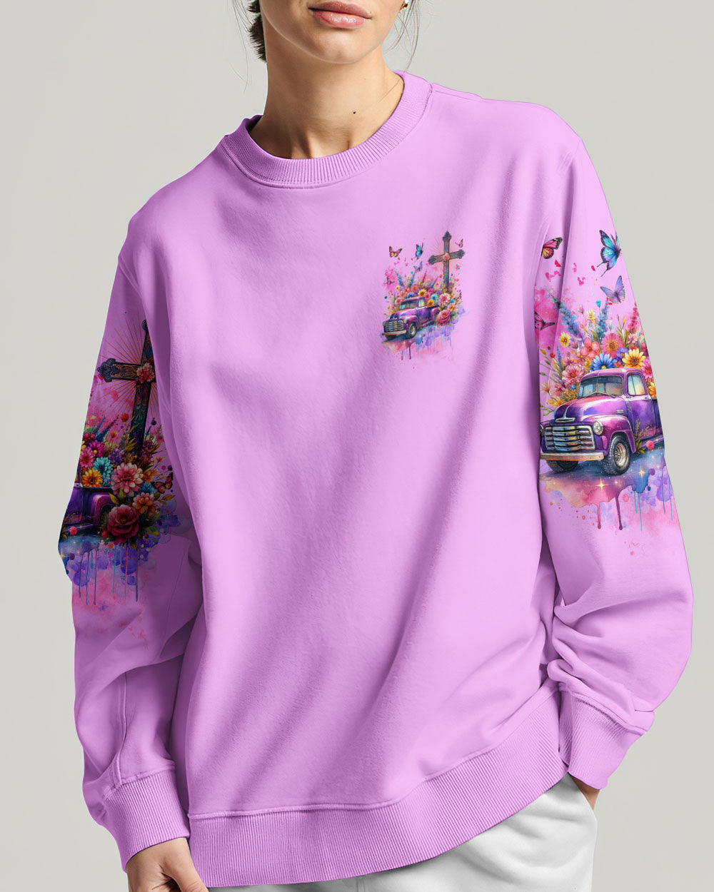 Embrace faith and serenity with our charming truck design adorned with wildflowers and a cross, symbolizing deep belief in Jesus Christ. Inspired by 'Jesus Take The Wheel,' it represents surrendering control, finding peace in divine guidance, and a path of trust and spiritual resilience.