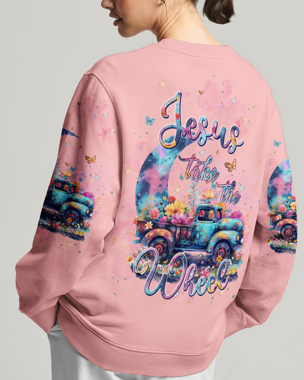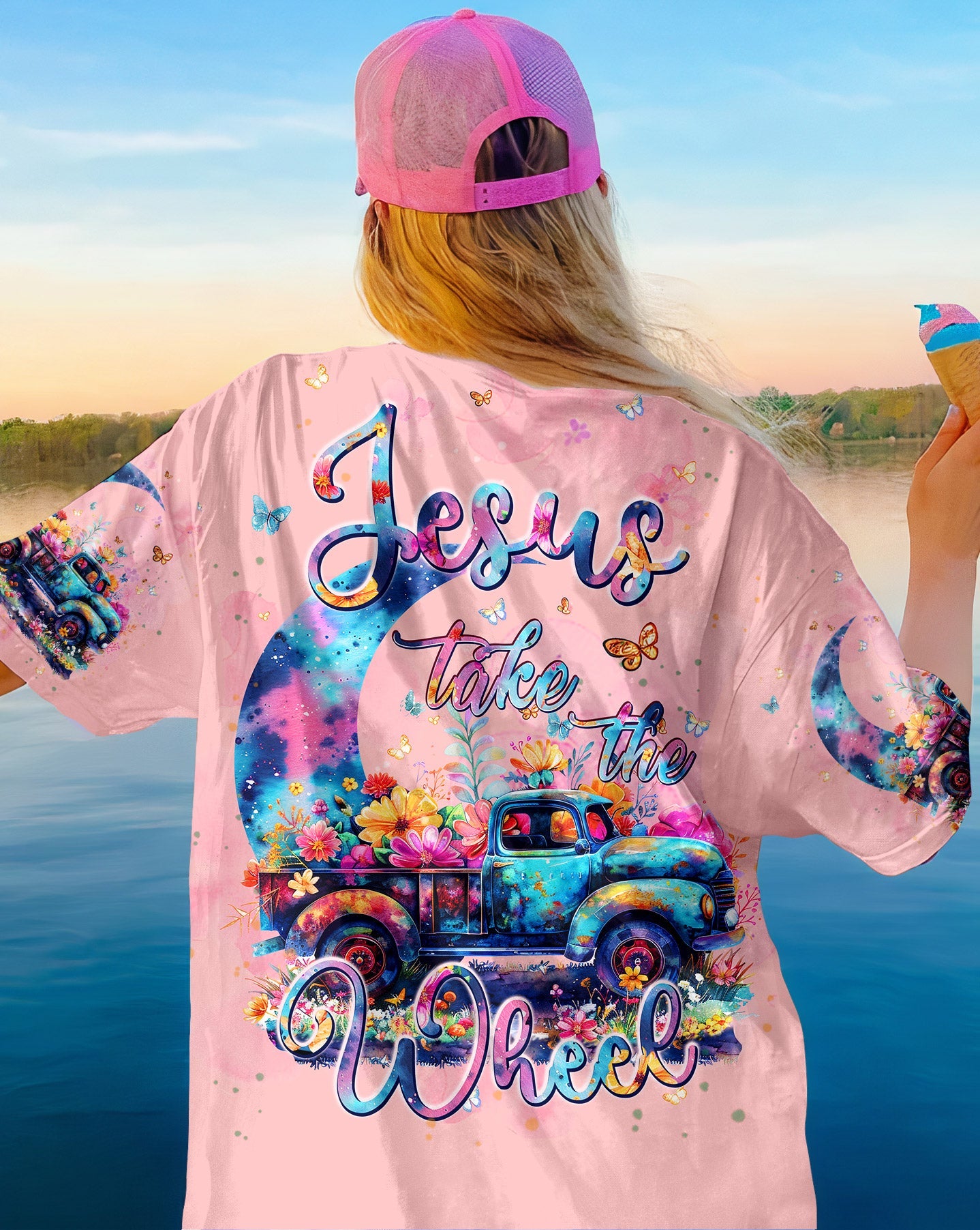 Indulge in tranquility with our Jesus Take The Wheel All Over Print Shirt. Featuring a flower truck under the moonlight, it represents complete faith in Jesus Christ. "Jesus Take The Wheel" symbolizes letting go of control and trusting in divine guidance. Let Jesus be your guide on life's journey.