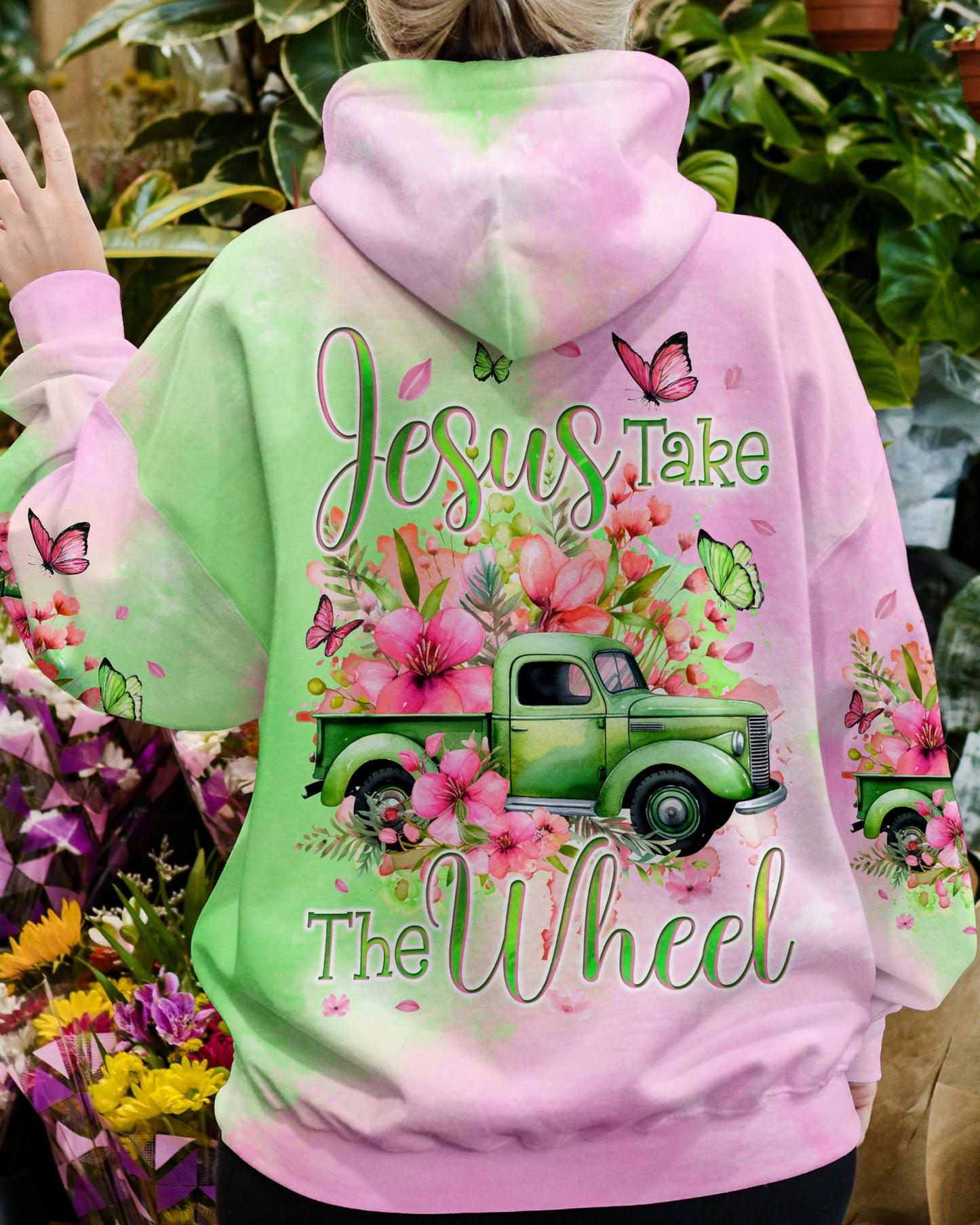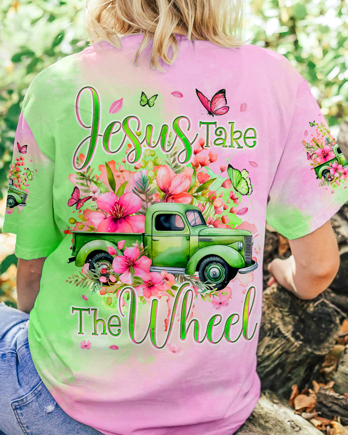 Celebrate your Christian faith with our "Jesus Take The Wheel" all-over print shirt. This striking design features vibrant flowers and graceful butterflies, symbolizing growth, renewal, and the transformative journey of faith. Let this powerful visual reminder of divine guidance and purpose guide your every step.