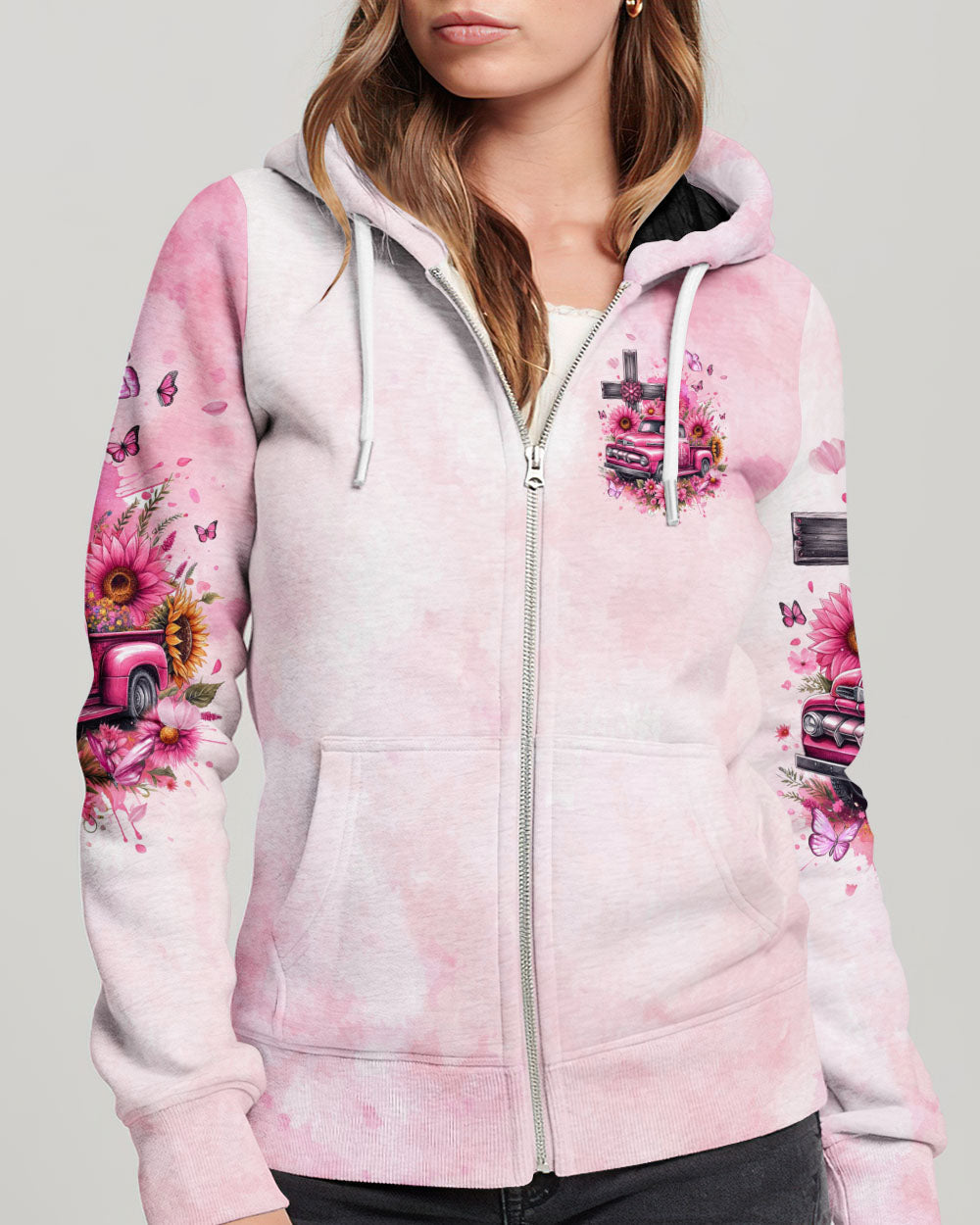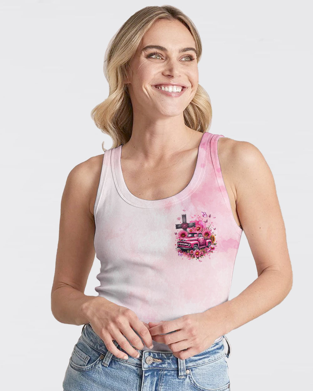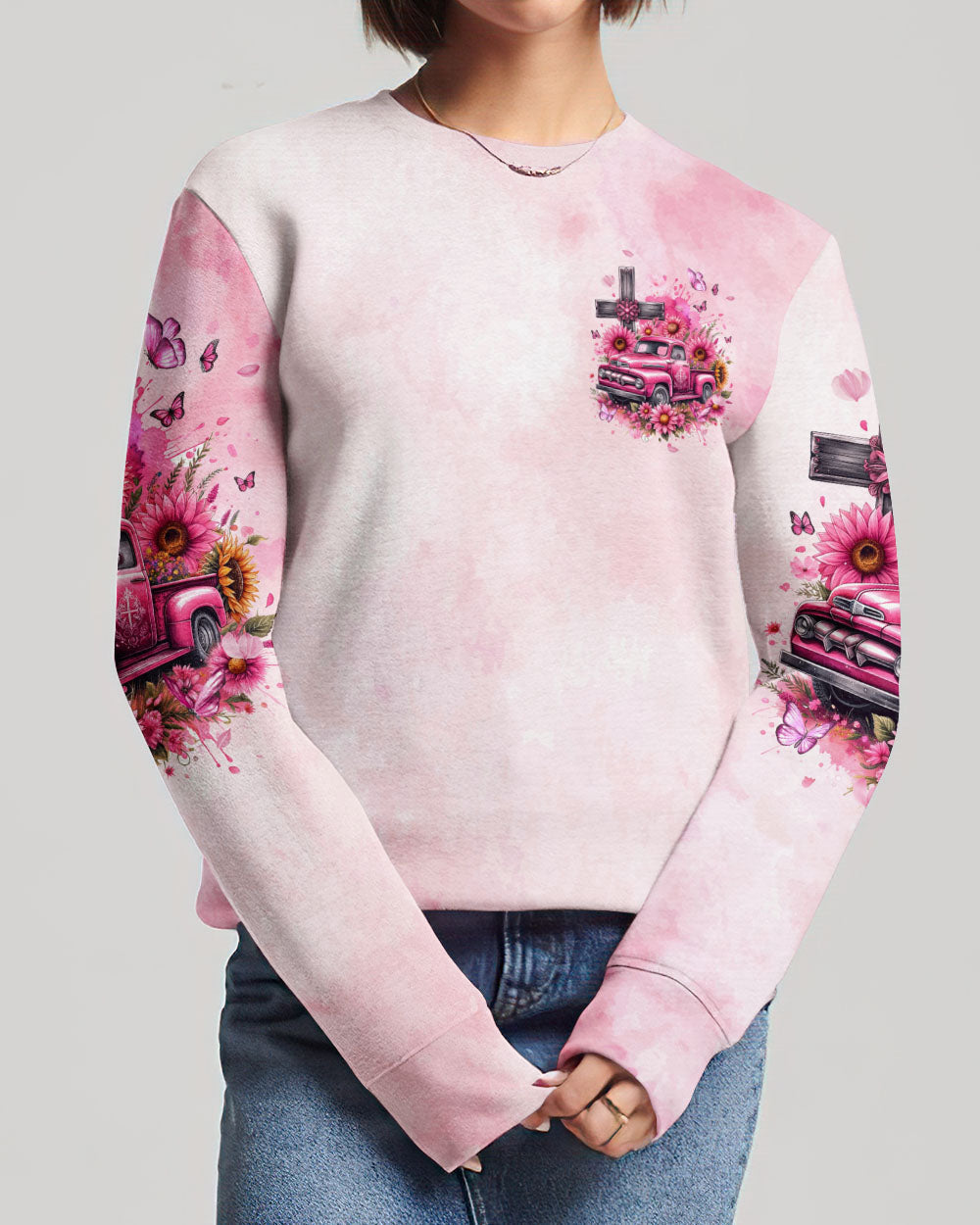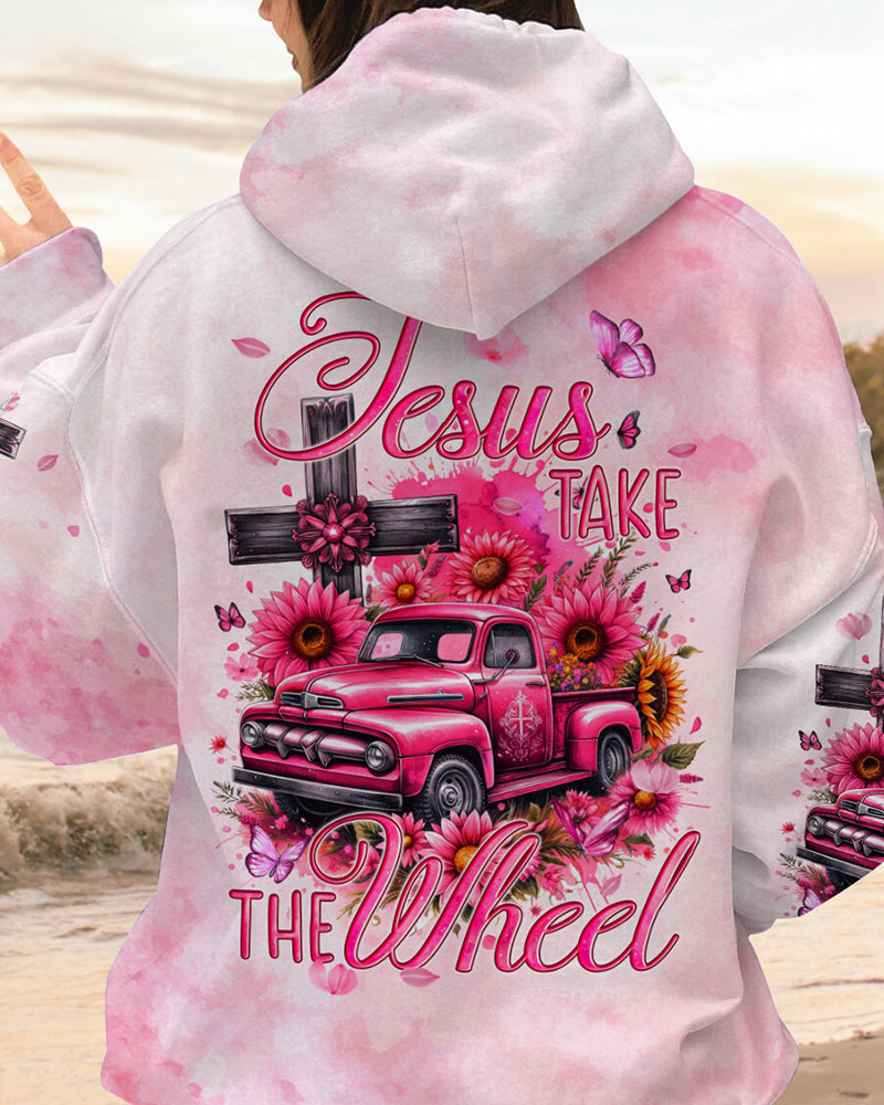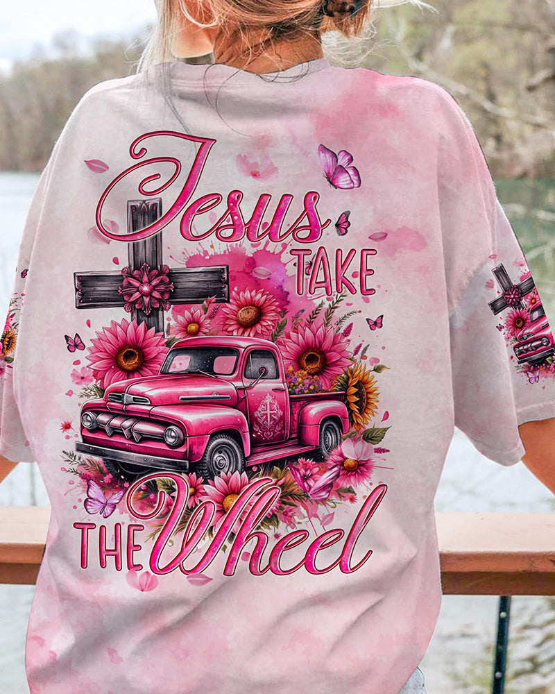 Elevate your spiritual journey with this remarkable all-over print shirt featuring a powerful design. The timeless symbol of the cross blends with a flourishing garden of flowers and butterflies, offering a visual representation of the transformative effect of faith-led living. The comforting quote, "Jesus takes the wheel," completes this beautiful and inspiring design.