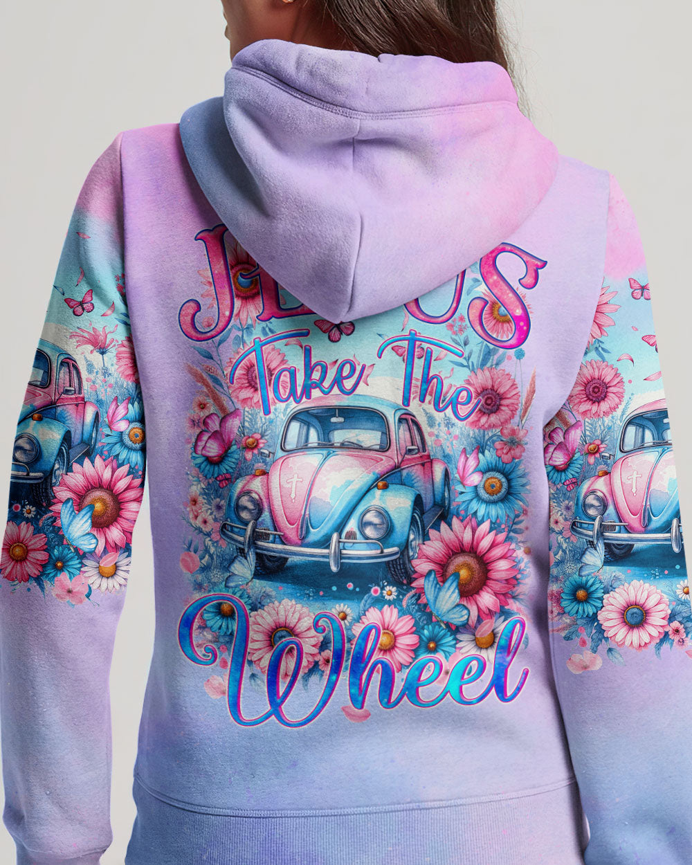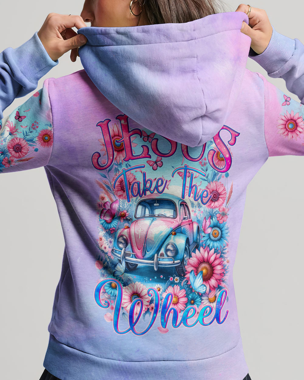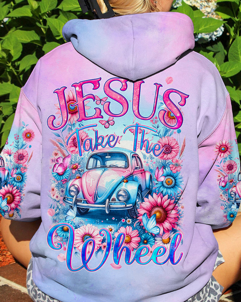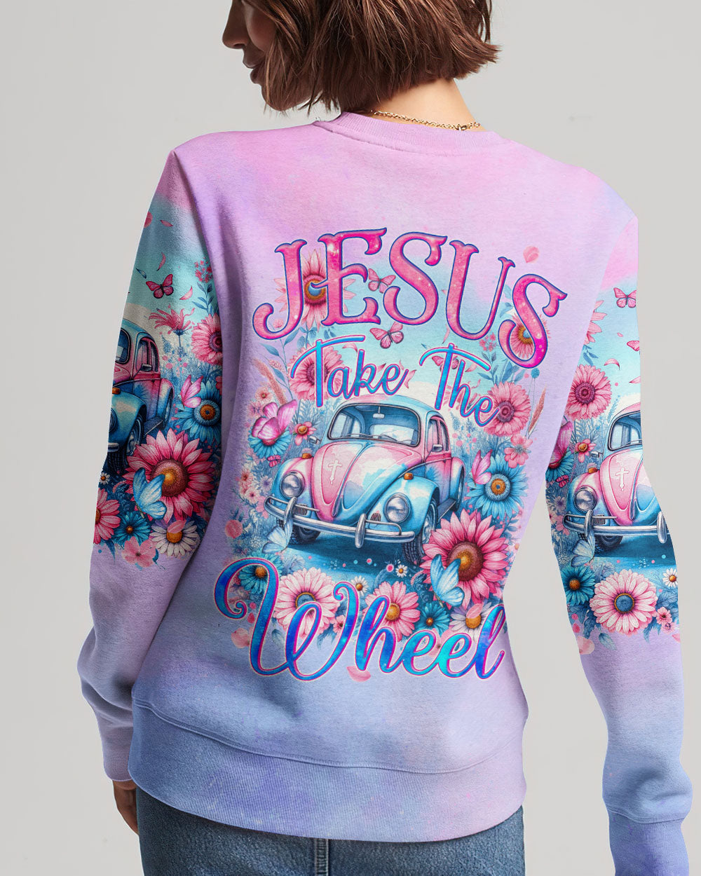 Inspire faith and style with the Jesus Take The Wheel Women's All Over Print Shirt. This captivating design features blooming flowers, gentle butterflies, and a sleek car united by the powerful statement "Jesus takes the wheel." It's a visual testament to faith in action, reminding you that you are never alone on life's journey. Experience the joy of the divine on every ride.