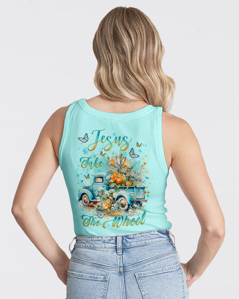 Immerse yourself in the divine beauty of our Faith Christ Design—a celestial blend of faith and the simplicity of a watercolor pickup truck. Picture an ethereal scene adorned with delicate butterflies, creating a harmonious tribute to the serene journey of spirituality. The heartfelt quote, 'Jesus Take The Wheel,' adds a touch of grace to this enchanting composition. More than artwork, it becomes a visual prayer, a reminder to surrender to a higher power. Whether seeking solace or a meaningful statement piece, our design invites you to embrace the guiding light.