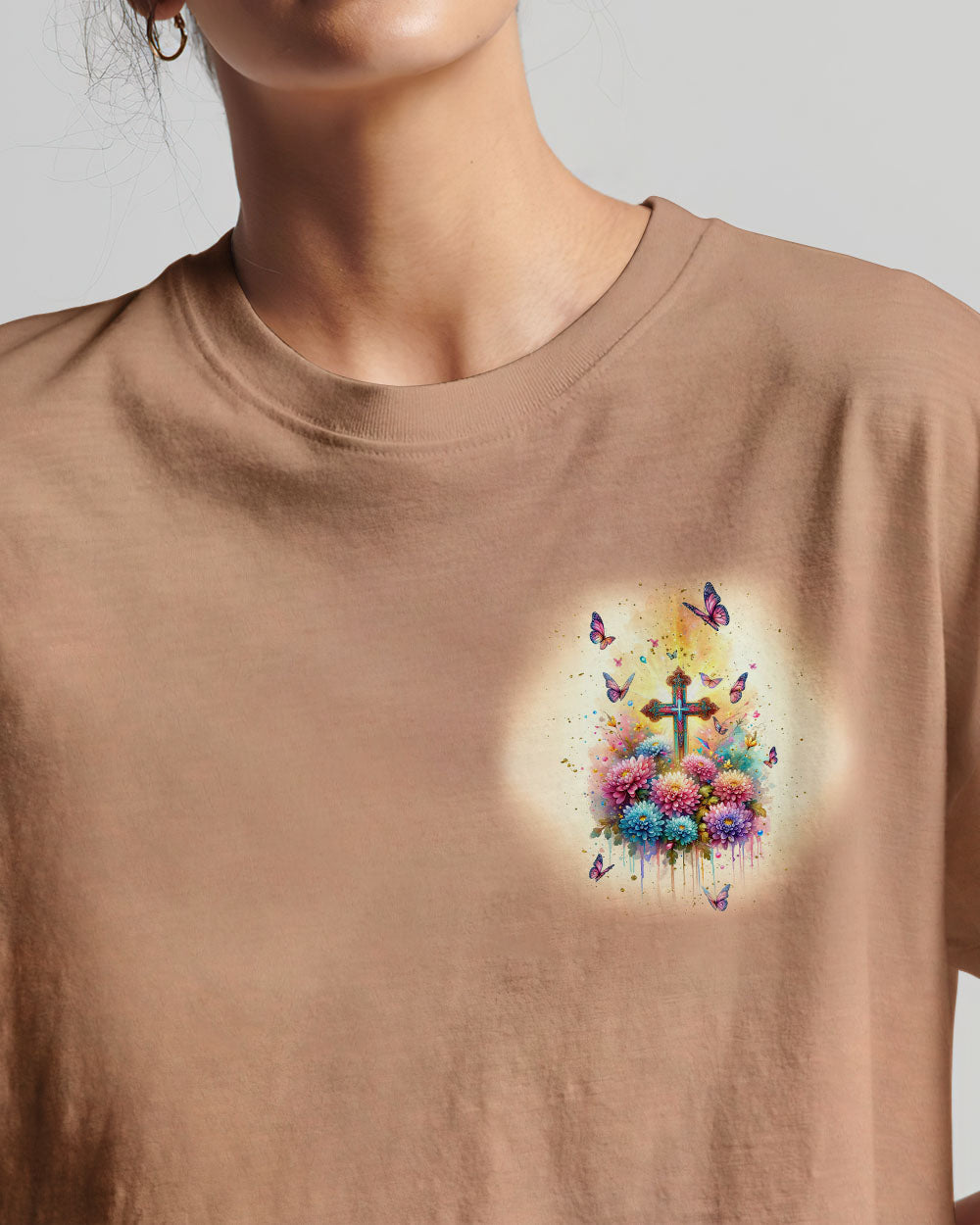 Explore our design, where a graceful cross gently nestles among a vibrant bouquet of chrysanthemums, forming a visual testament to profound faith and love for Jesus. This creation encapsulates the sentiment, "Just A Girl Who Loves Jesus," connecting with individuals who derive happiness and identity from their steadfast devotion, representing a flourishing, personal bond with faith.