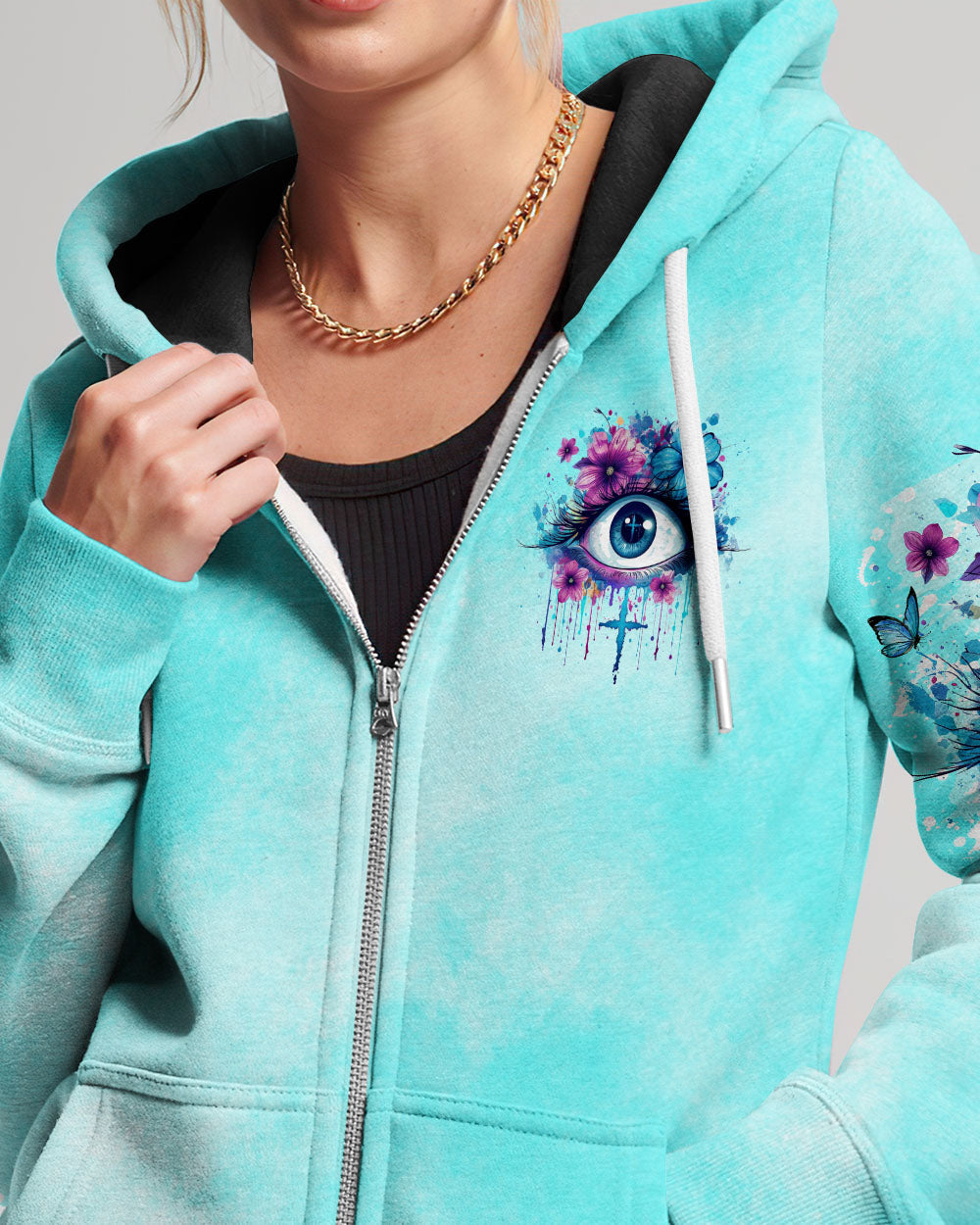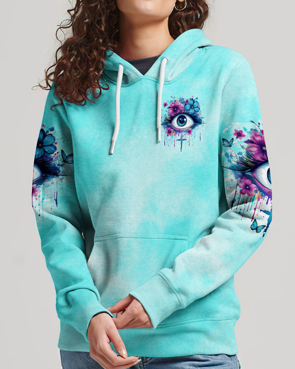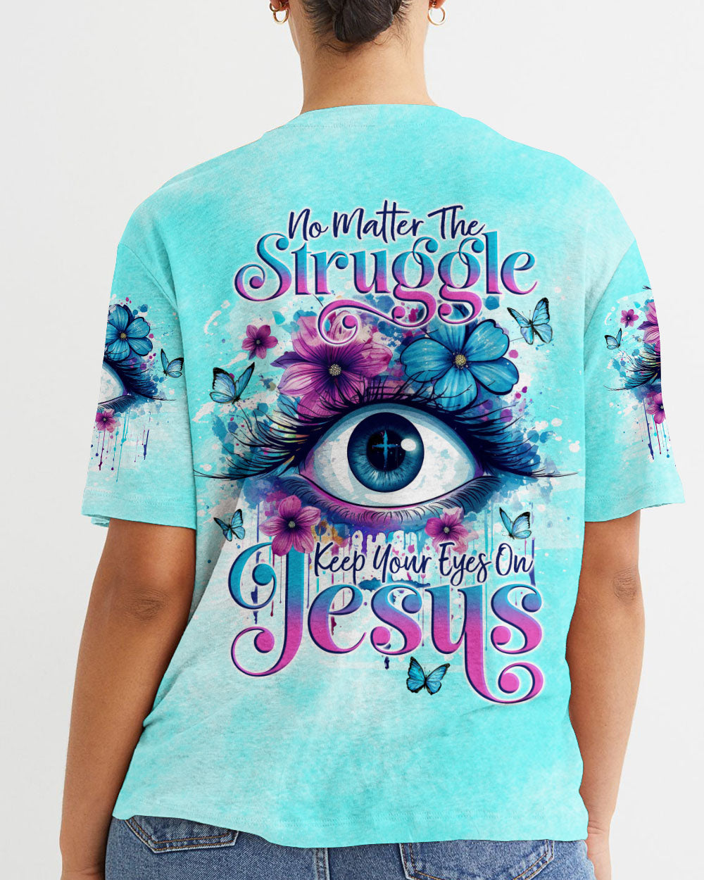 This Keep Your Eyes On Jesus Women's All Over Print Shirt brings a powerful reminder of faith and perseverance. With blooming flowers adorning the eyes, this design symbolizes a love for life and a constant focus on the Lord. Through its message of strength, hope, and guidance, this timeless design encourages us to keep our devotion to Jesus no matter the struggle.