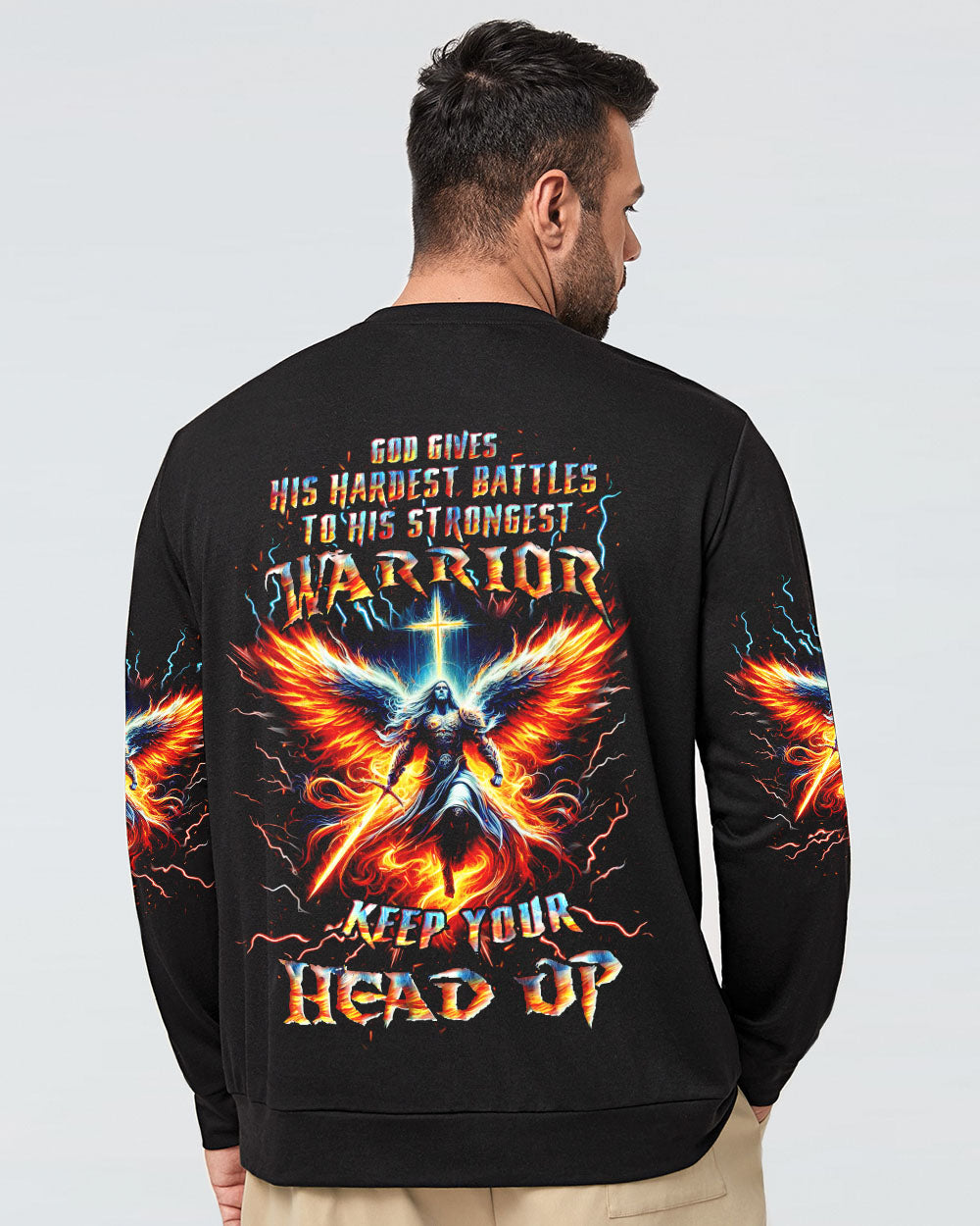 Show your spiritual warrior with our Faith Christ Design, a mix of divine art and powerful symbols. The quote "God gives his hardest battles to his strongest warrior, keep your head up" shows resilience and perseverance. This design is not just apparel; it's a statement of courage and conviction. Our design is a symbol of victory over challenges. Get yours today and feel the divine strength wherever you go.