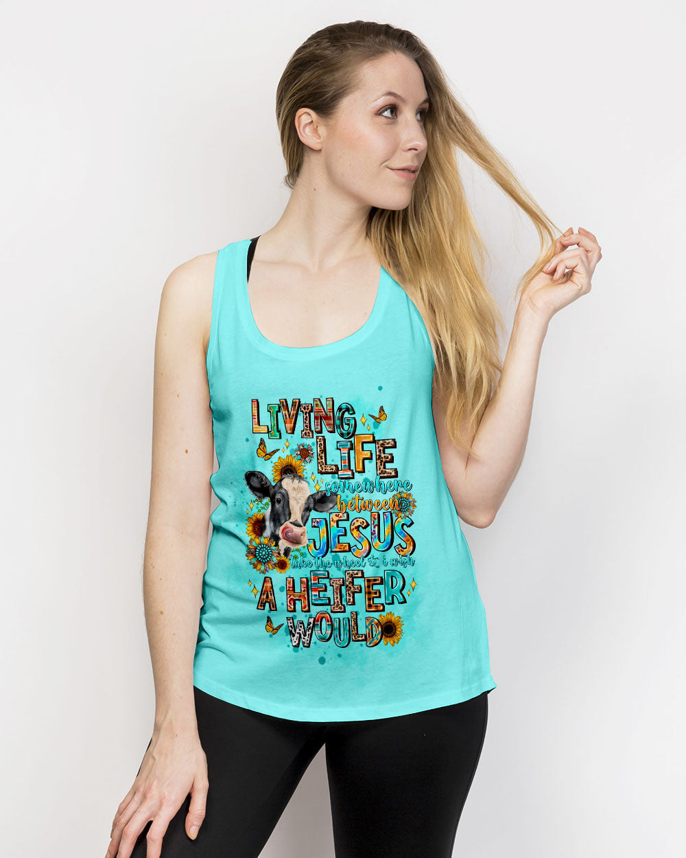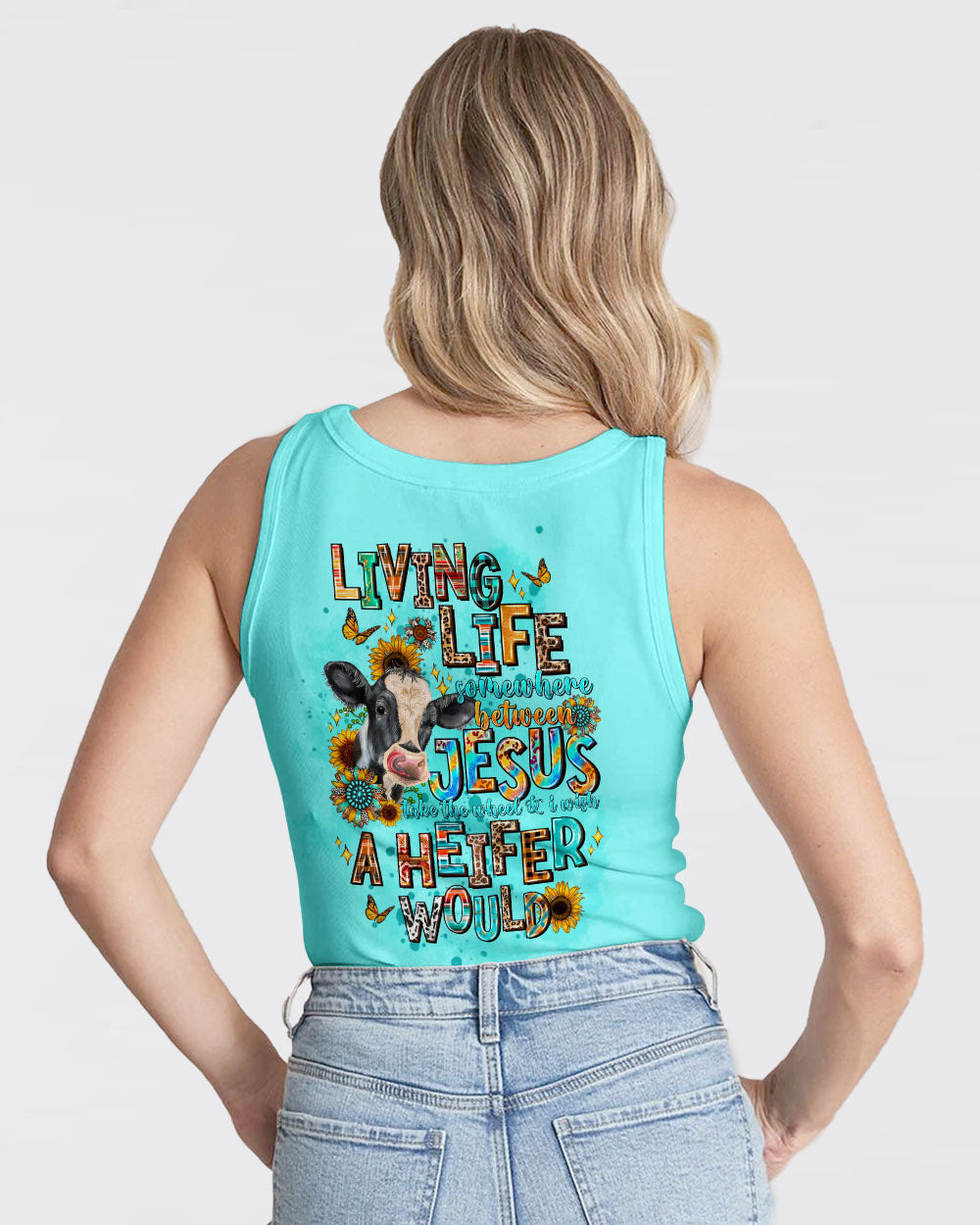 Living Life Somewhere Between Jesus Cow Women's All Over Print Shirt - Tltw0203245