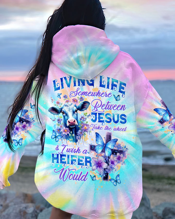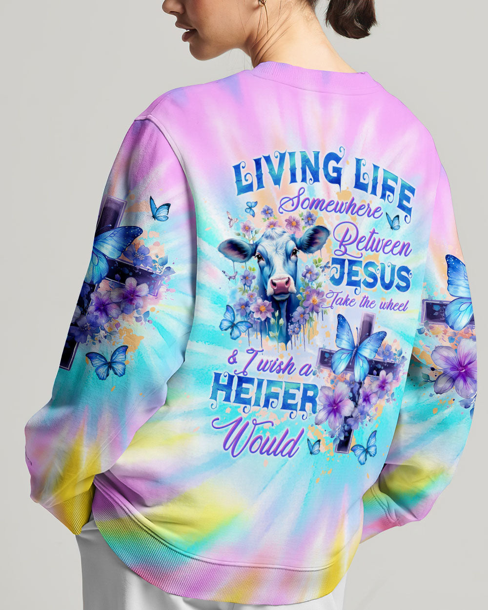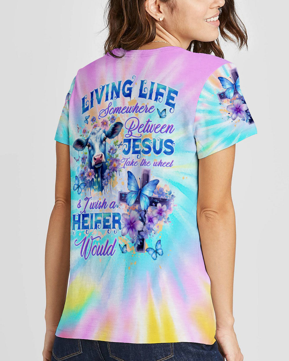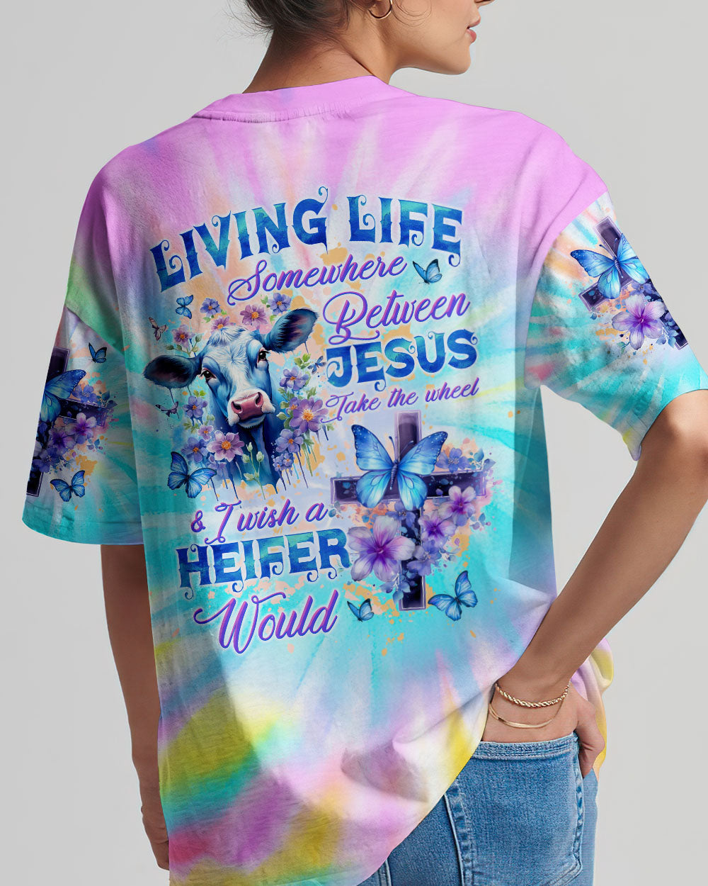 Living Life Somewhere Between Jesus Cow Women's All Over Print Shirt - Tltw1010232