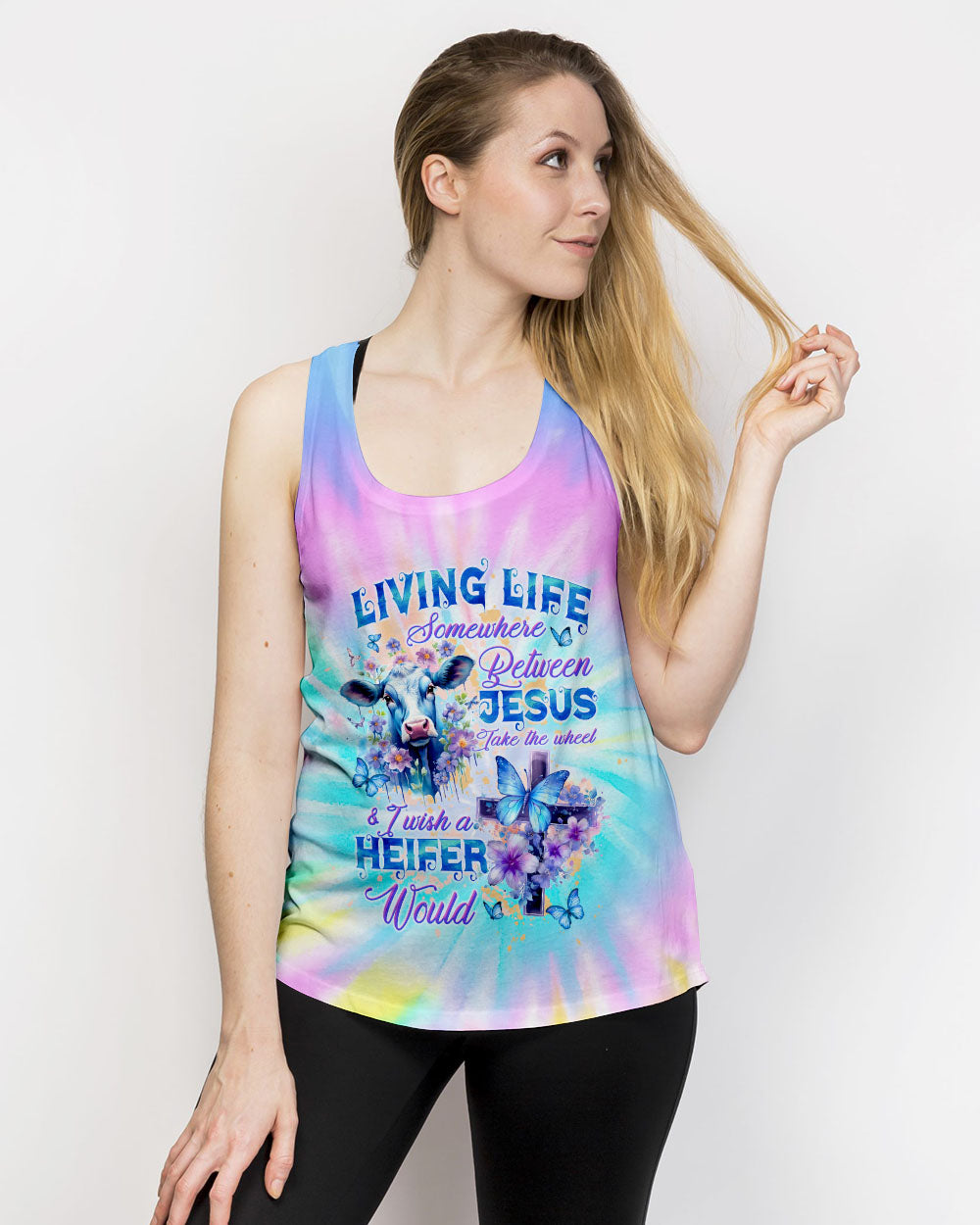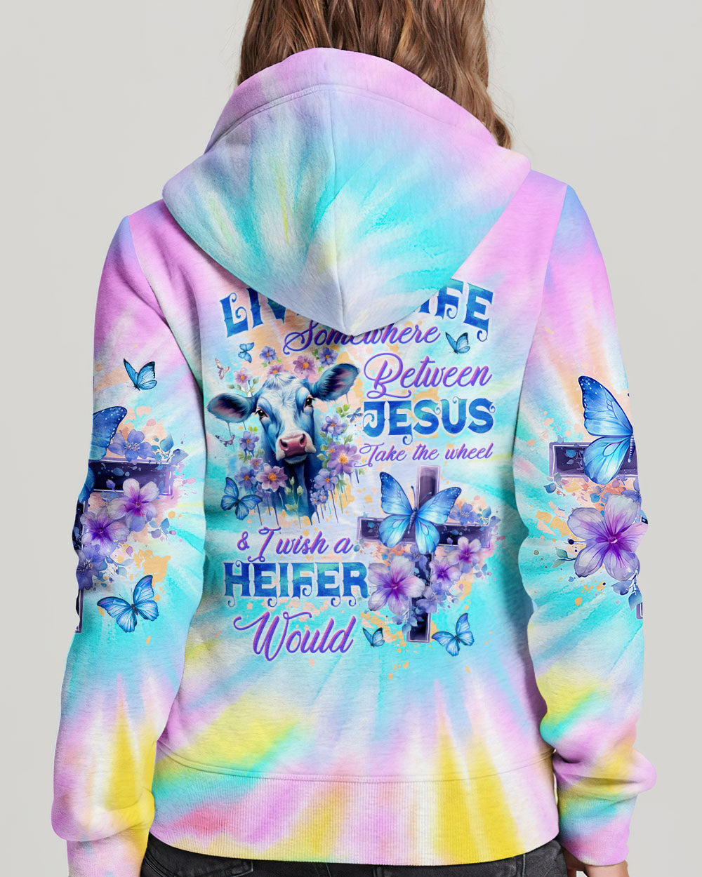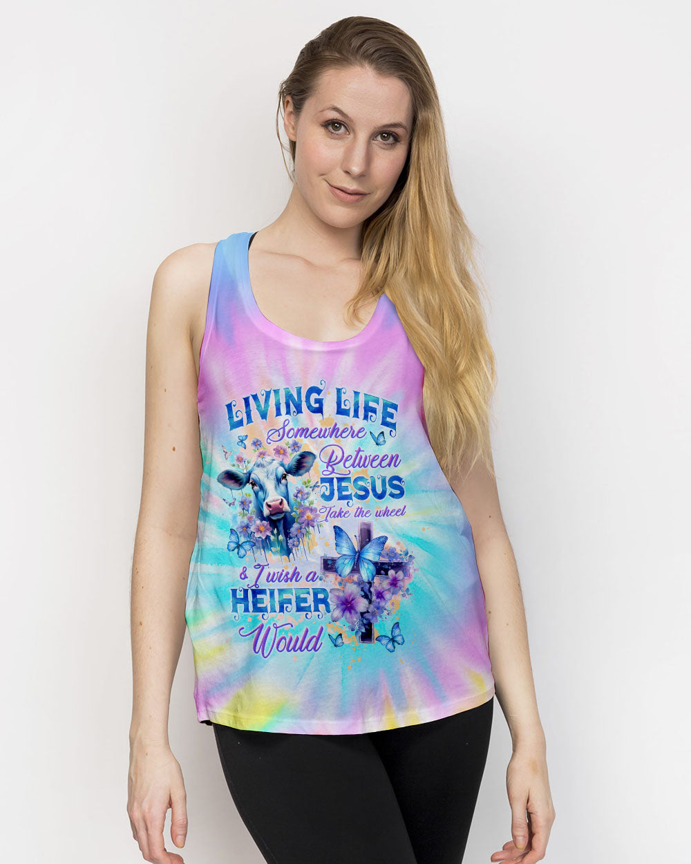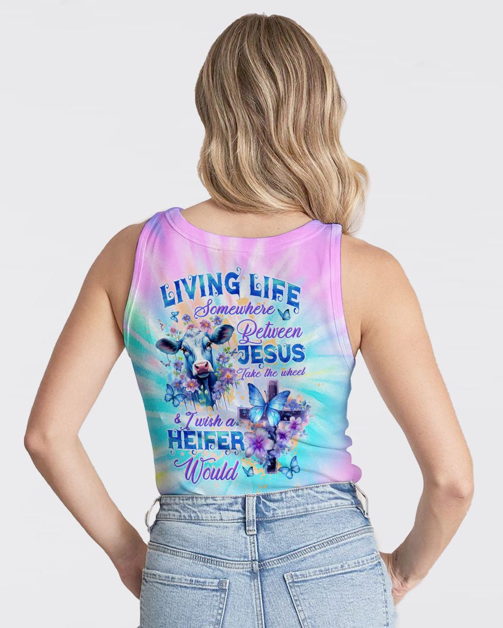 Living Life Somewhere Between Jesus Cow Women's All Over Print Shirt - Tltw1010232