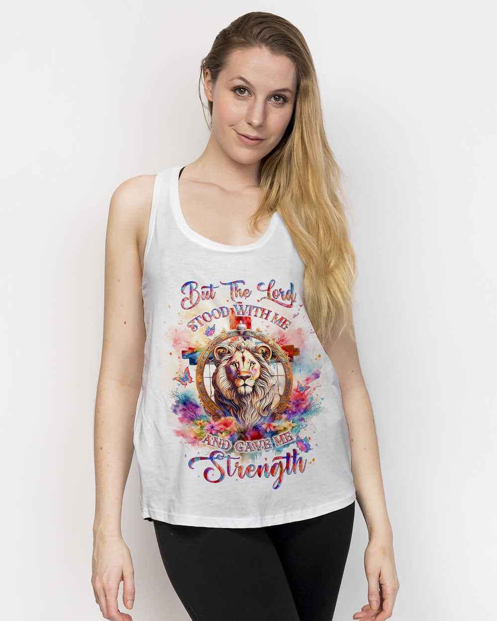 Express your unwavering faith and inner strength with our Lord Stood With Me Lion Women's All Over Print Shirt. Featuring a majestic watercolor lion adorned with a radiant cross, delicate flowers, and butterflies, this shirt is a symbol of courage and spiritual fortitude. Let your fashion radiate the transformative power of faith.